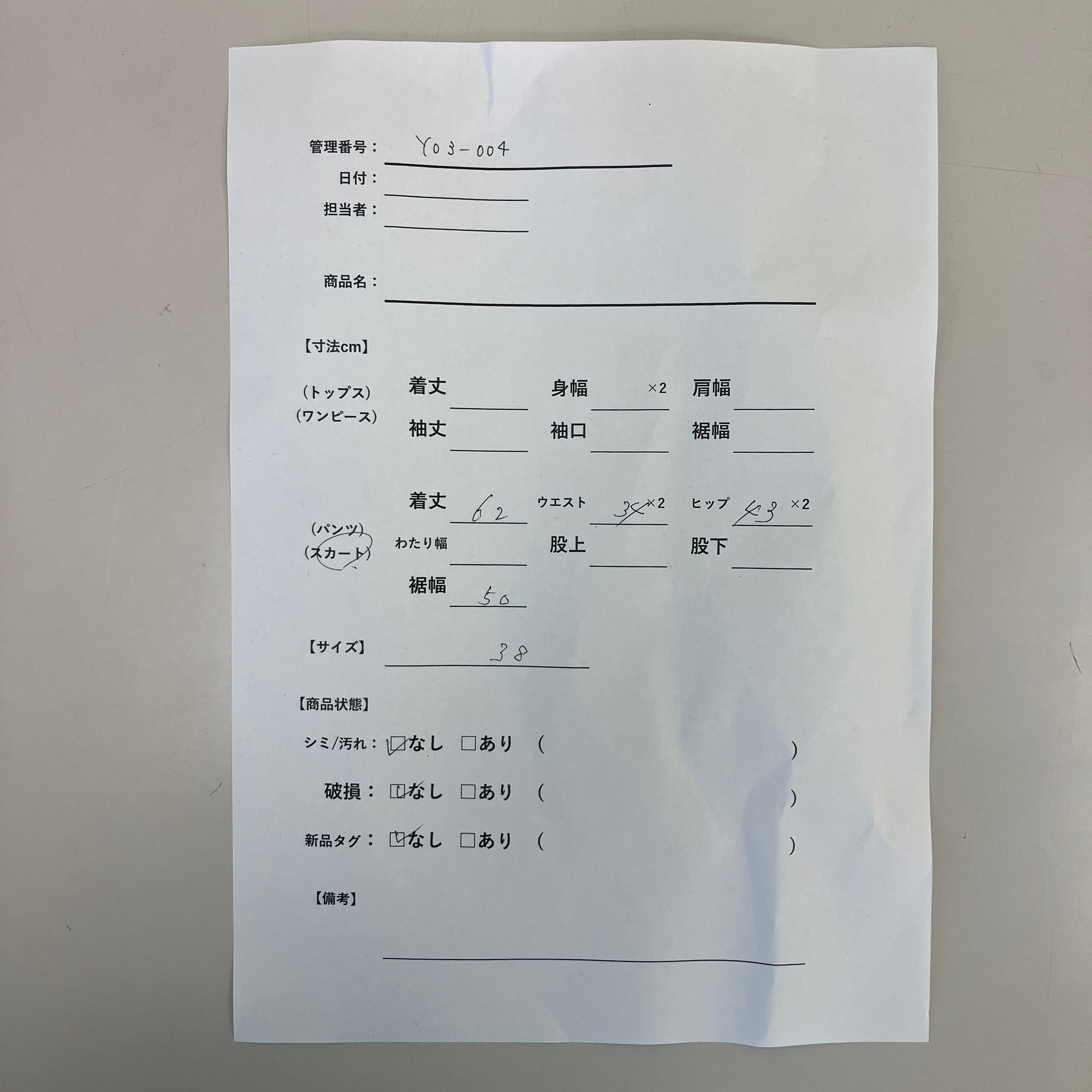 管理番号:Y03-004 #てまいらずアパレル商品一覧