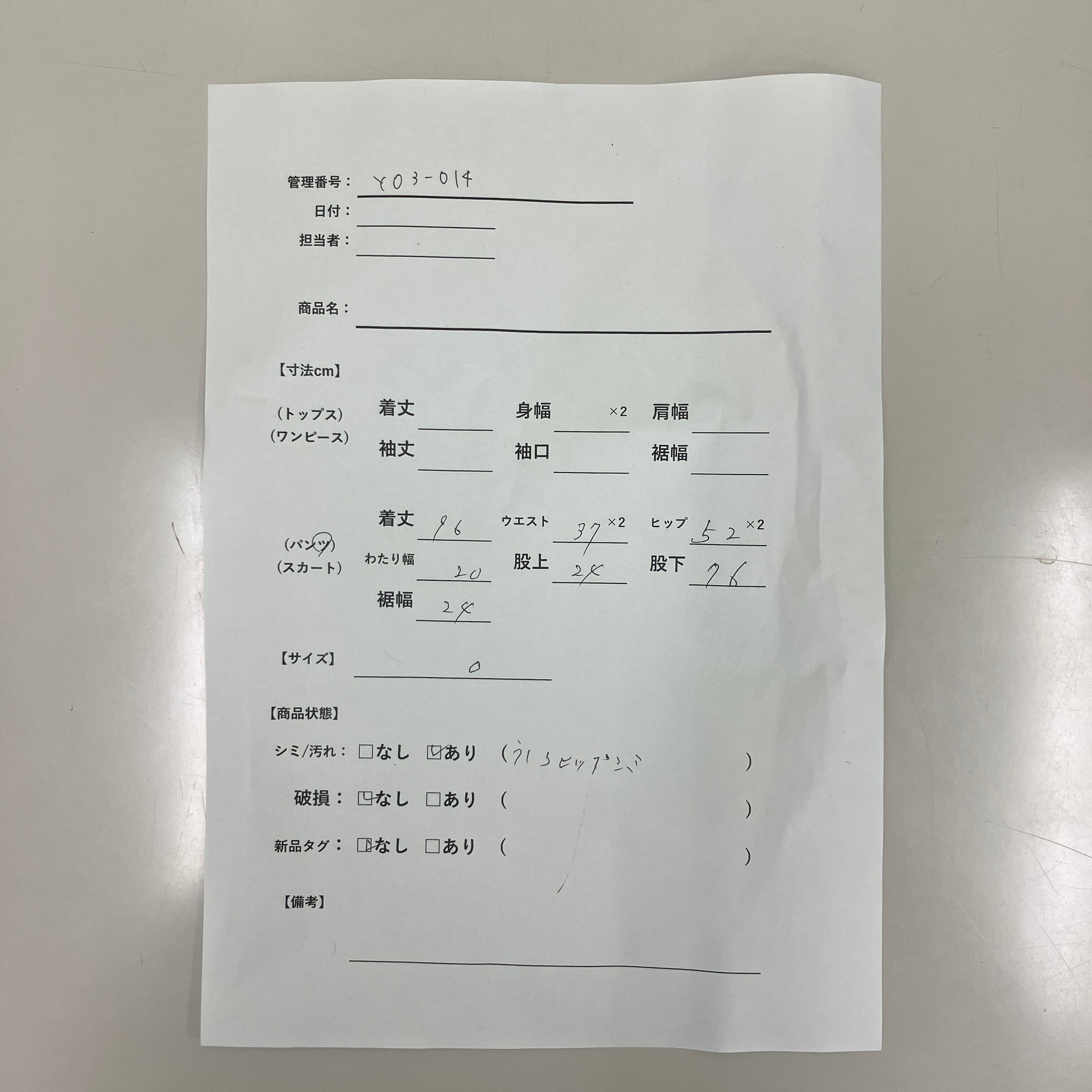 管理番号:Y03-014 #てまいらずアパレル商品一覧