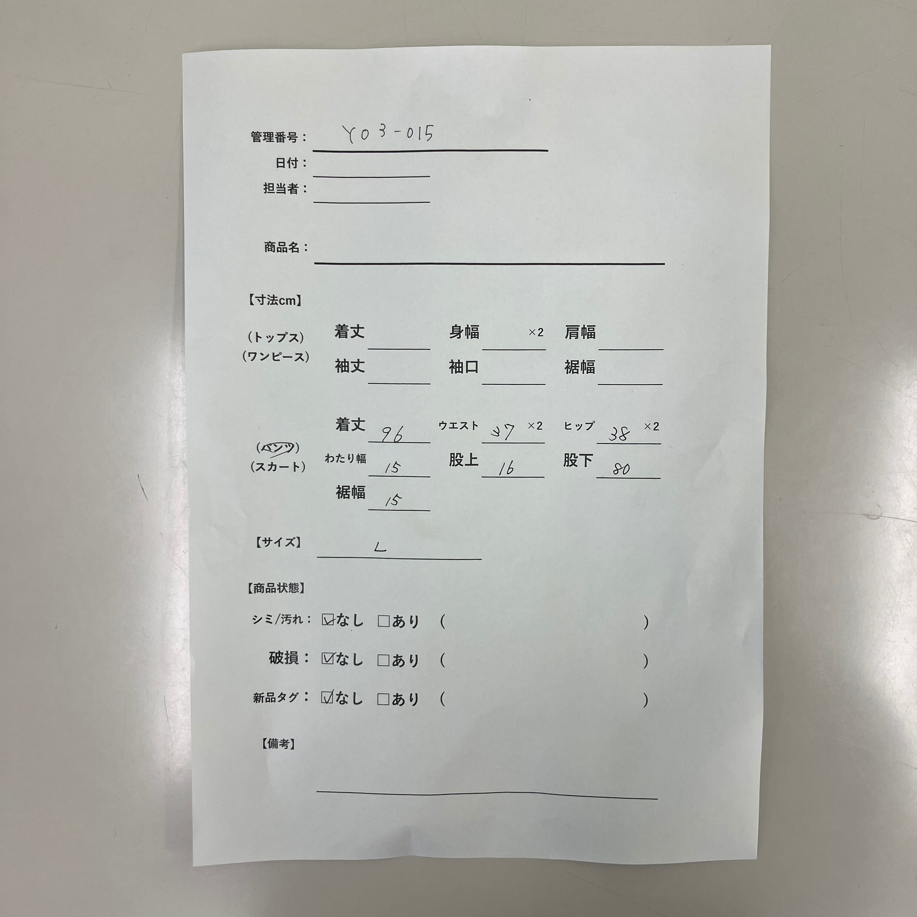 管理番号:Y03-015 #てまいらずアパレル商品一覧