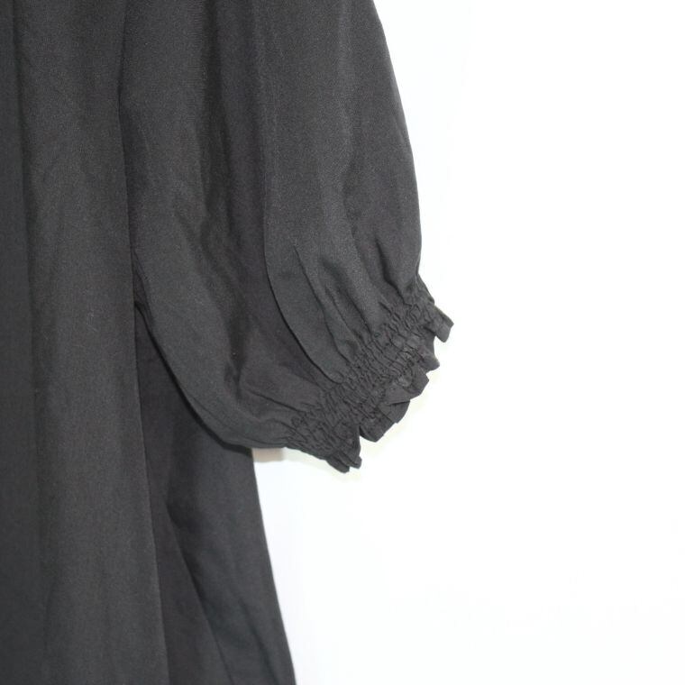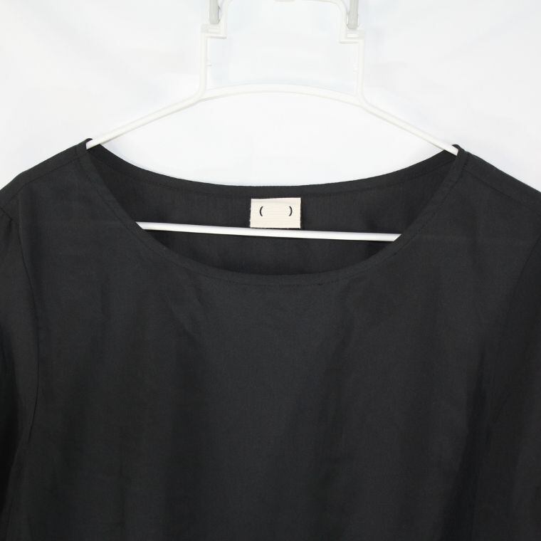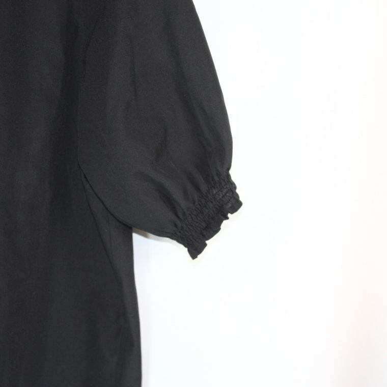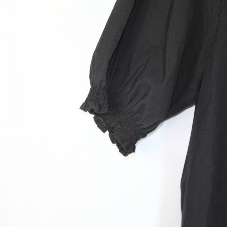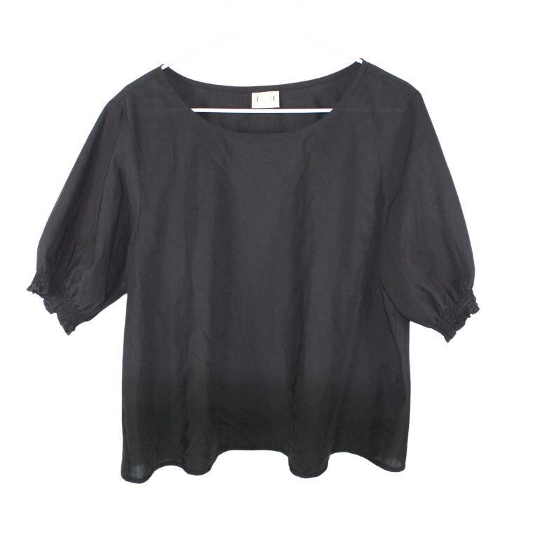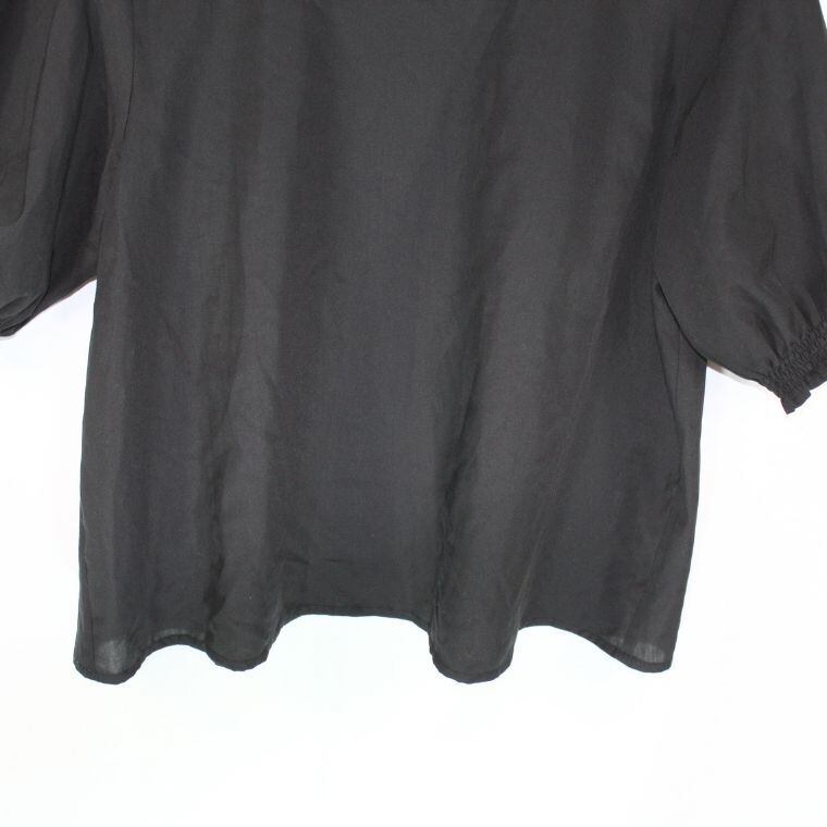 レディース ブラウス ブラック 半袖 ギャザースリーブ シンプル LL