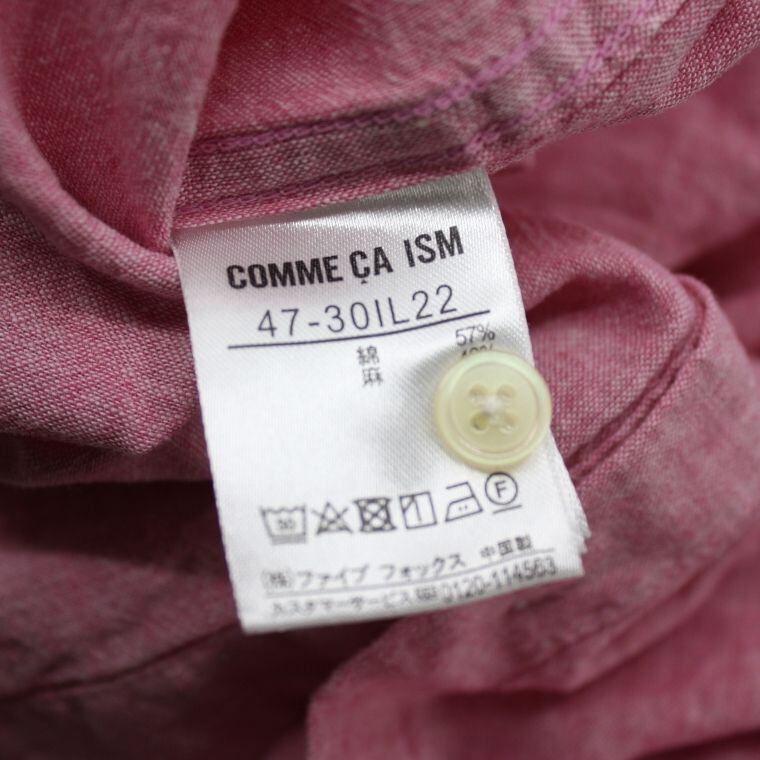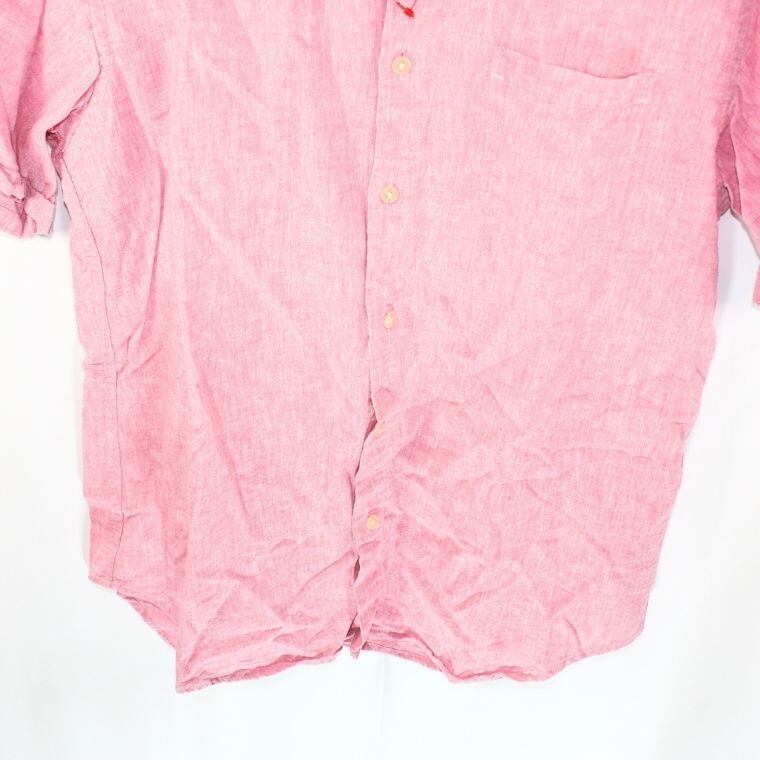 COMME CA ISM リネン混 半袖シャツ ピンク L メンズ 綿麻 カジュアルシャツ 夏