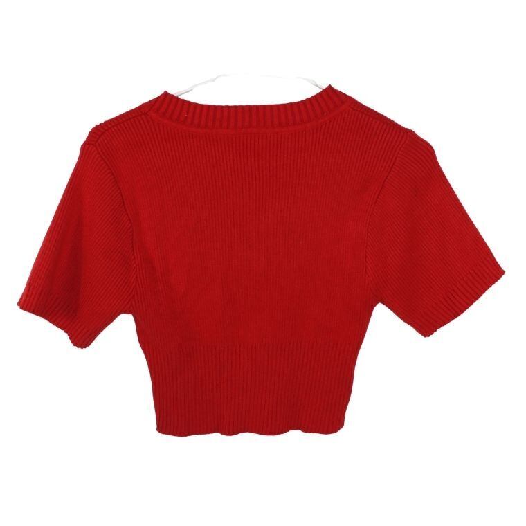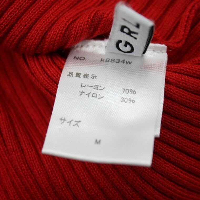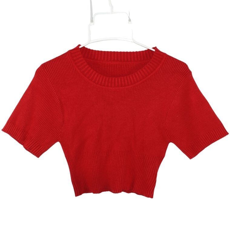 GRL リブニット 半袖 トップス レッド ショート丈 レディース Mサイズ