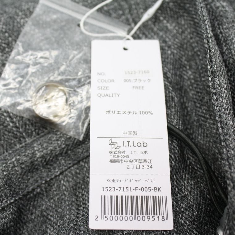 OMNES ツイード風ロングベスト レディースFREE グレー 新品タグ付き