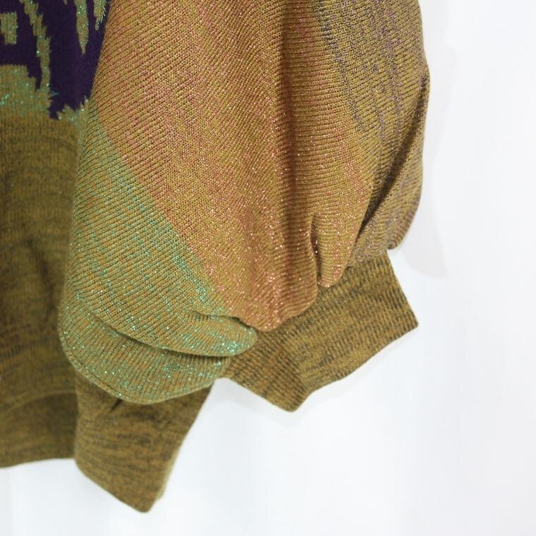 ・ラメ糸入りの編み込みニット