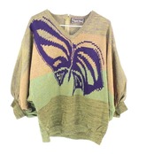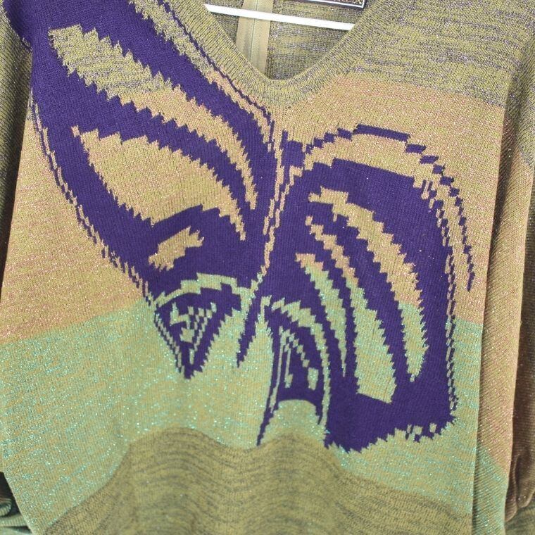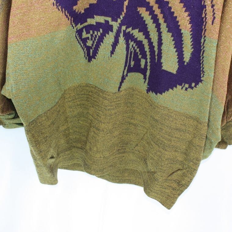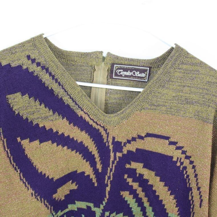 Toyoko Saito ニット セーター 総柄デザイン Vネック 長袖 レディース M相当