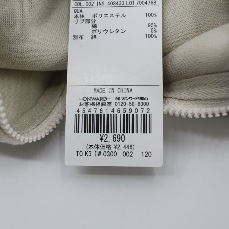 キッズ ボアジャケット アイボリー 120cm ジップアップ 新品タグ付き