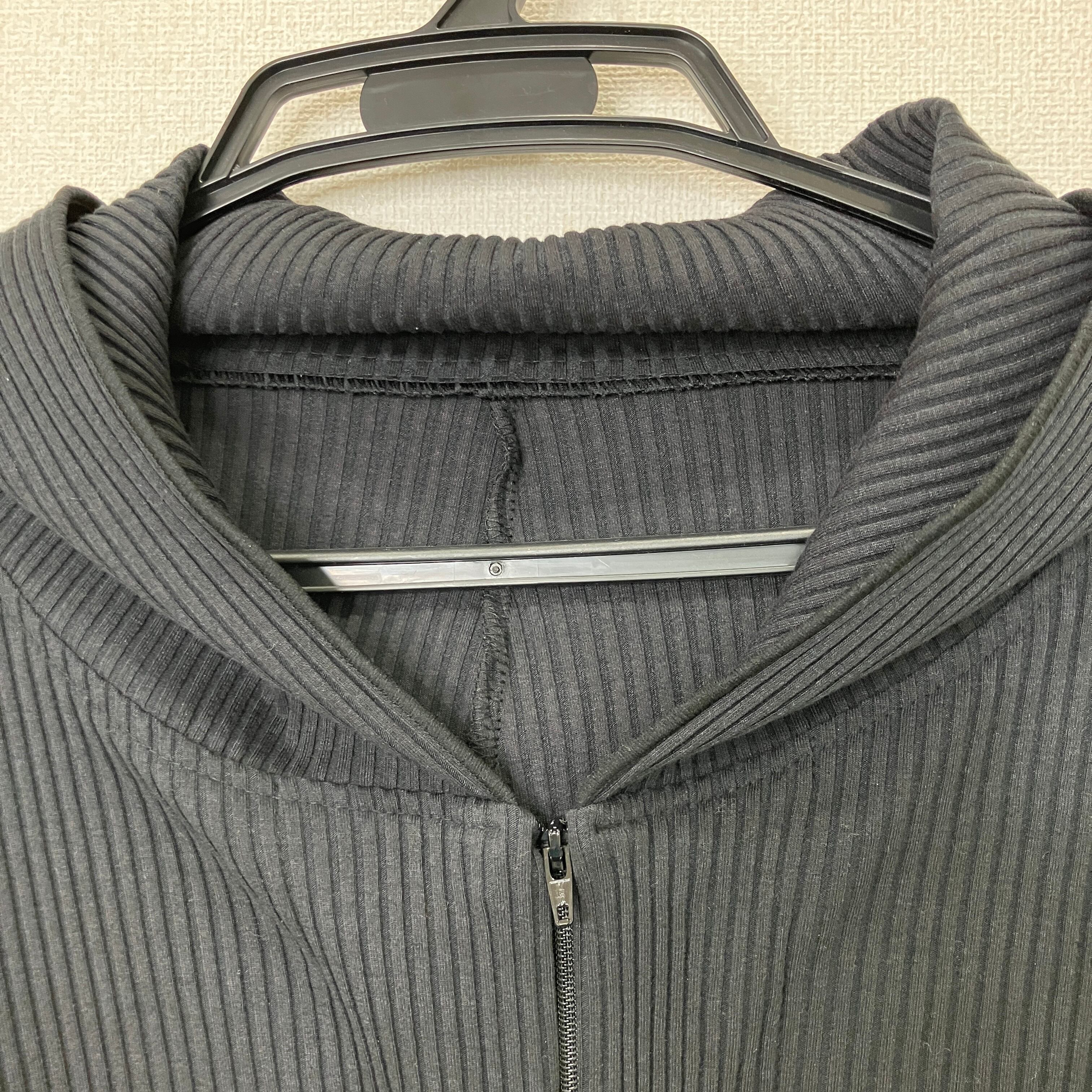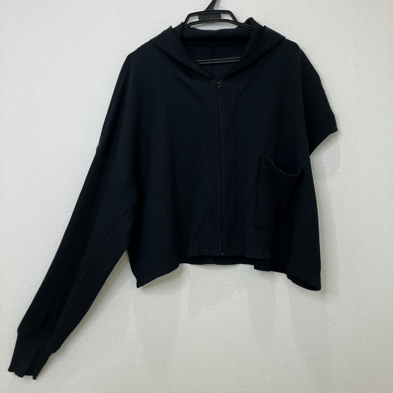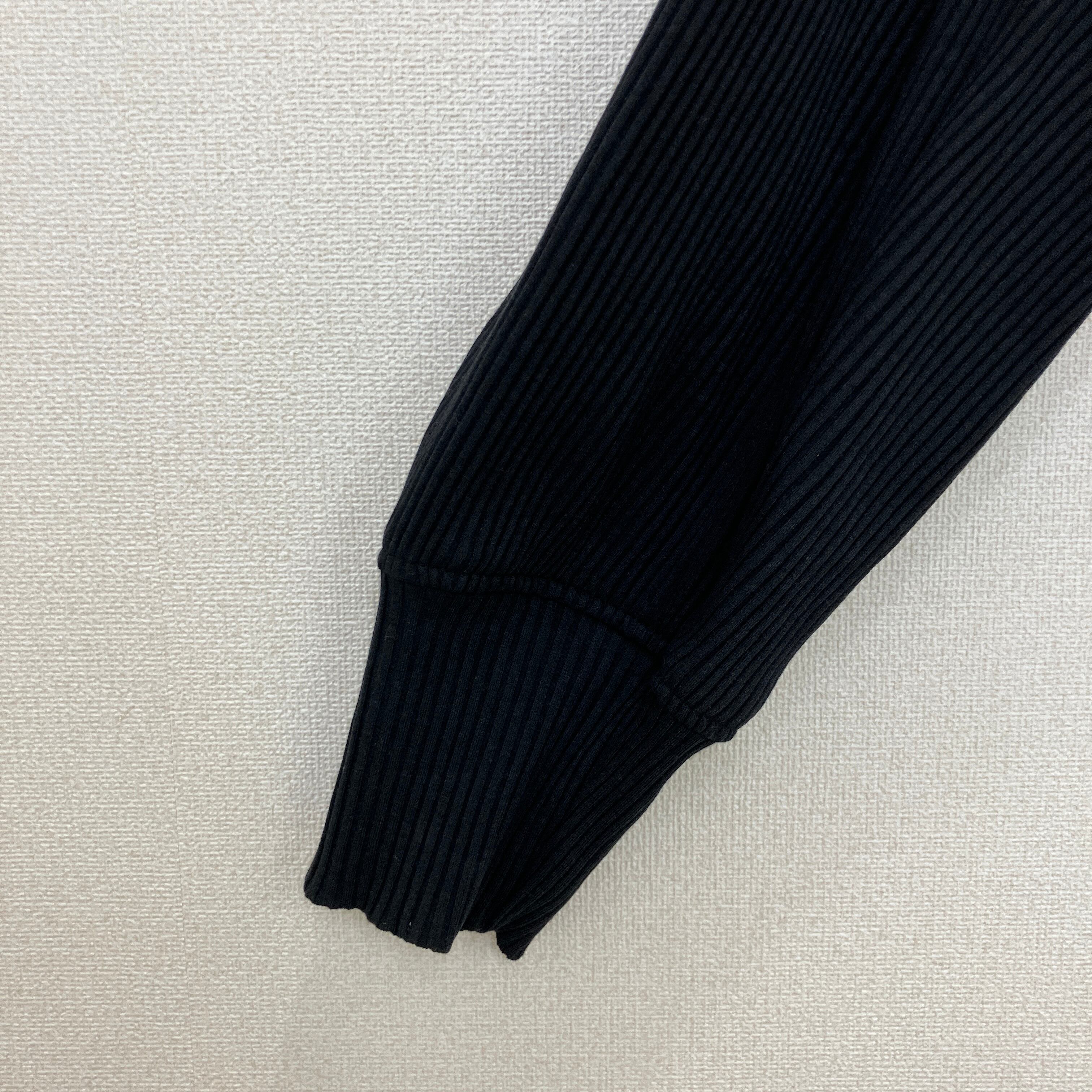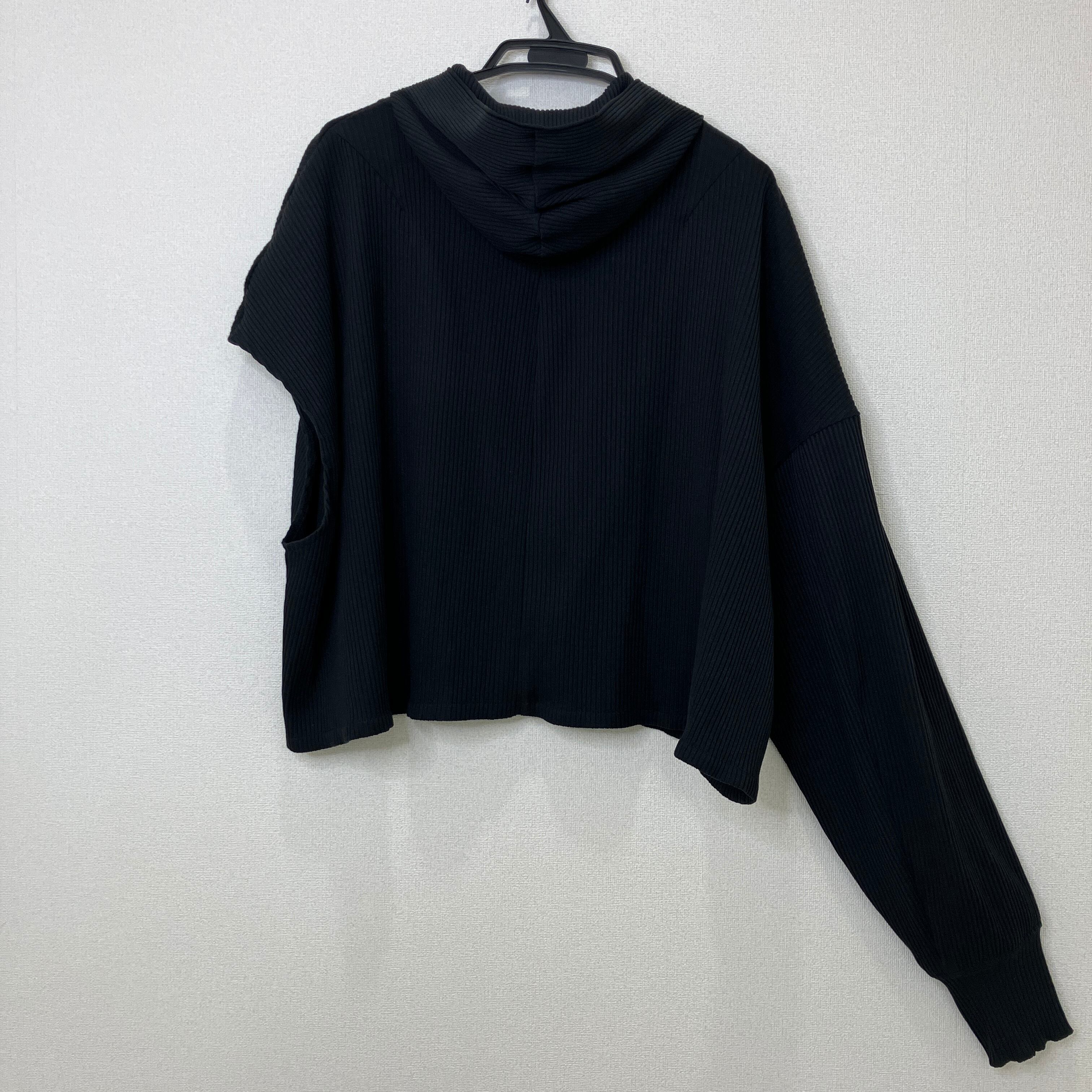 アシンメトリー リブニット フルジップパーカー ブラック クロップド丈 Fサイズ