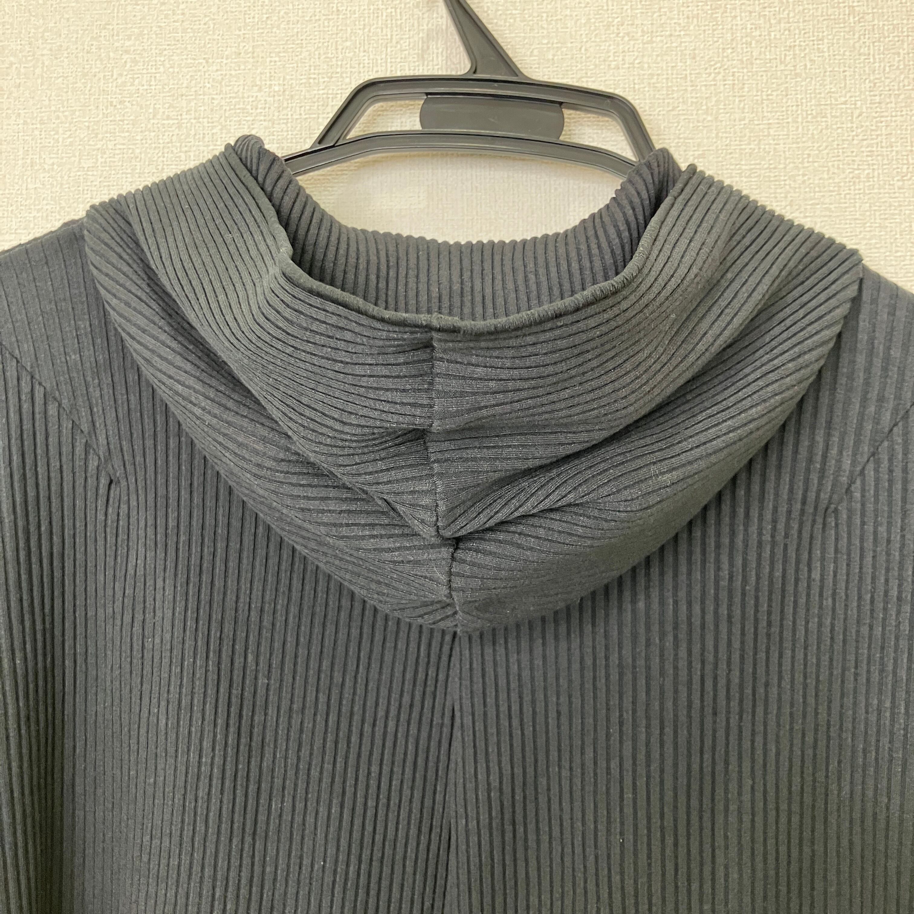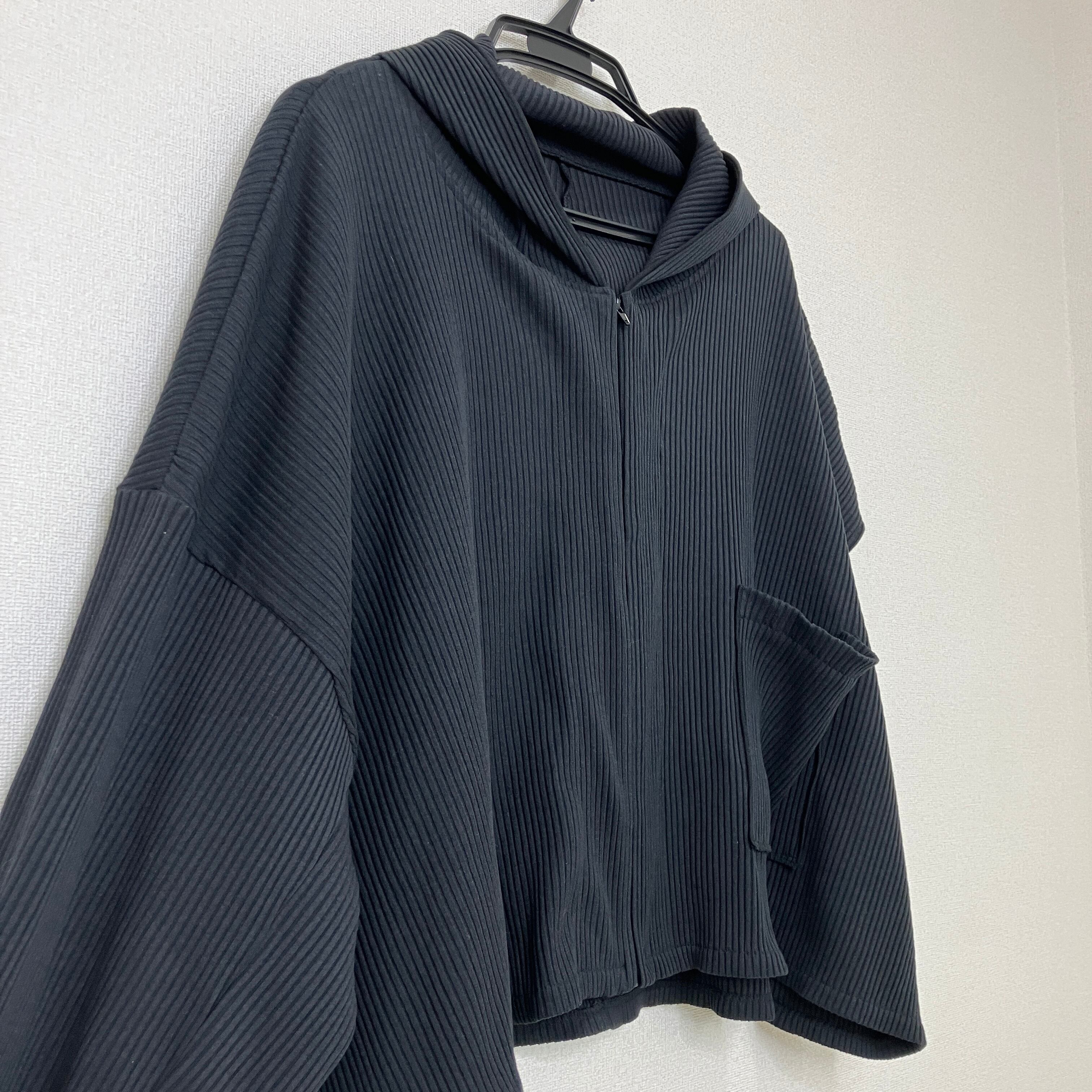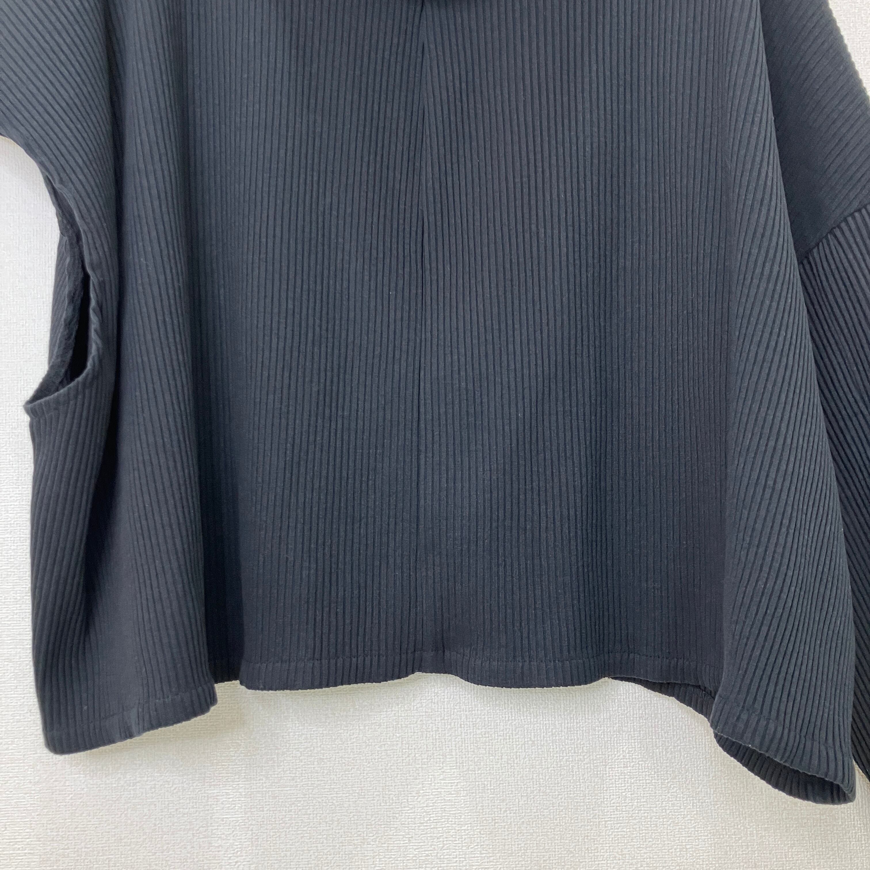 アシンメトリー リブニット フルジップパーカー ブラック クロップド丈 Fサイズ