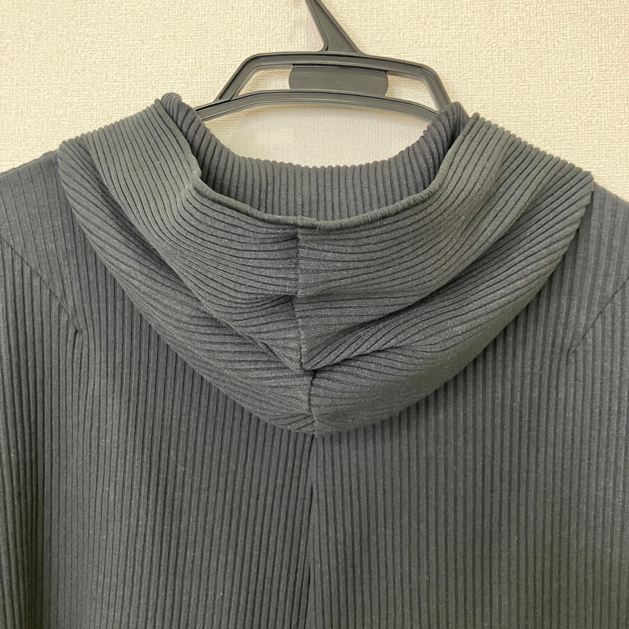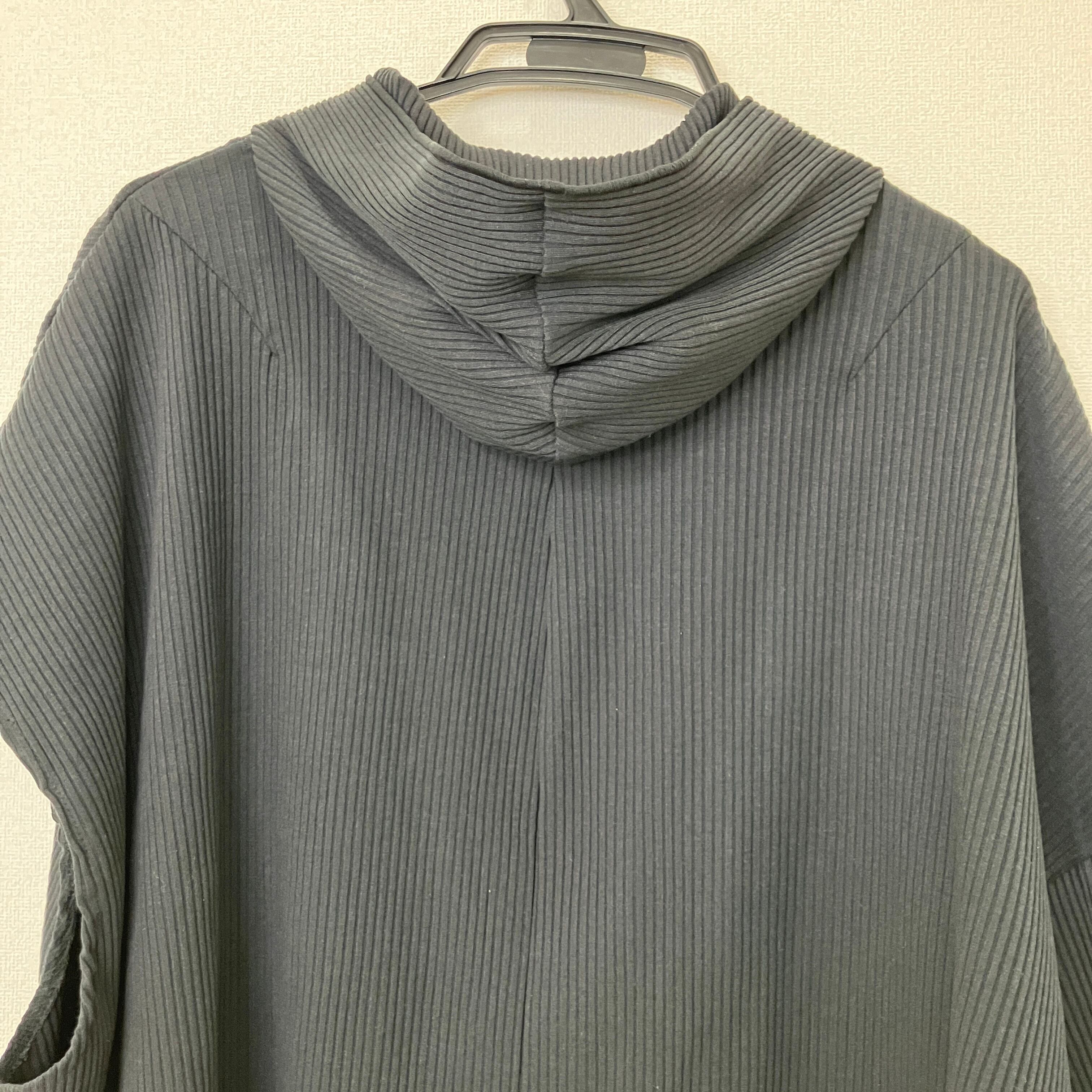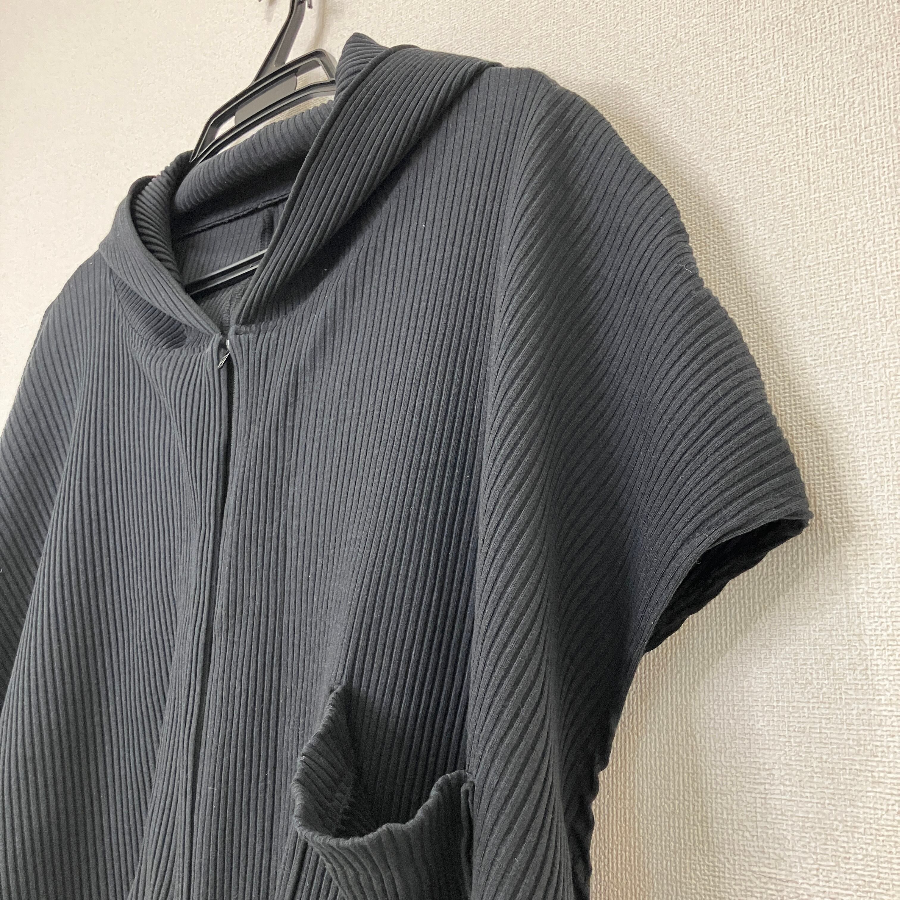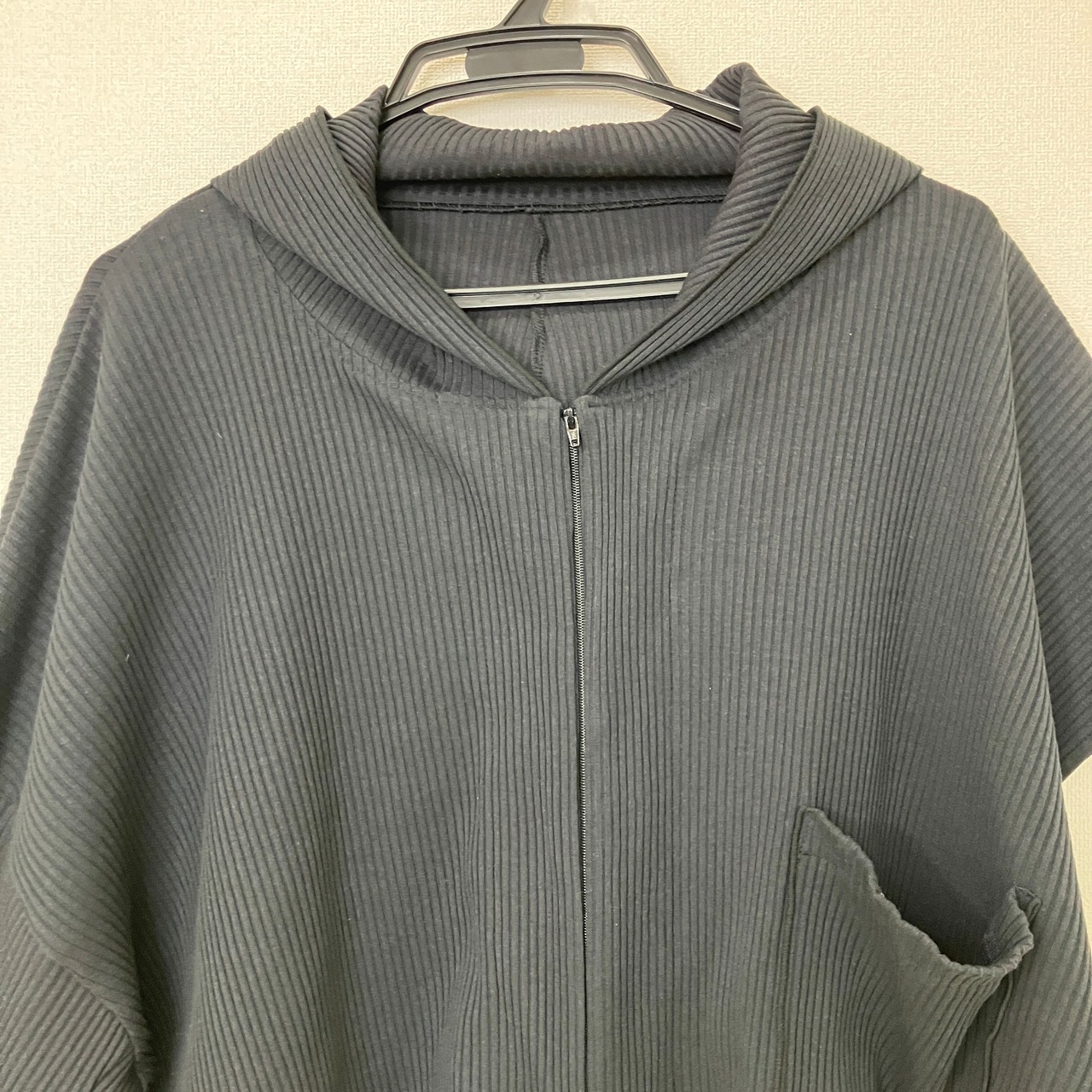 アシンメトリー リブニット フルジップパーカー ブラック クロップド丈 Fサイズ