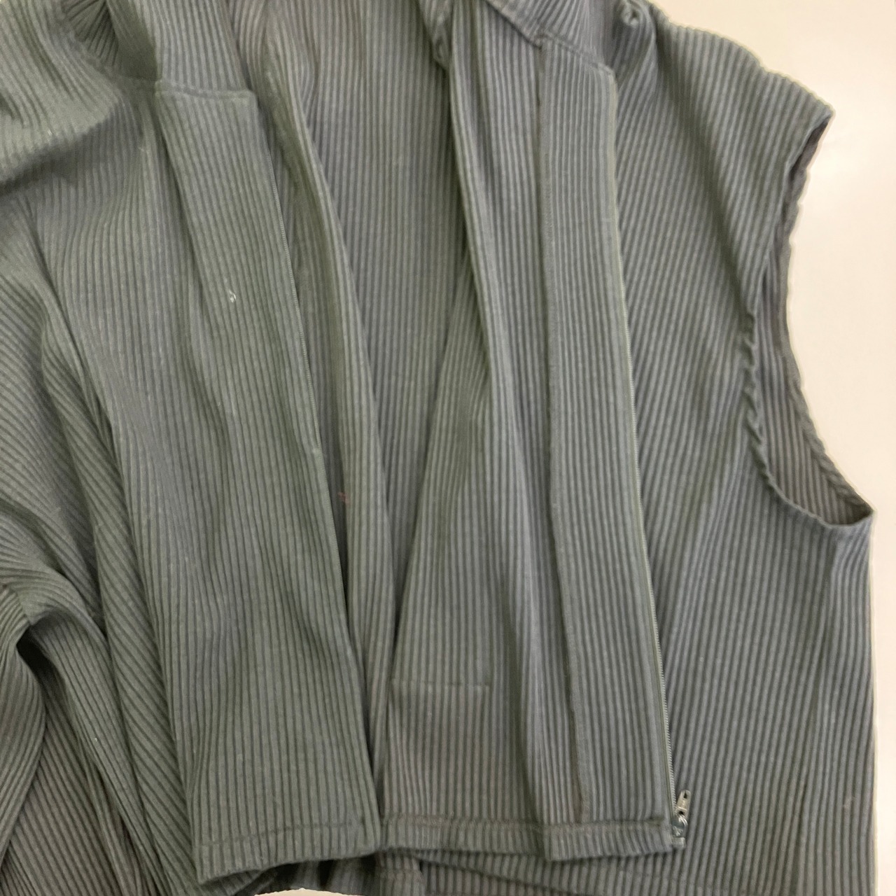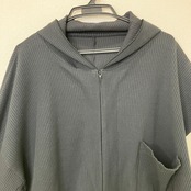 アシンメトリー リブニット フルジップパーカー クロップド丈(片袖デザイン)
