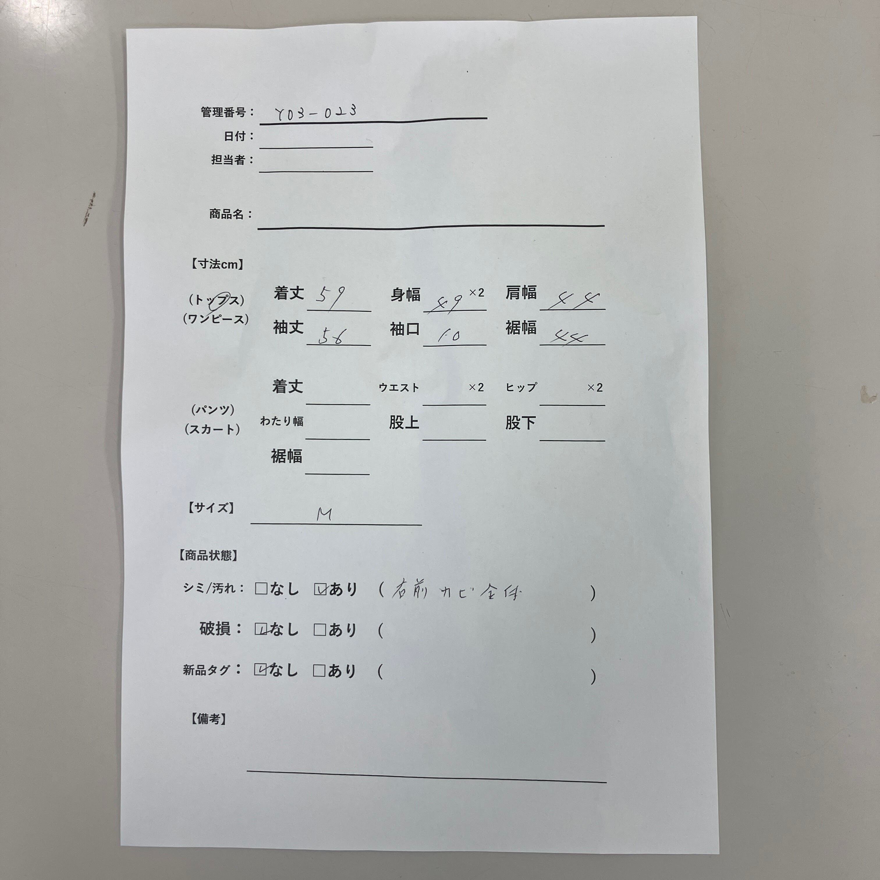 管理番号:Y03-023 #てまいらずアパレル商品一覧