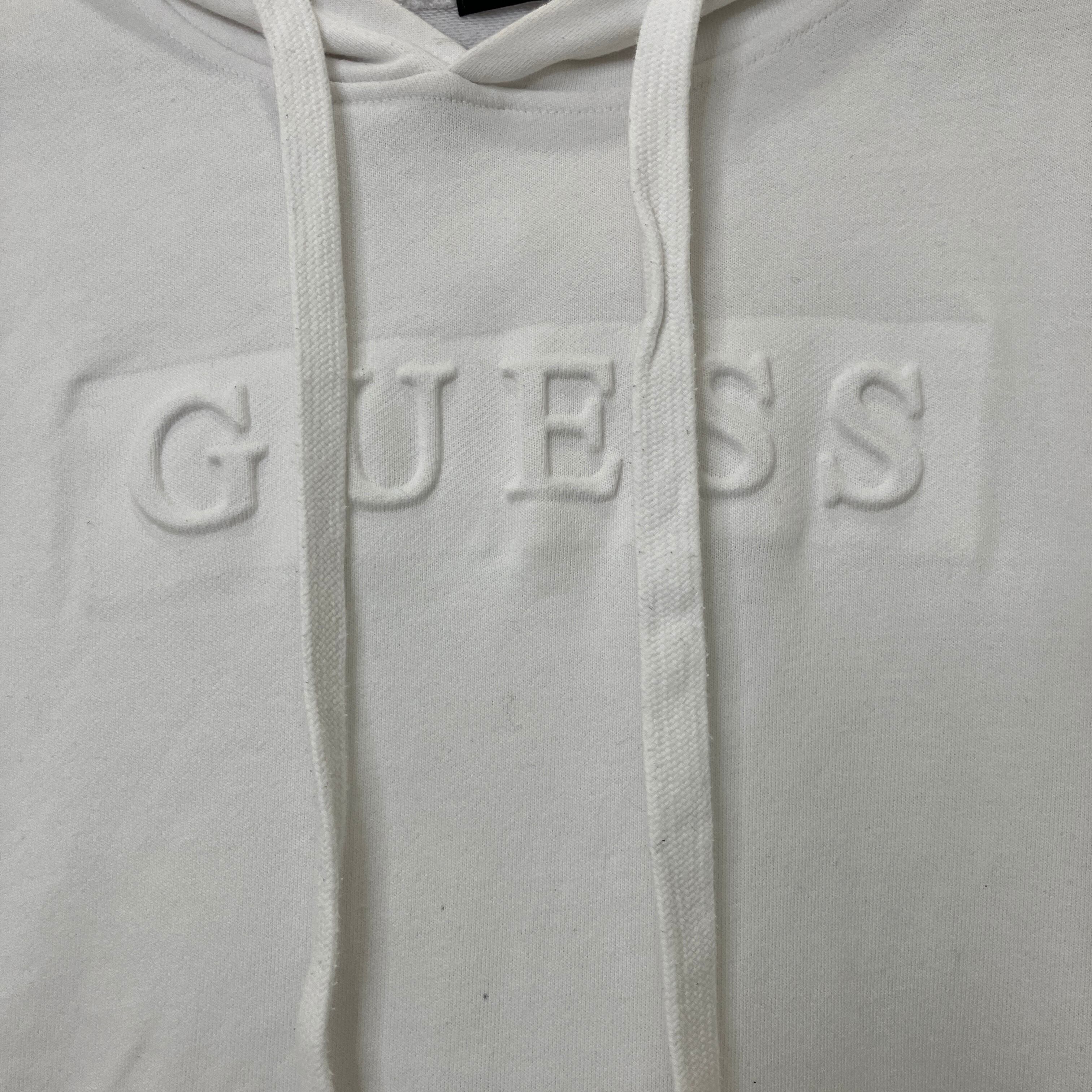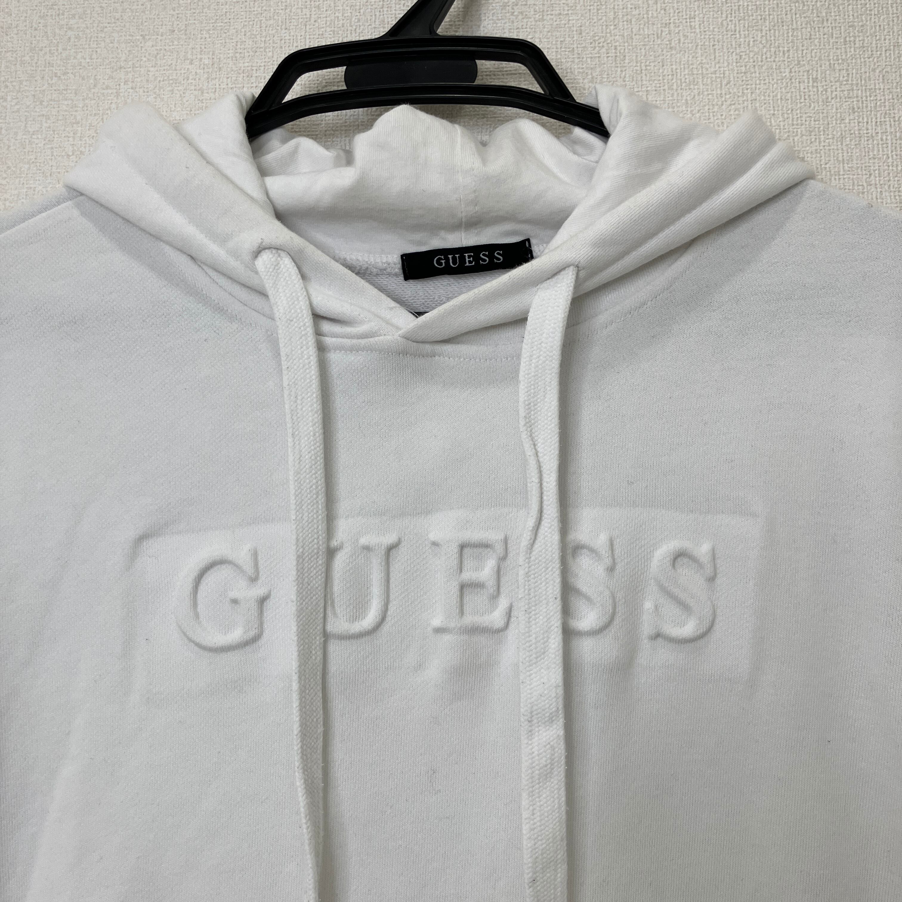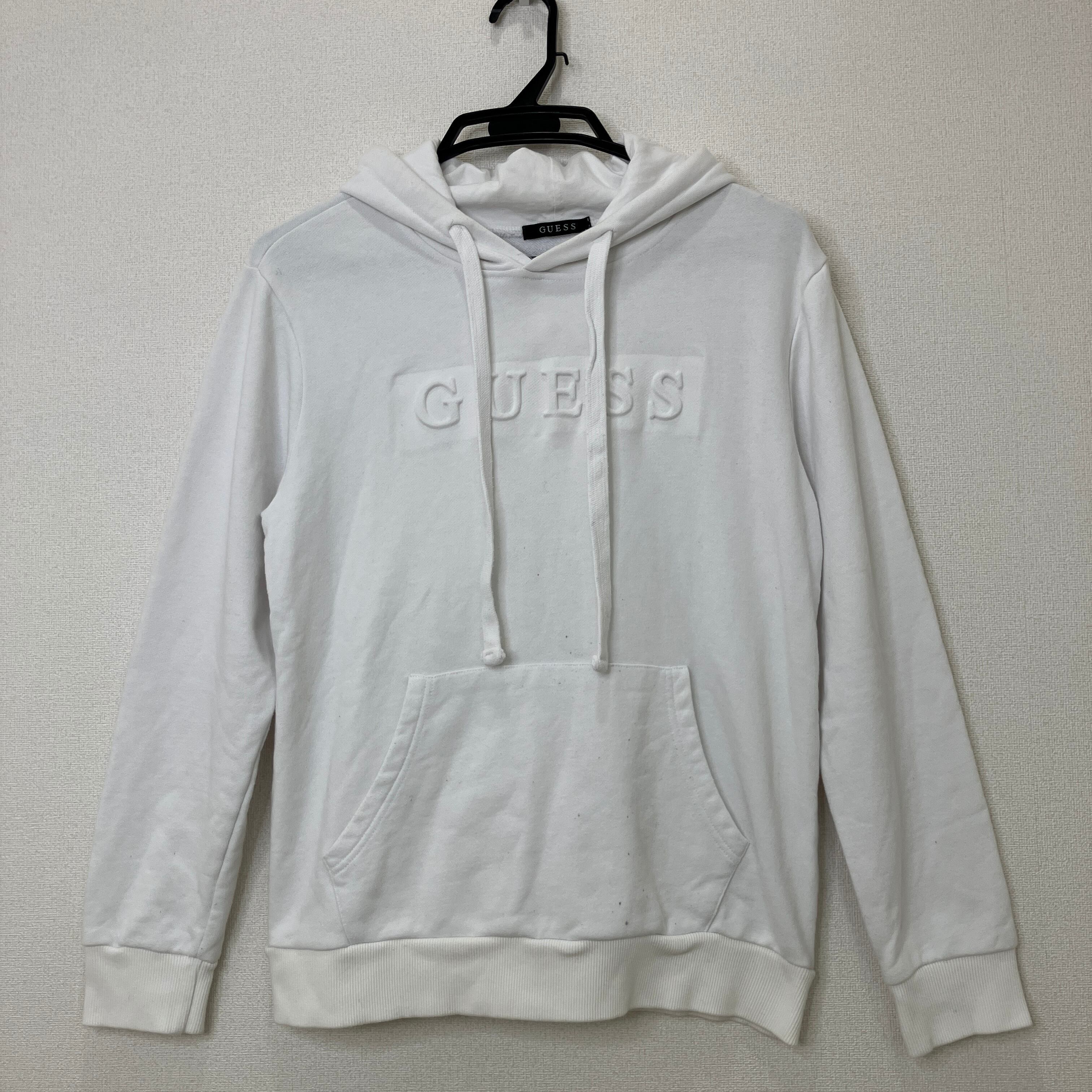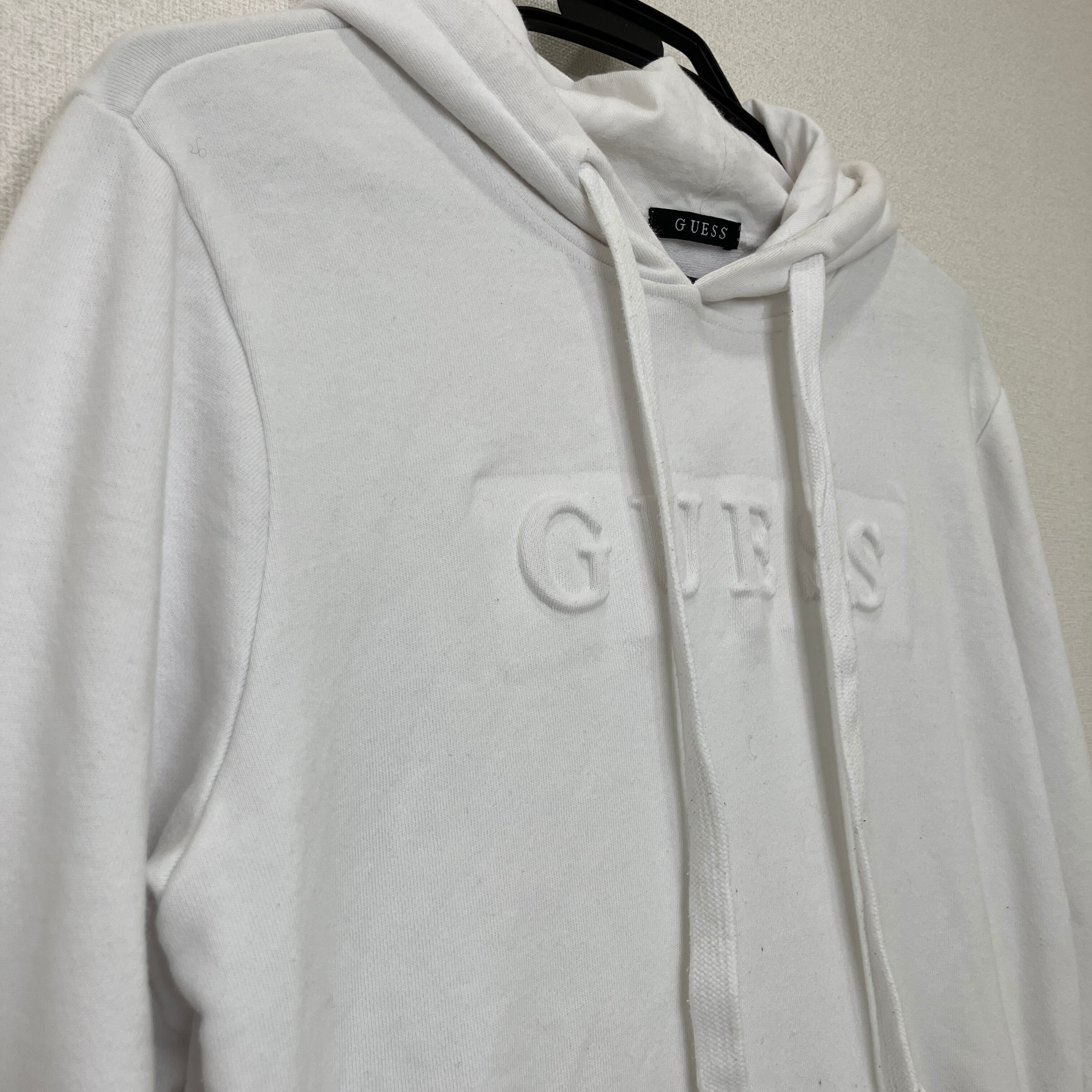 GUESS エンボスロゴ パーカー ホワイト M プルオーバー スウェット