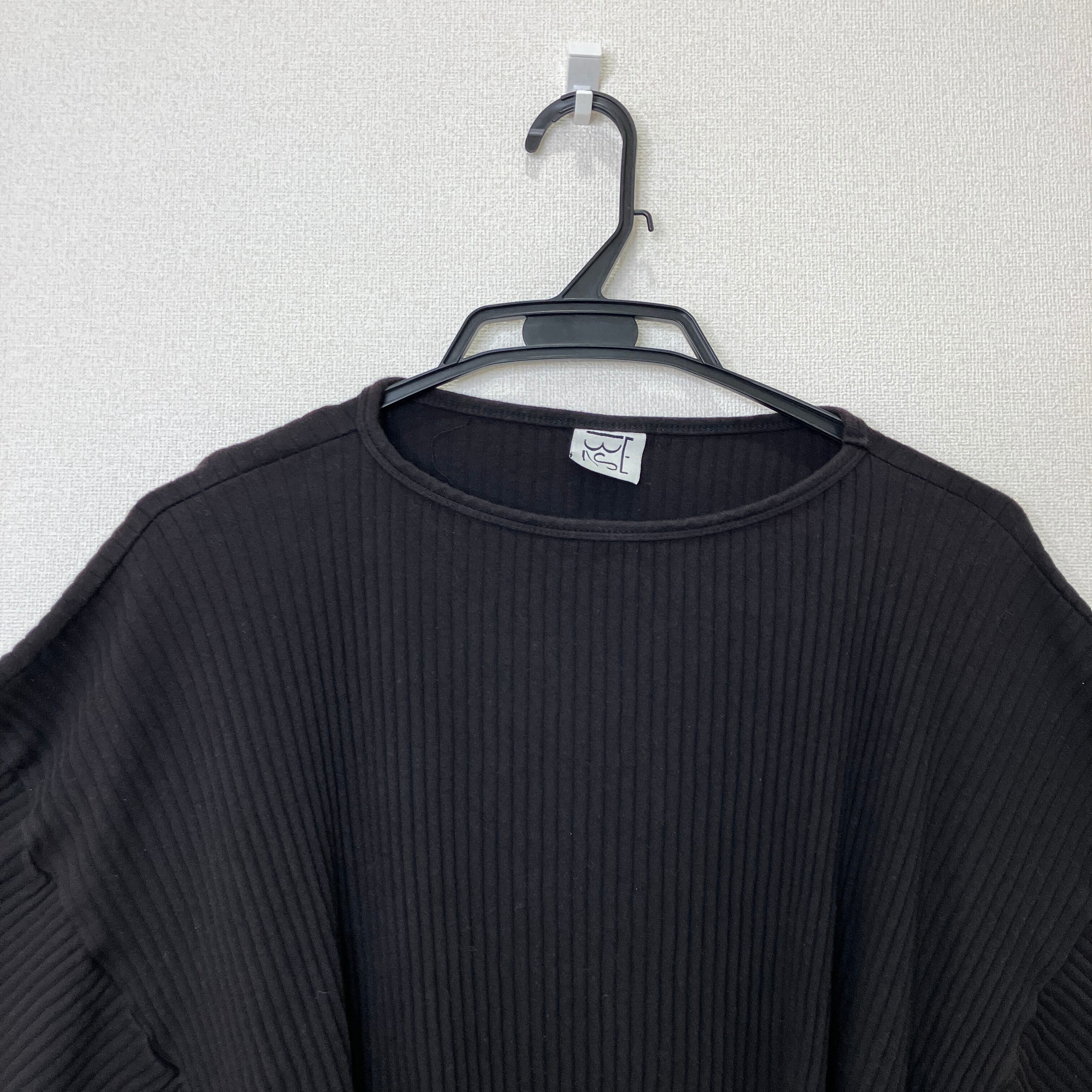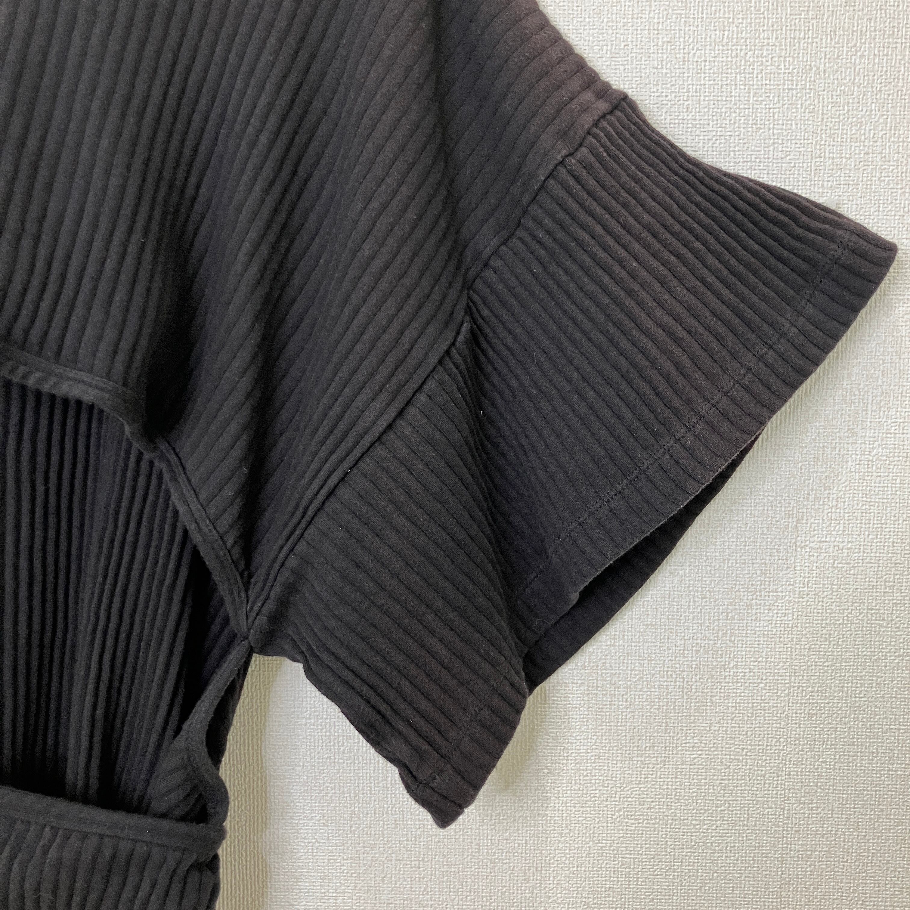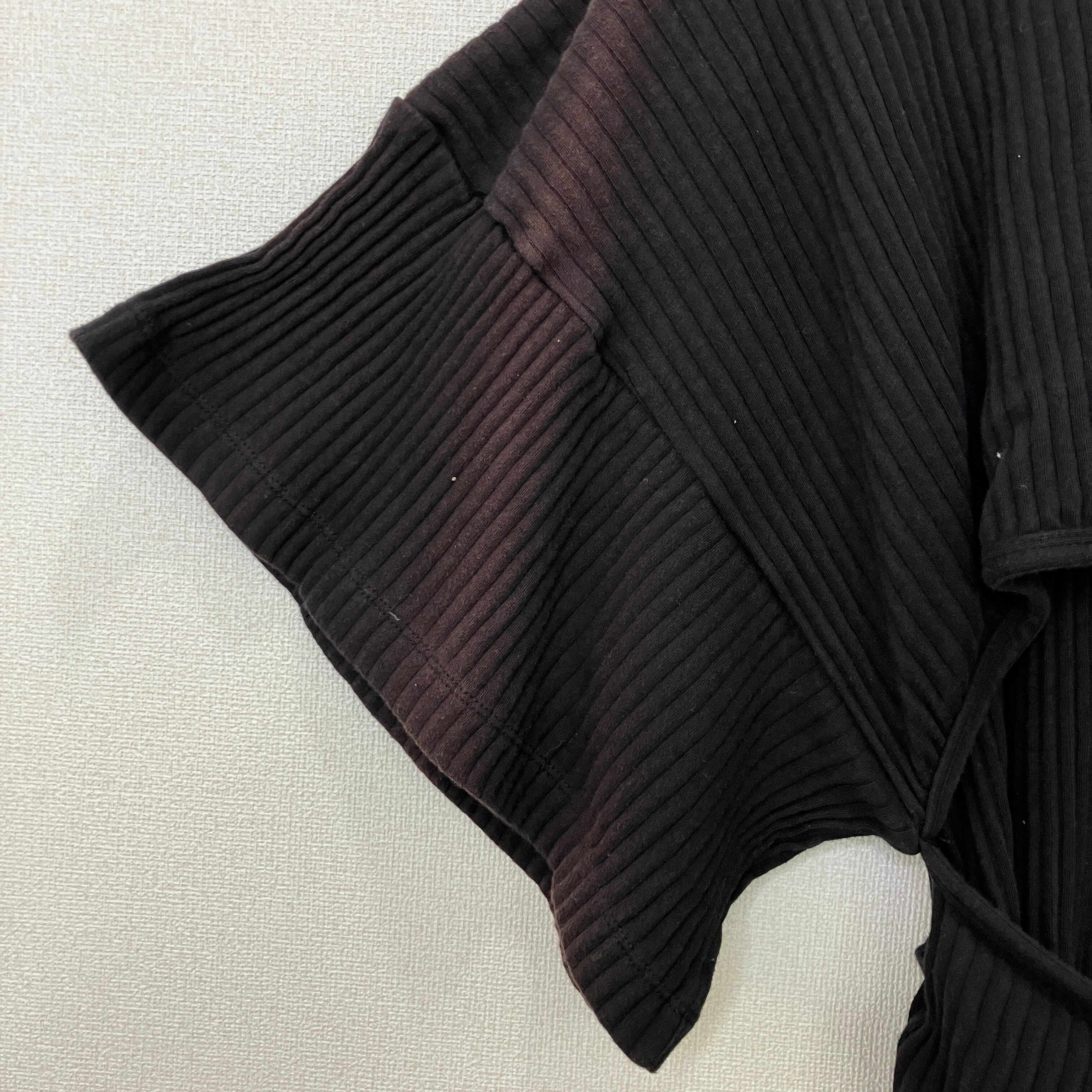BASERANGE(ベースレンジ)リブ コットン ベルト付 カットソー ブラック XS
