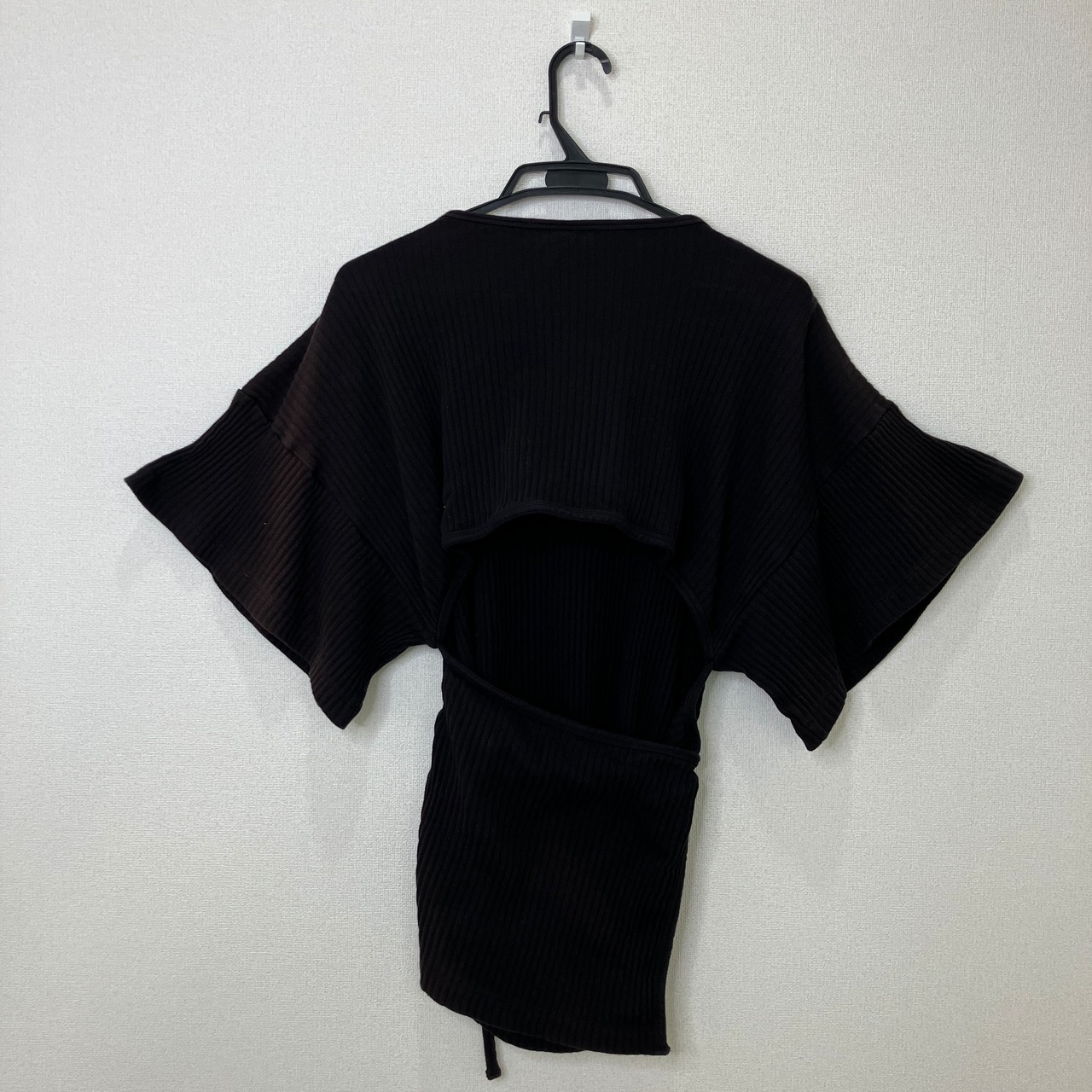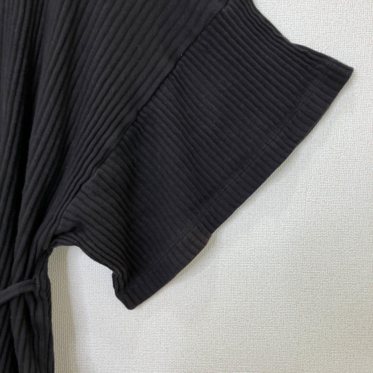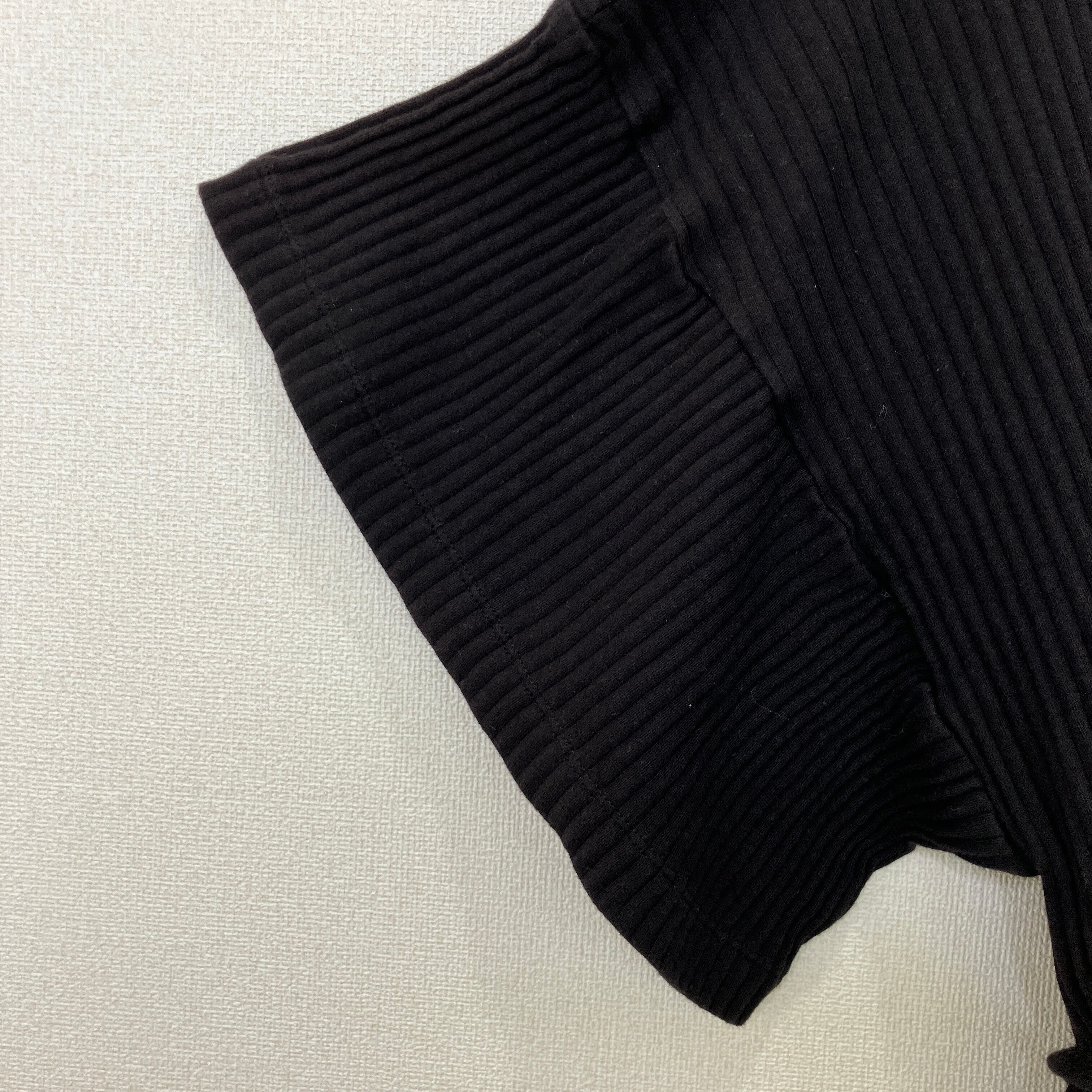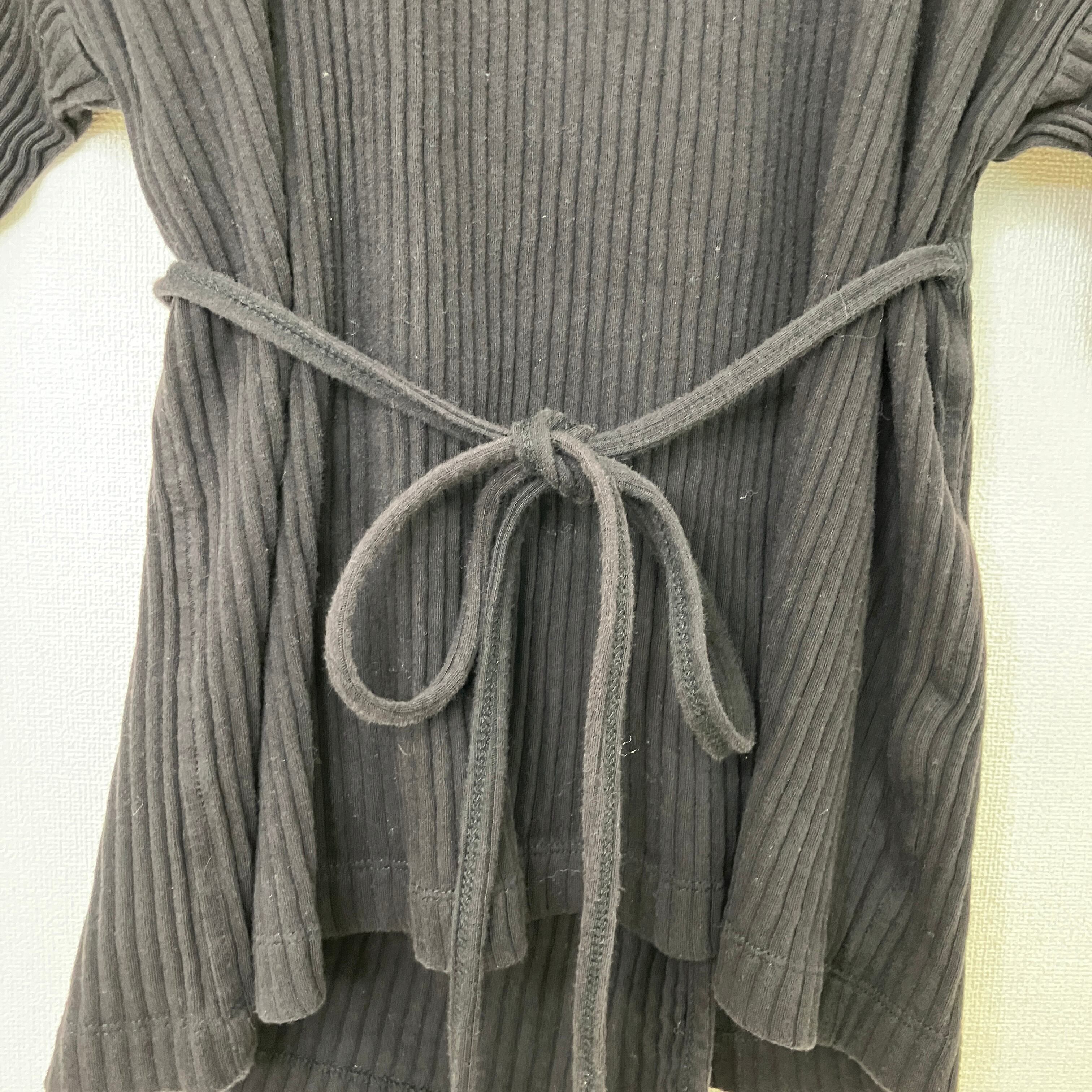 BASERANGE(ベースレンジ)リブ コットン ベルト付 カットソー ブラック XS