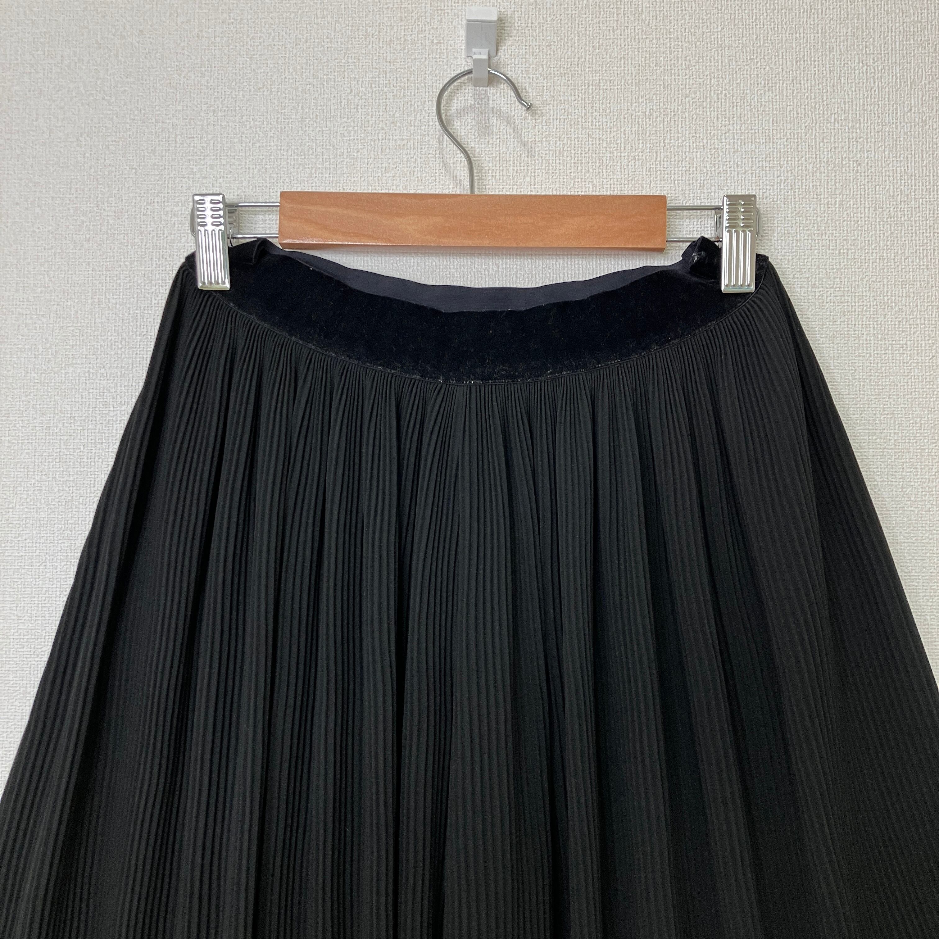 光沢感のあるベロア調のウエストゴム切り替えがアクセントになっており、タックインスタイルも綺麗に決まります。