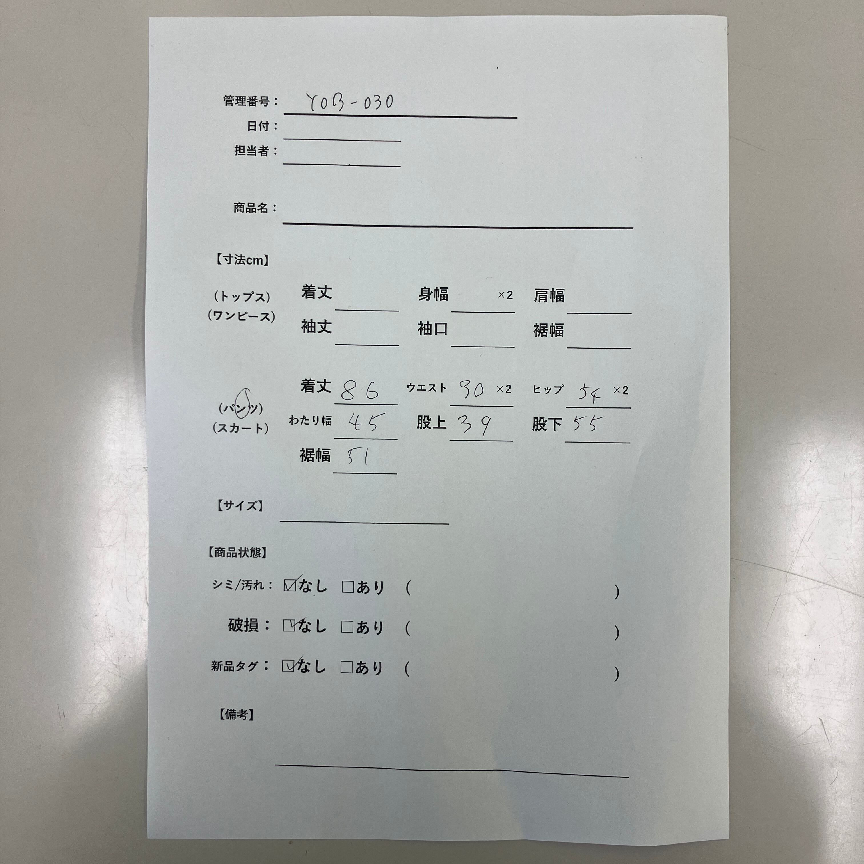シミ/汚れ: なし