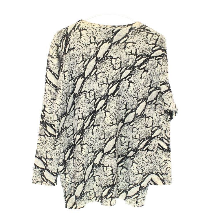 表記サイズはありませんが、実寸よりレディースM〜Lサイズ相当のサイズ感です。身幅にゆとりのあるリラックスシルエットのトップスです。必ず実寸をご確認の上ご検討ください。
