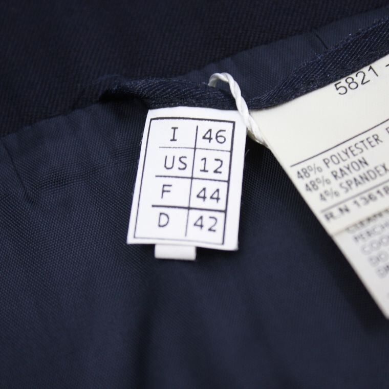 表記サイズはI46(US12)で、実寸よりレディースLサイズ相当のサイズ感です。身幅にややゆとりのあるシルエットのジャケットです。必ず実寸をご確認の上ご検討ください。
