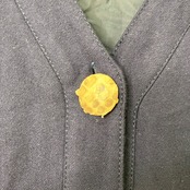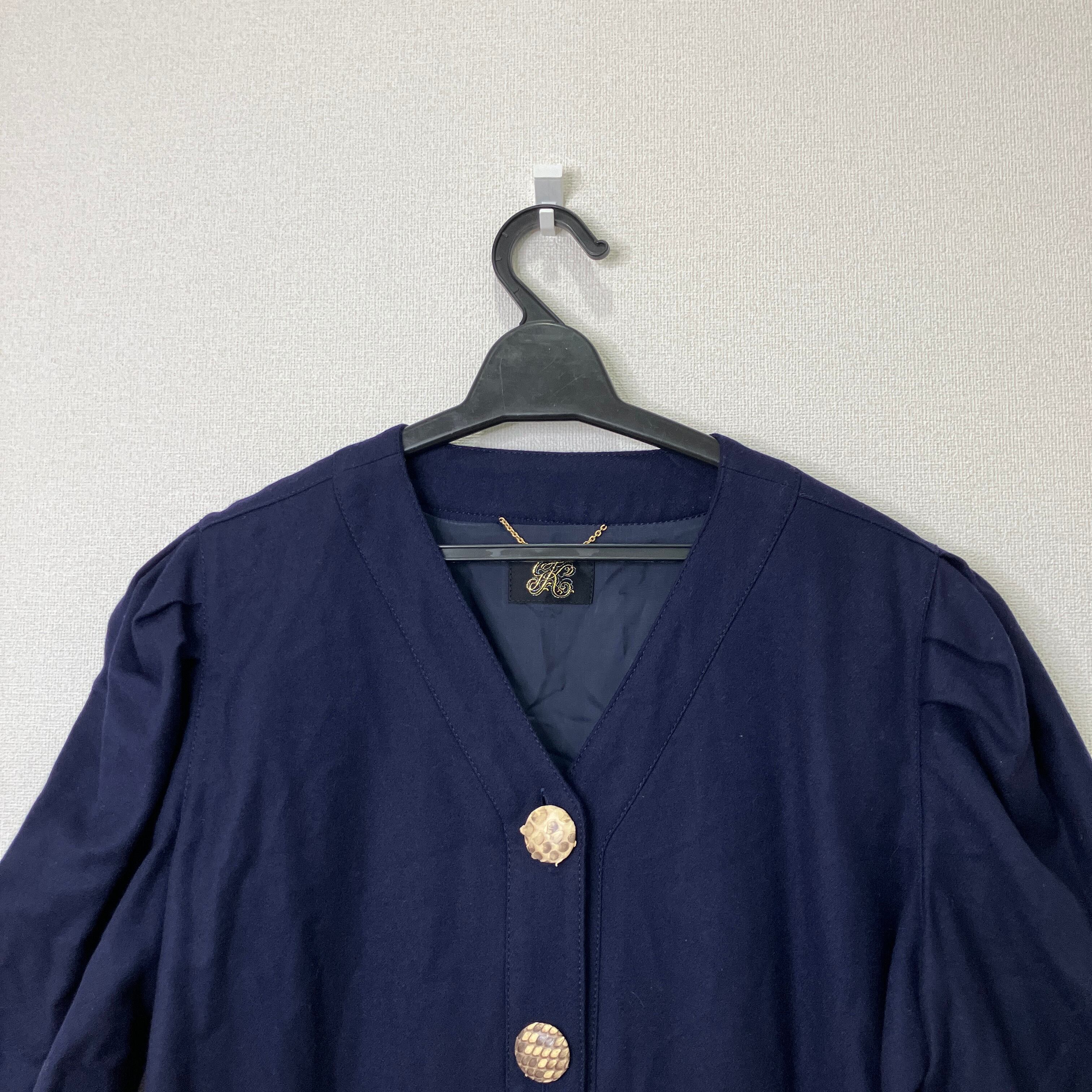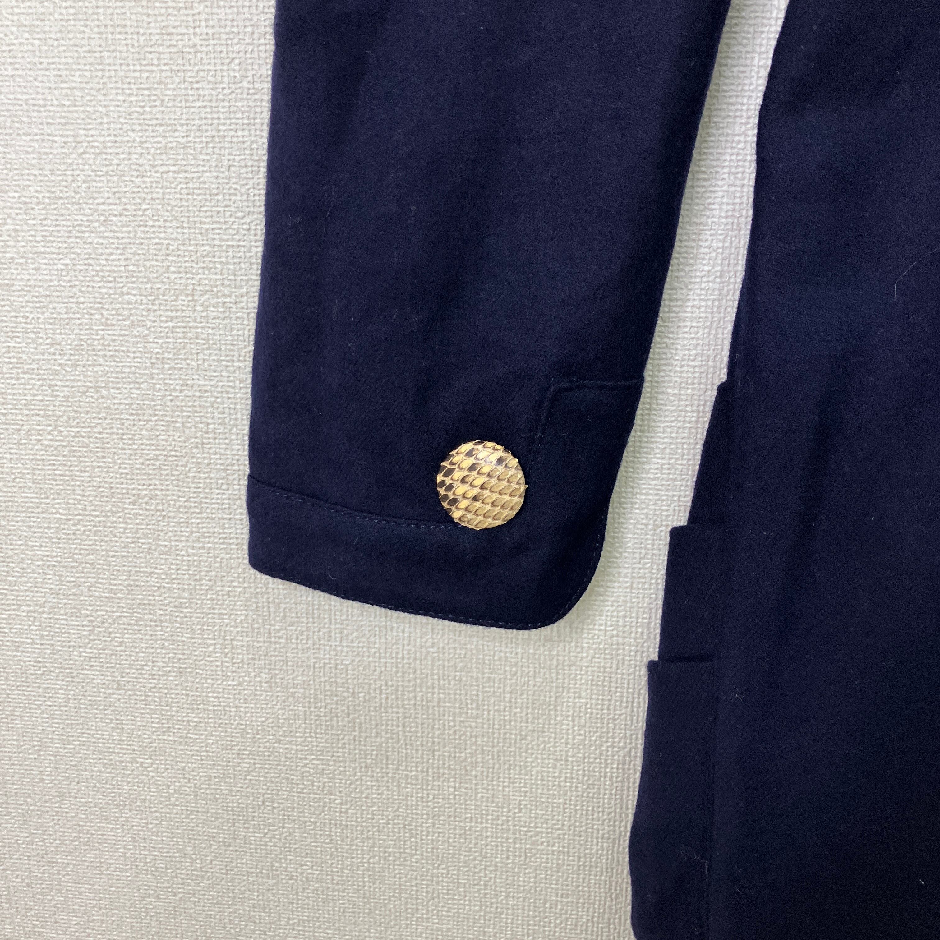 ゴールドボタンがアクセントになり、1枚でしっかり決まる一着です。