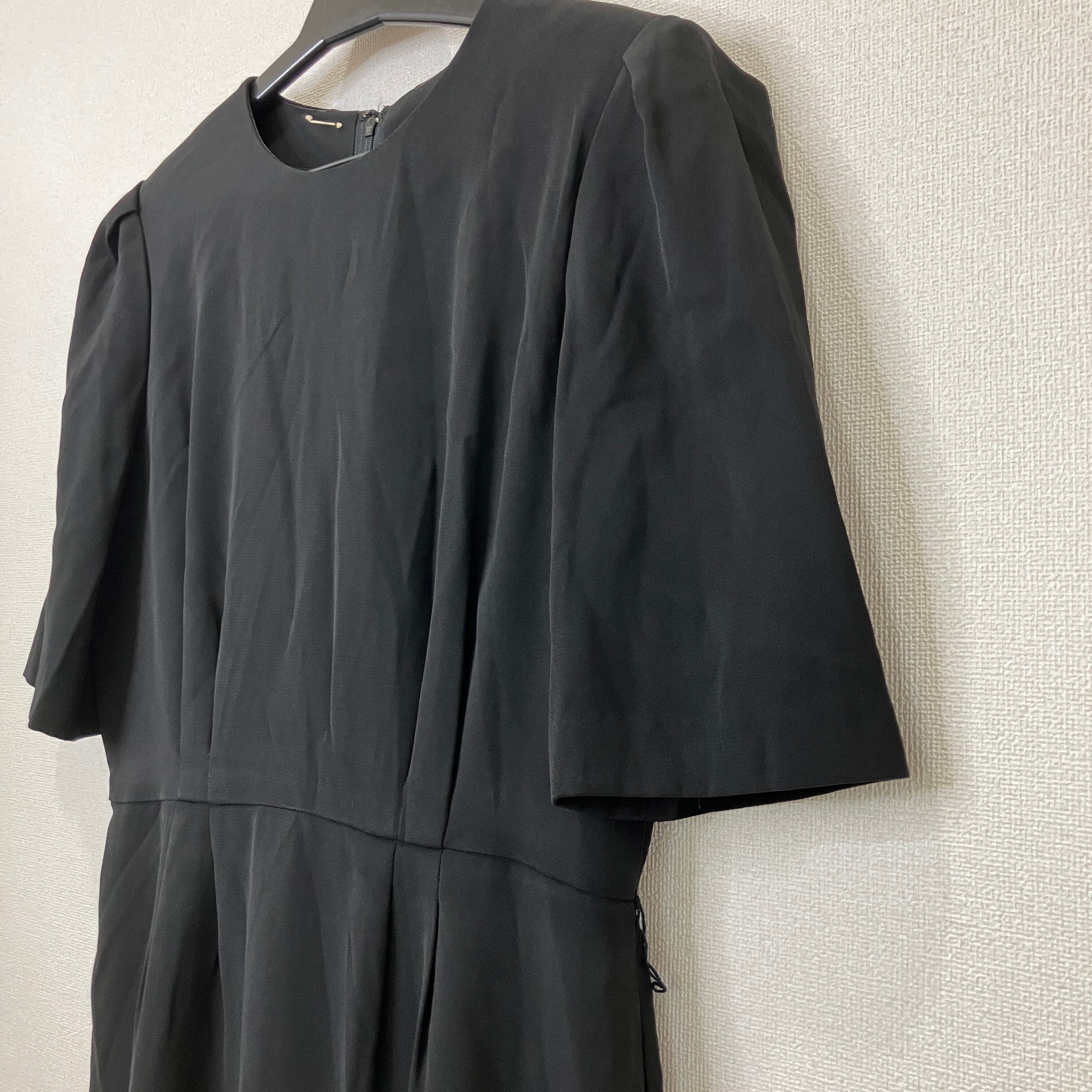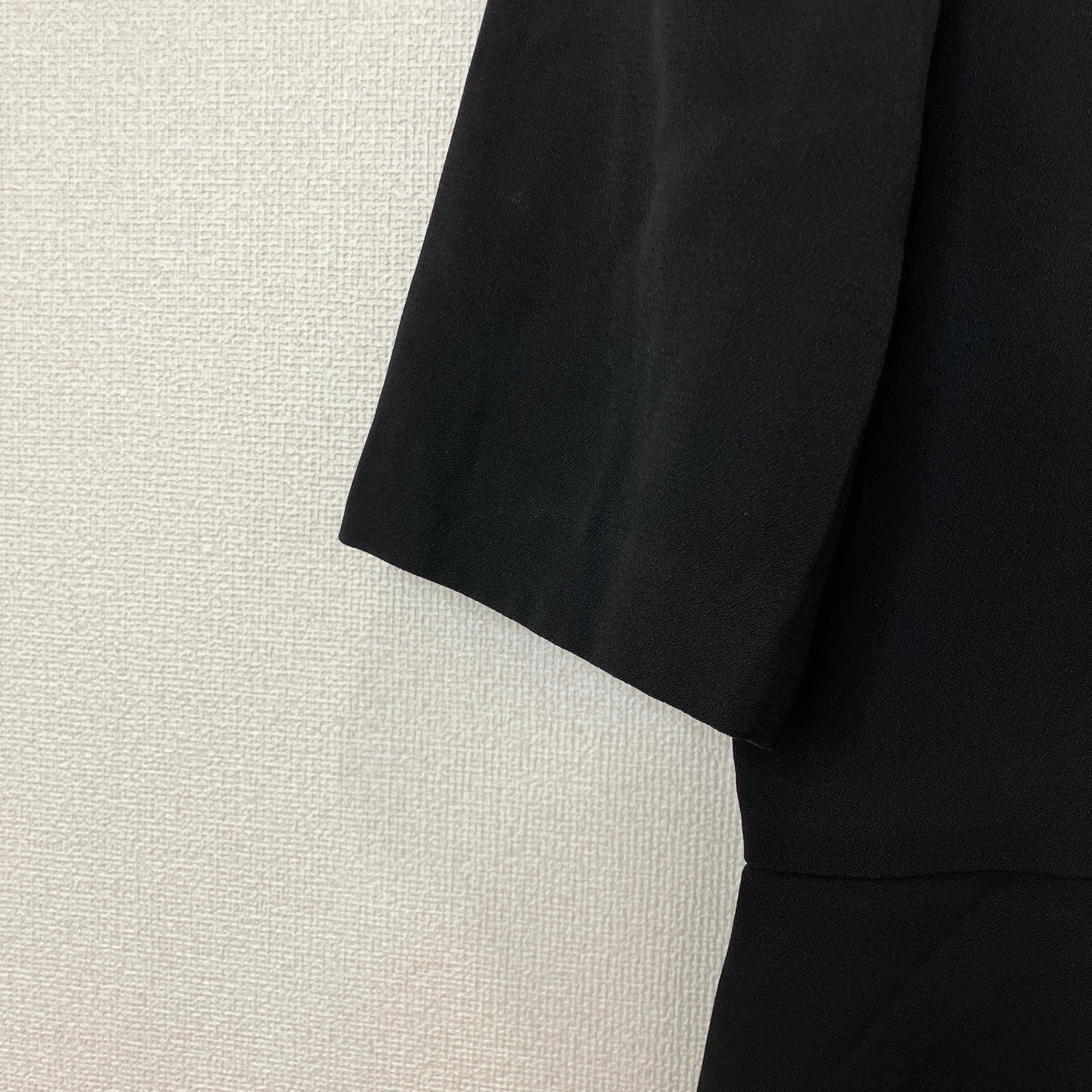 ウエストの切り替えや袖の程よいボリューム感が上品な印象を与え、冠婚葬祭や法事など、幅広いフォーマルシーンで活躍する一着です。