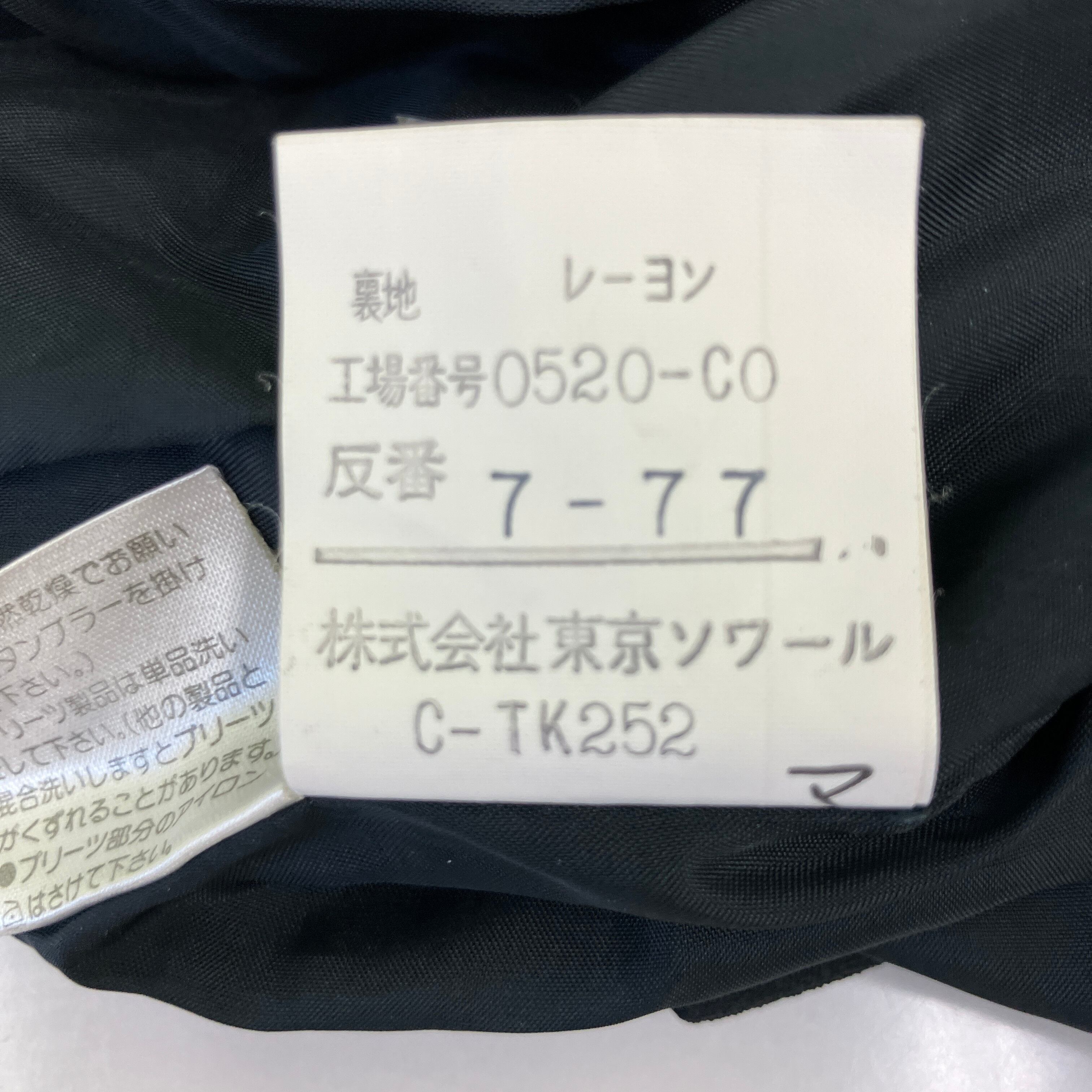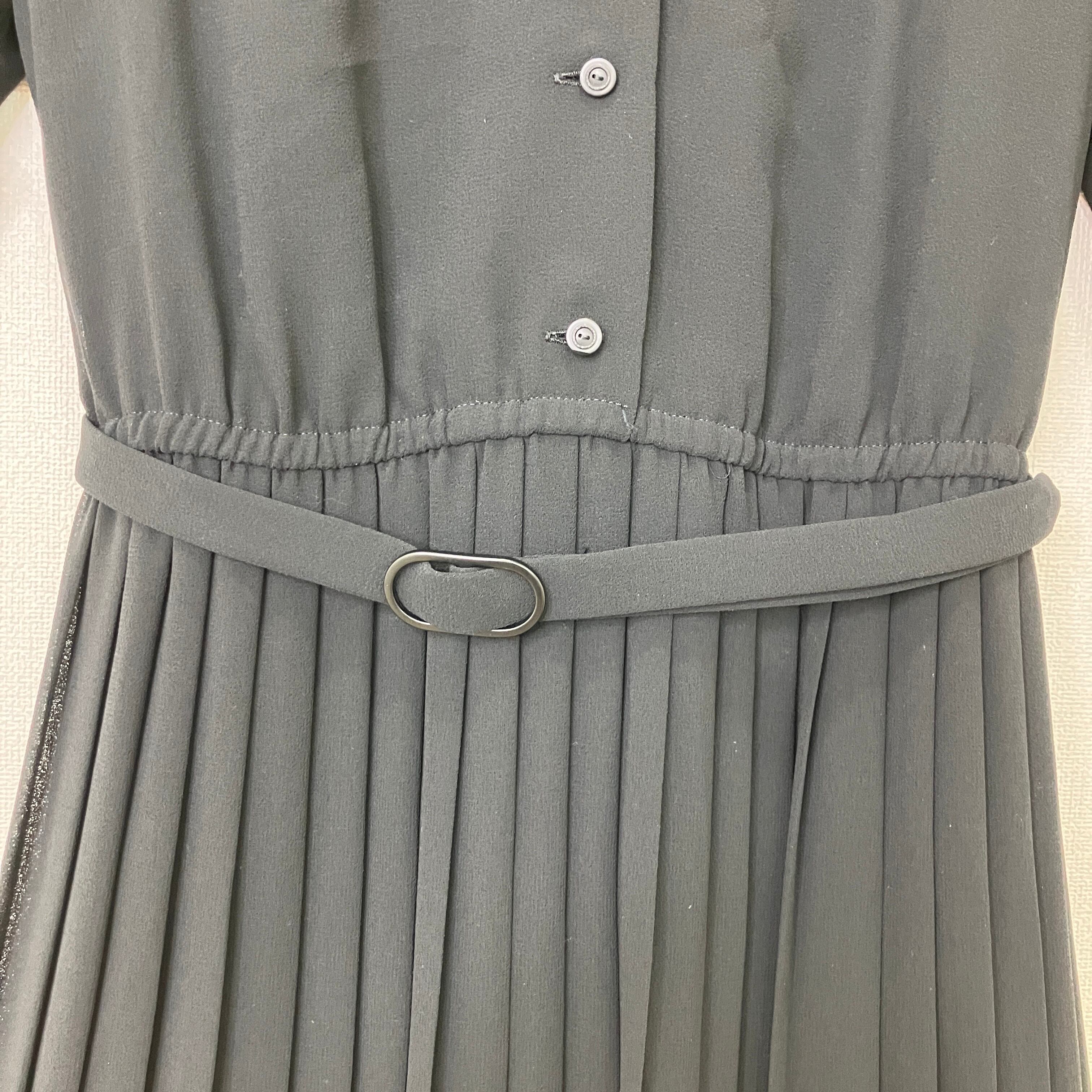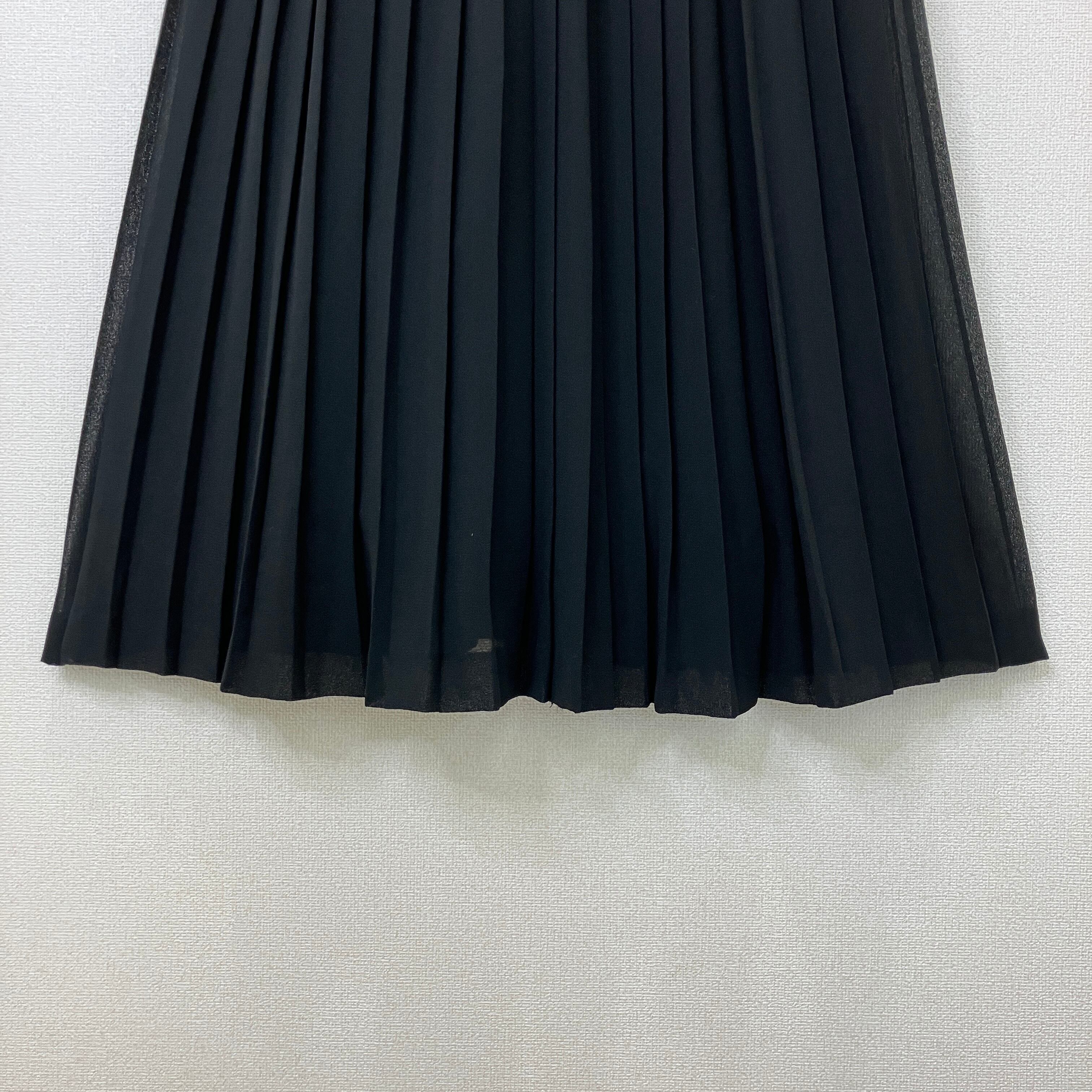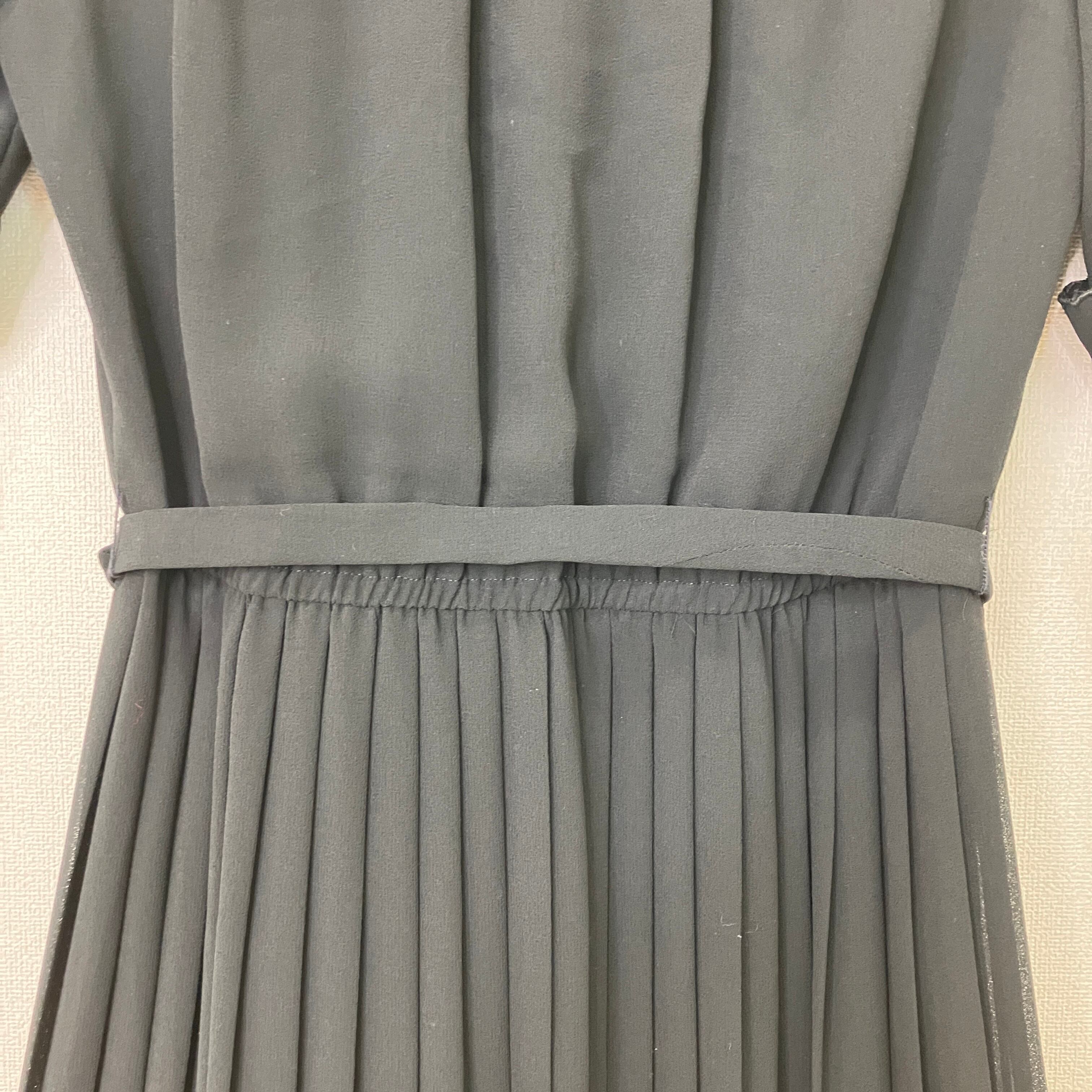 表記サイズは7号で、実寸よりレディースS相当のサイズ感です。上半身はコンパクトでウエスト切替のプリーツデザインにより、すっきりとした女性らしいシルエットになります。着丈は膝丈程度です。必ず実寸をご確認の上ご検討ください。