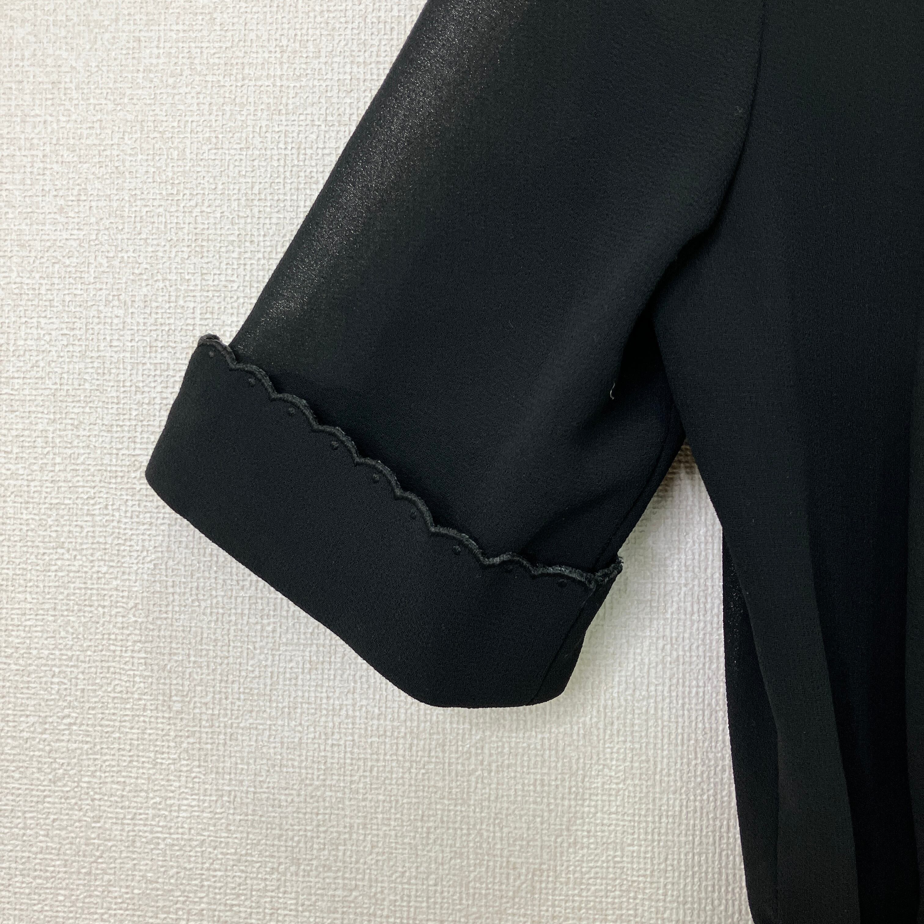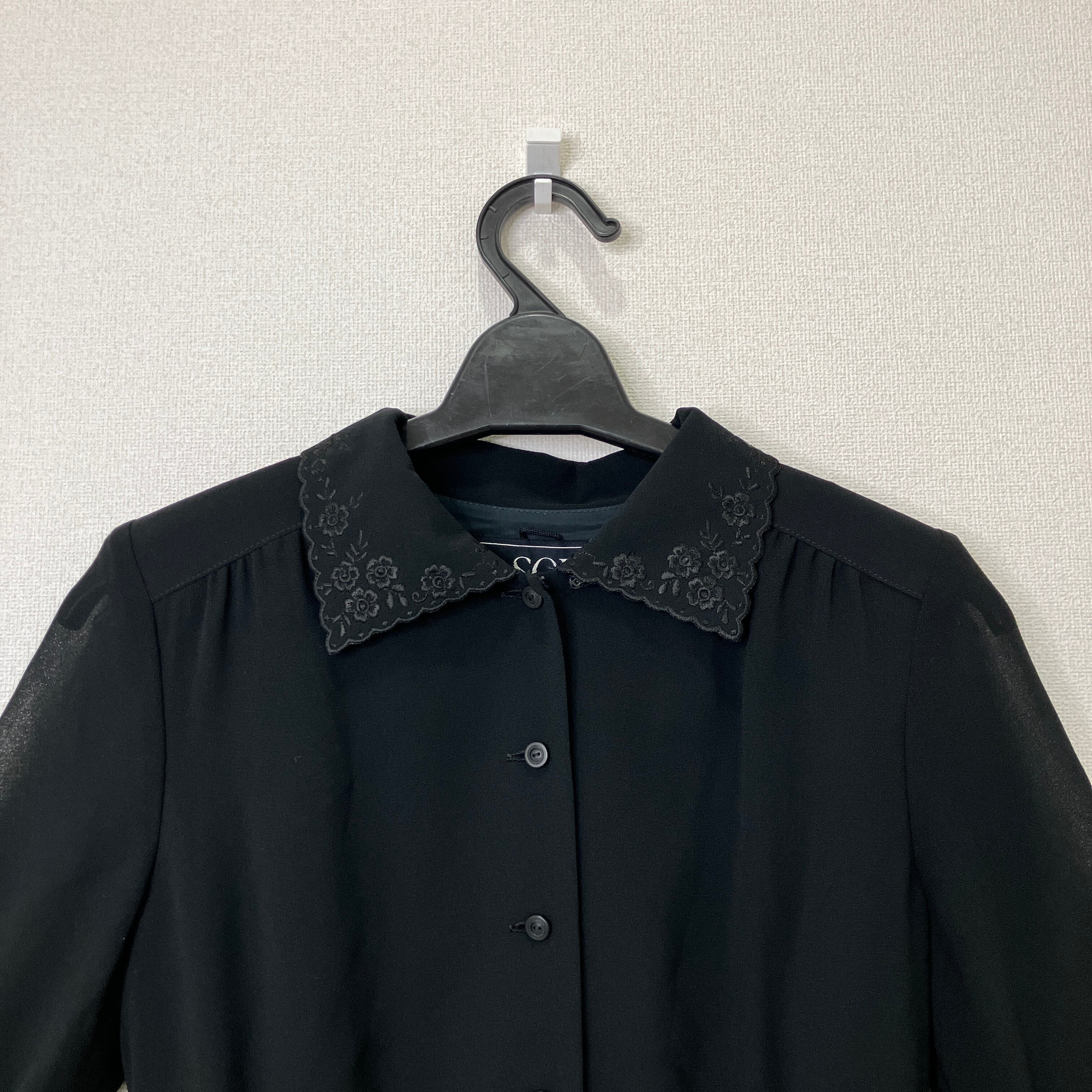 東京ソワール ブラックフォーマル ワンピース 7号 プリーツ 襟刺繍 半袖 冠婚葬祭 礼服 レディース 黒