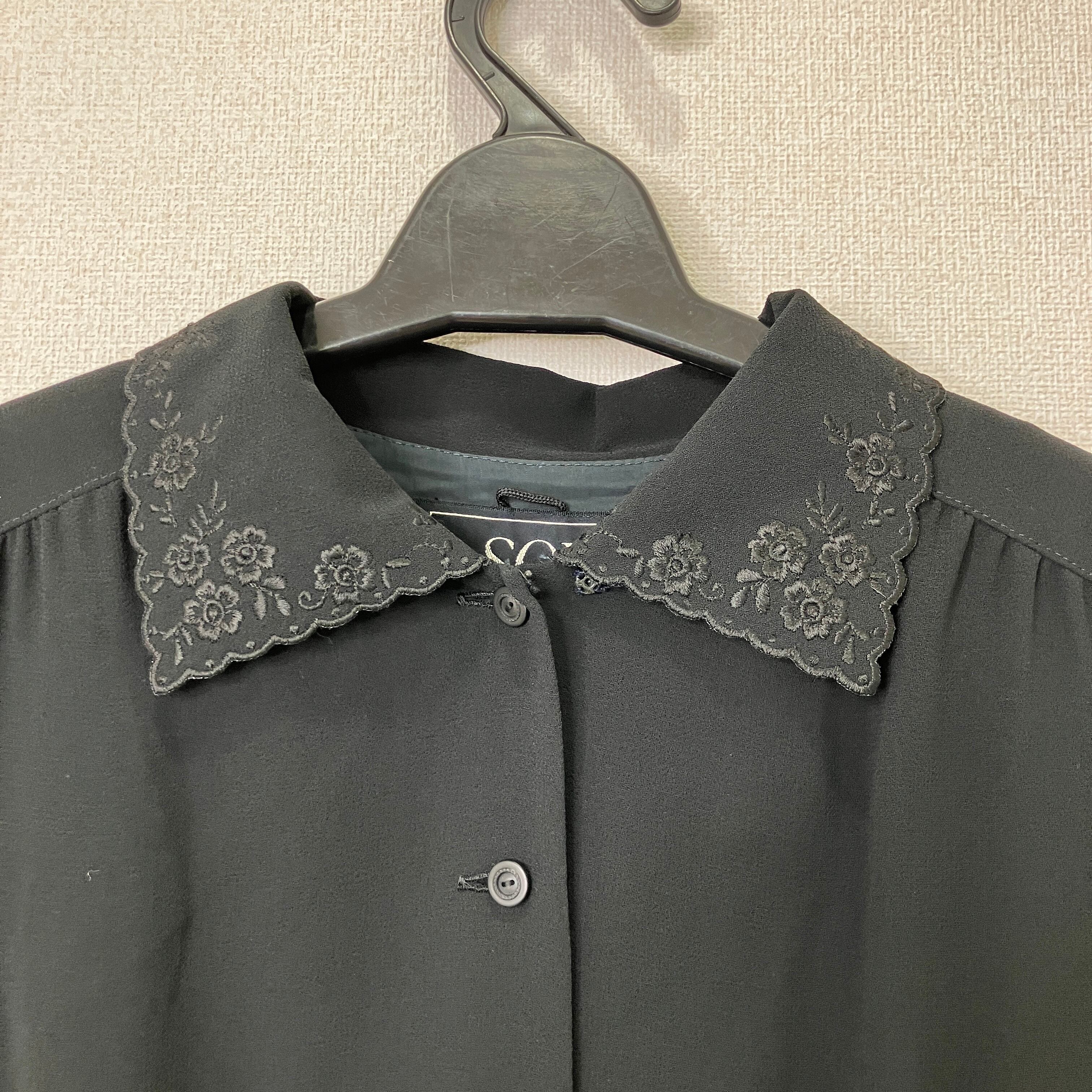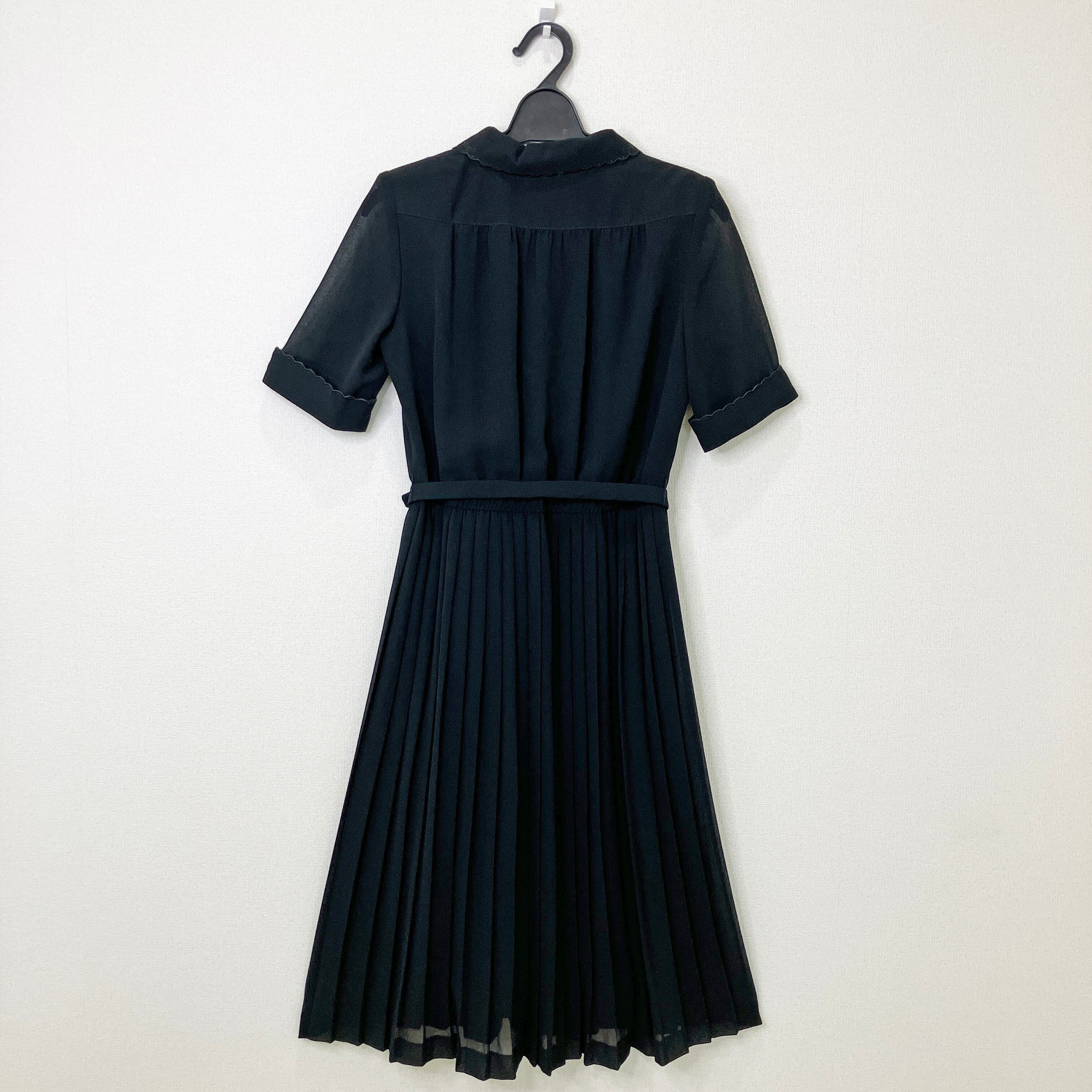 TOKYO SOIR(東京ソワール) 刺繍襟 プリーツワンピース ブラック フォーマル 7号