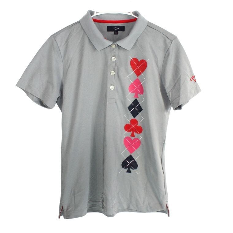 Callaway ゴルフ ポロシャツ 半袖 グレー ハート柄 レディース LLサイズ