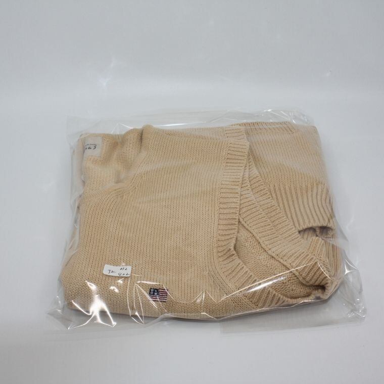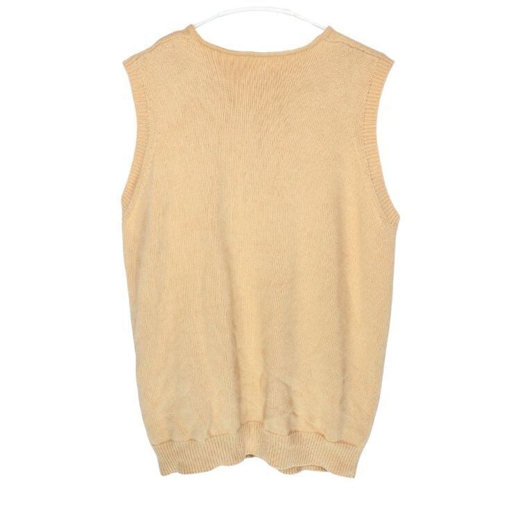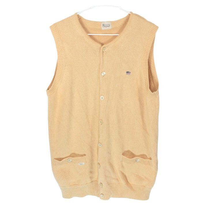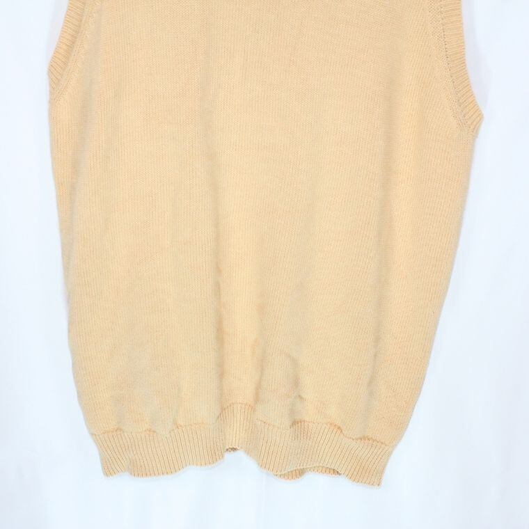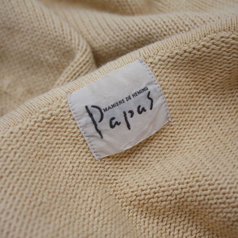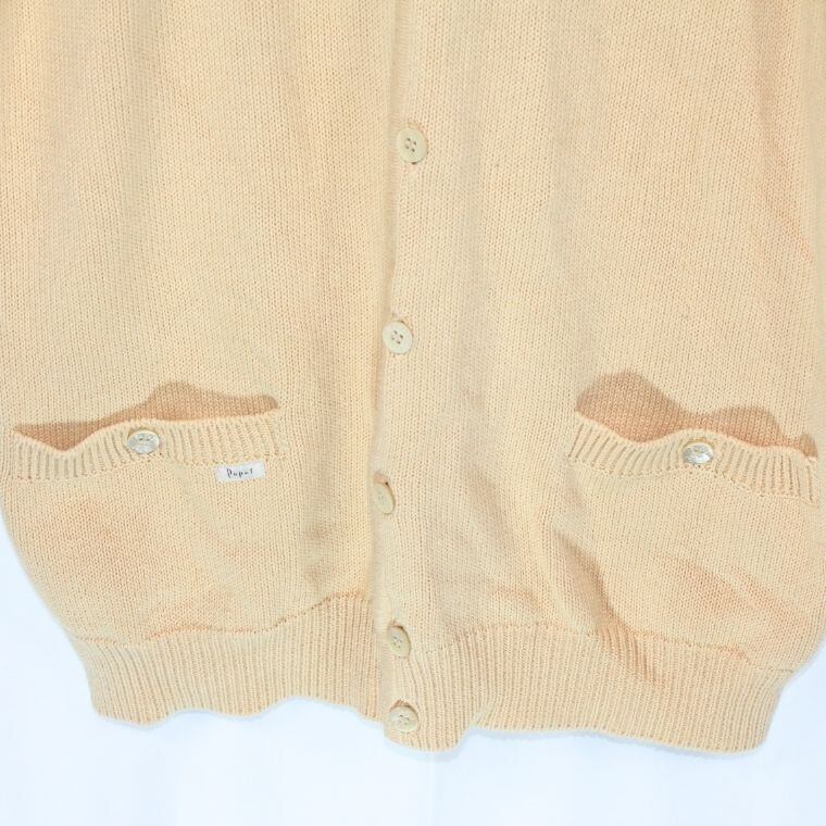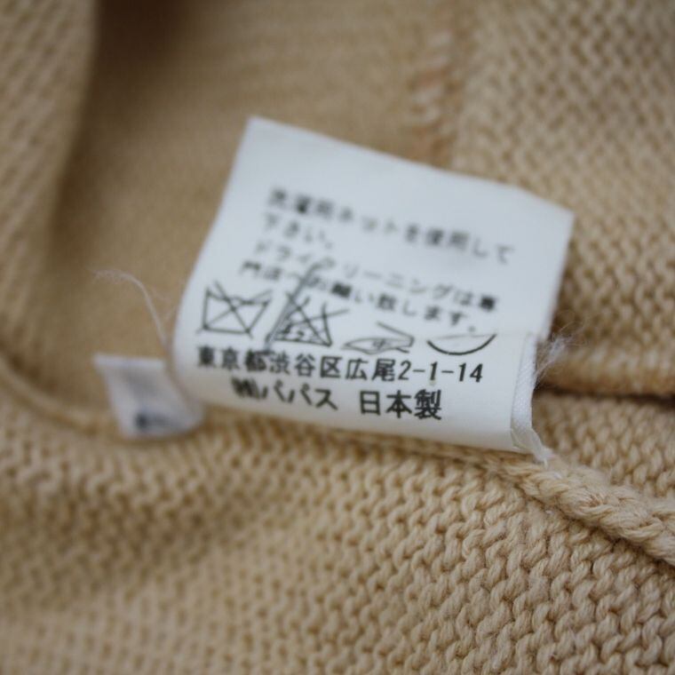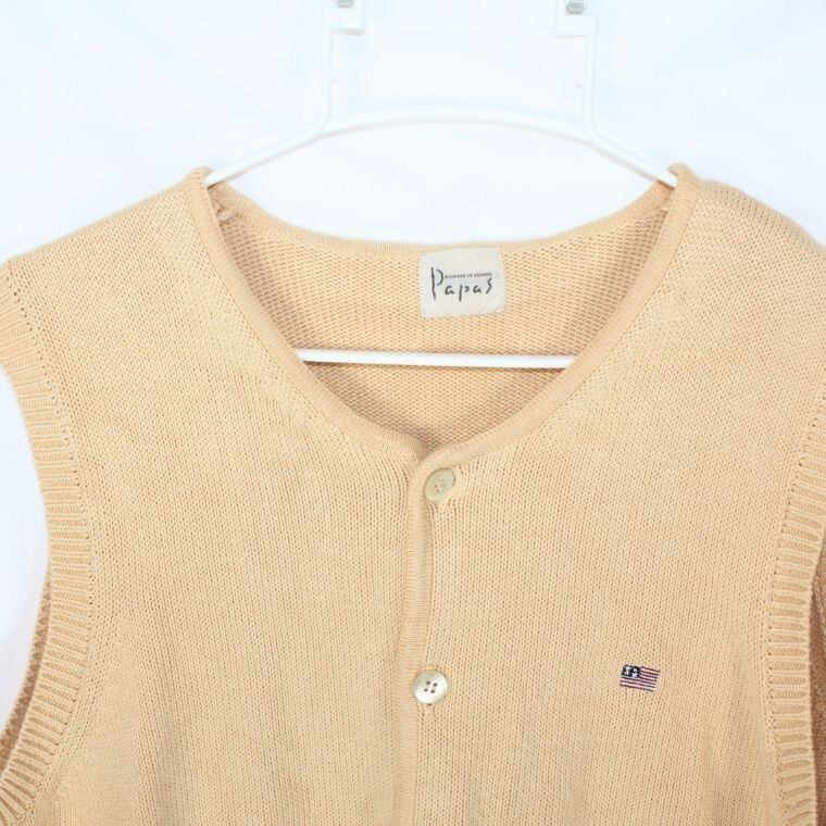 Papas ニットベスト M 日本製 コットン リネン ベージュ 前開き