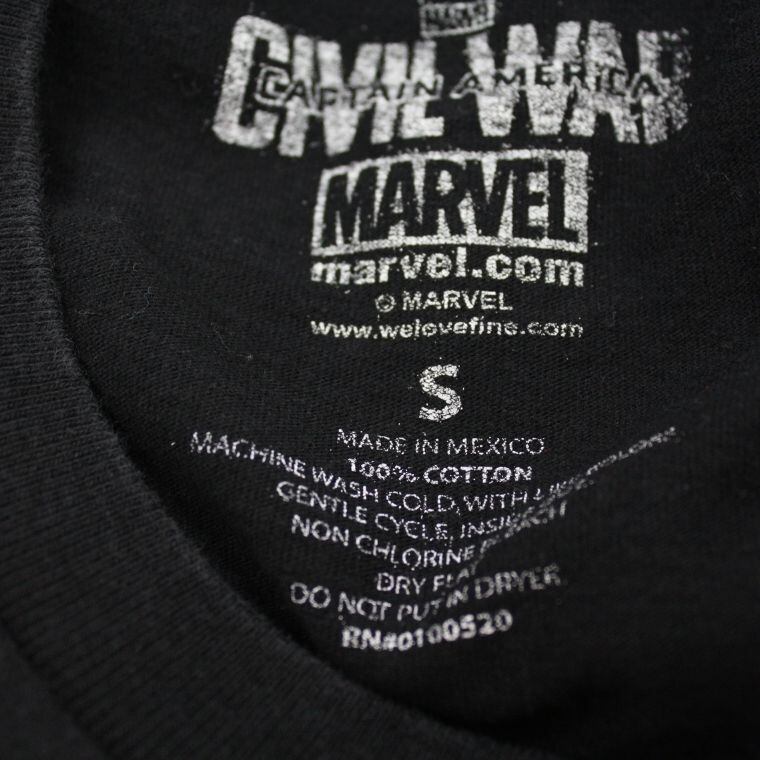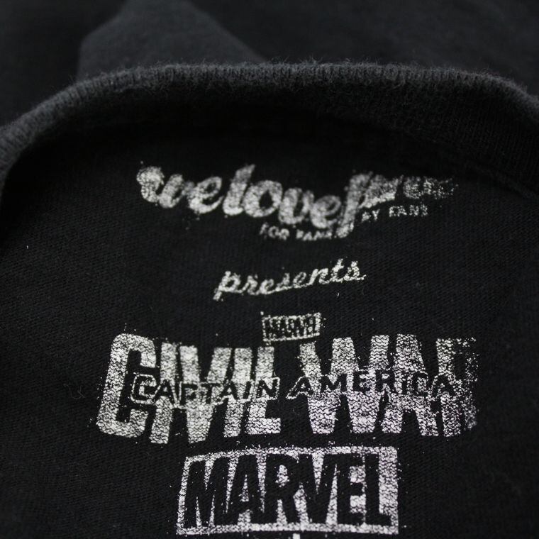 マーベル「キャプテンアメリカ シビルウォー」のロゴTシャツ。