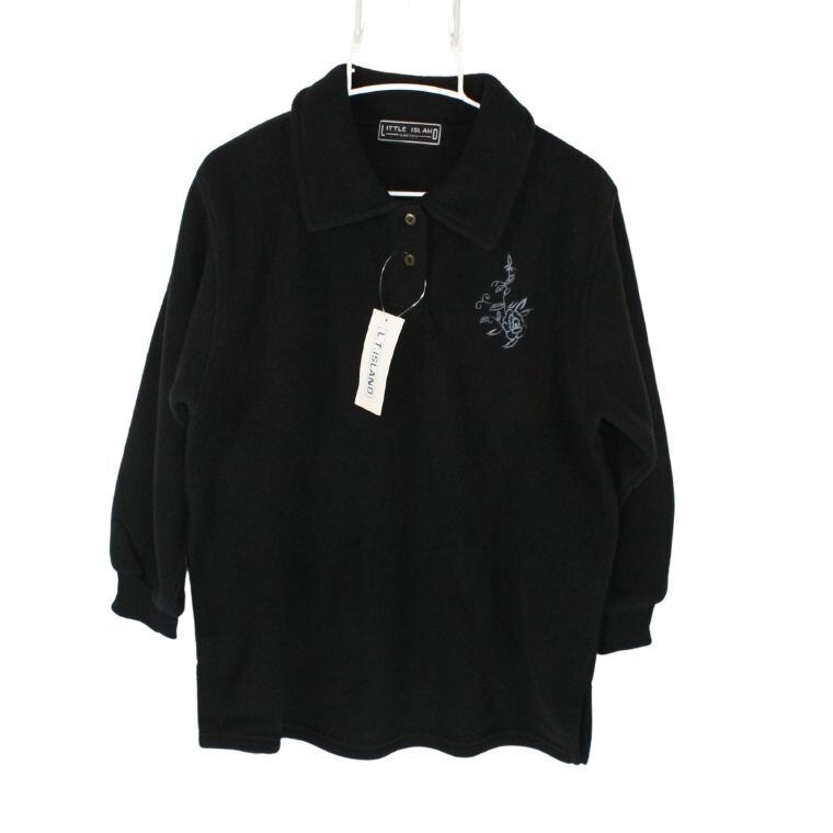 L.T.ISLAND フリース プルオーバー 長袖 ブラック M 刺繍 レディース