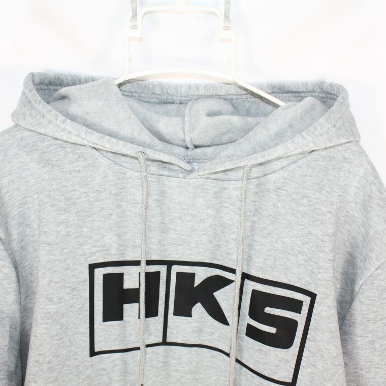 HKS パーカー グレー L フーディ ロゴ バックプリント 車系 メンズ