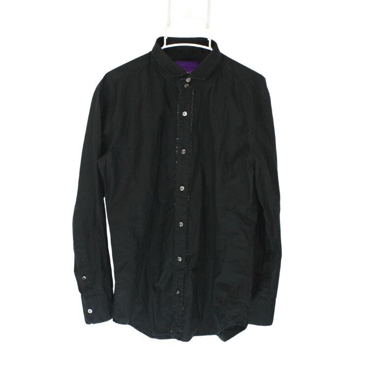 シンプルなブラックカラーに、比翼仕立てのボタンデザインが特徴の長袖シャツです。