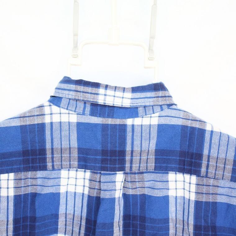 爽やかなブルー系チェック柄で、夏のカジュアルスタイルに最適な一着です。
