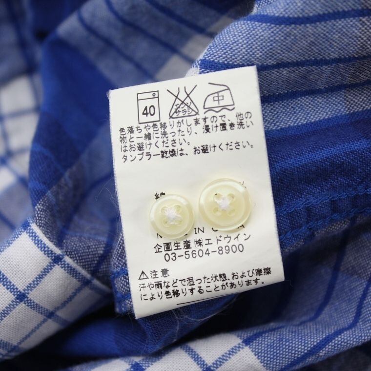 EDWIN 半袖 シャツ チェック ブルー Sサイズ ボタンダウン カジュアル