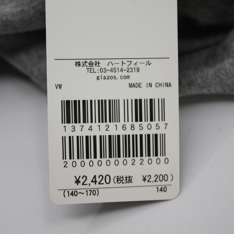 GLAZOS ロンT 長袖Tシャツ グレー ロゴ 140 キッズ 新品タグ付き