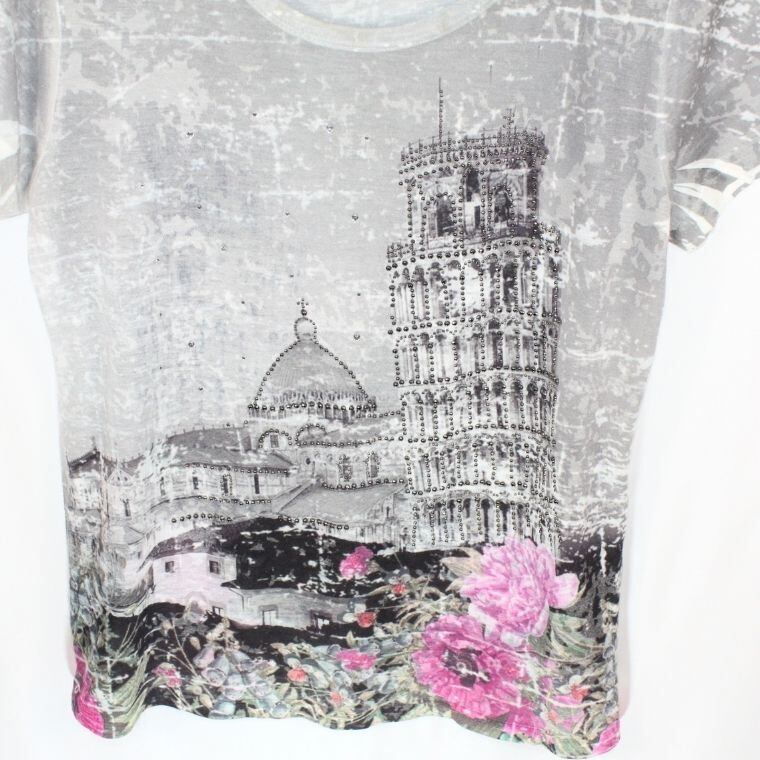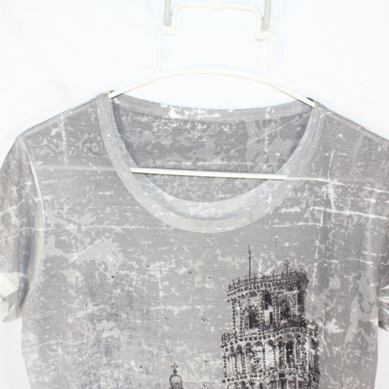 TRUST CLUB Tシャツ ピサの斜塔 花柄 グレー 半袖 レディース M相当