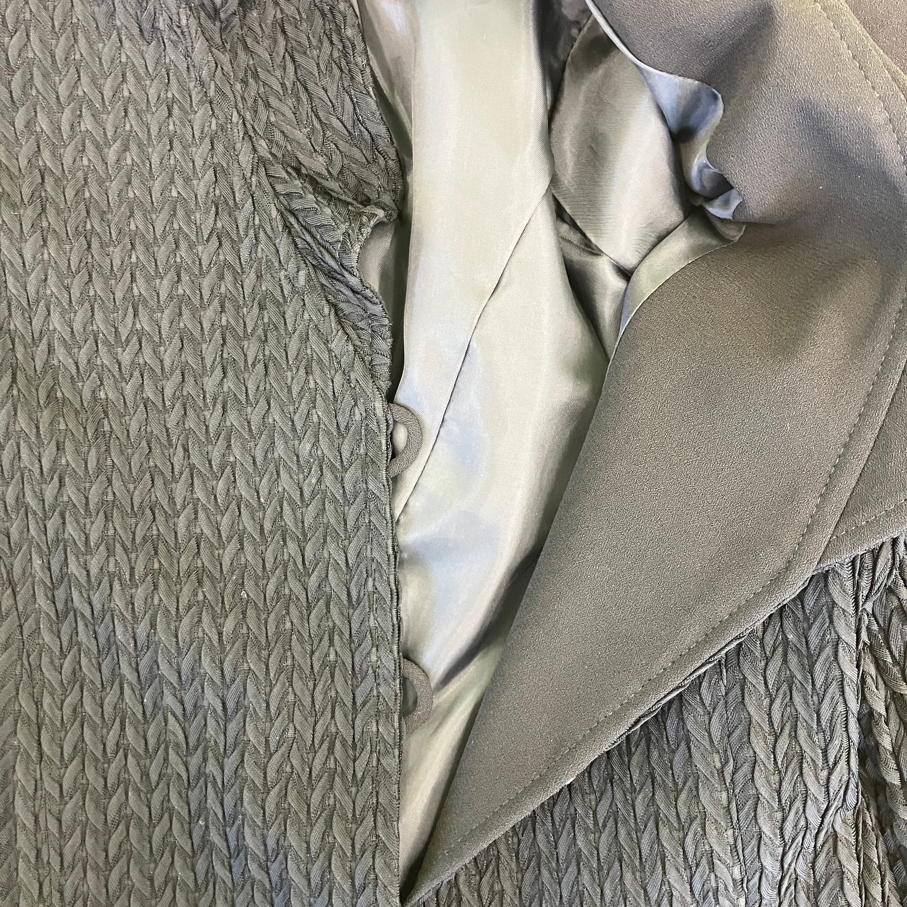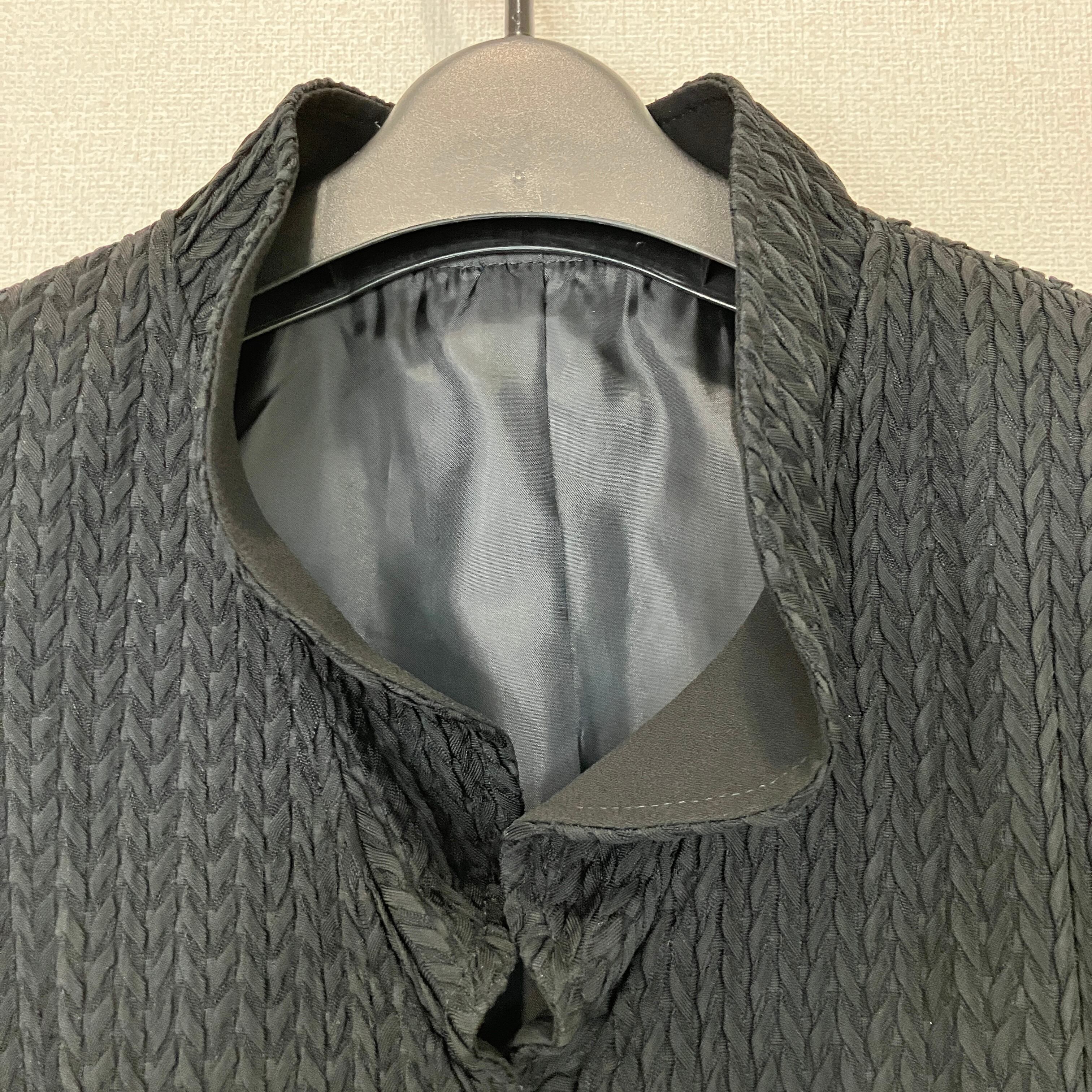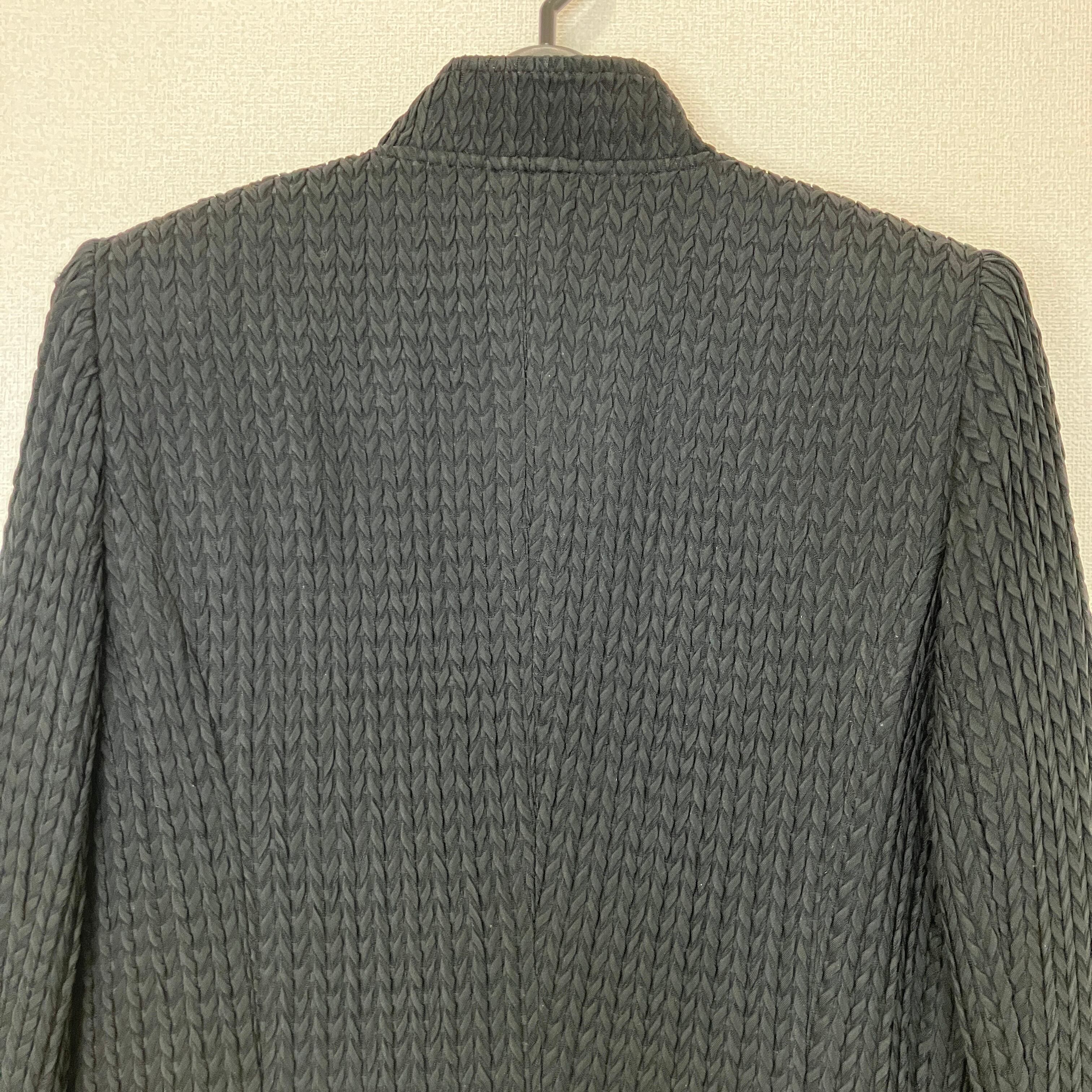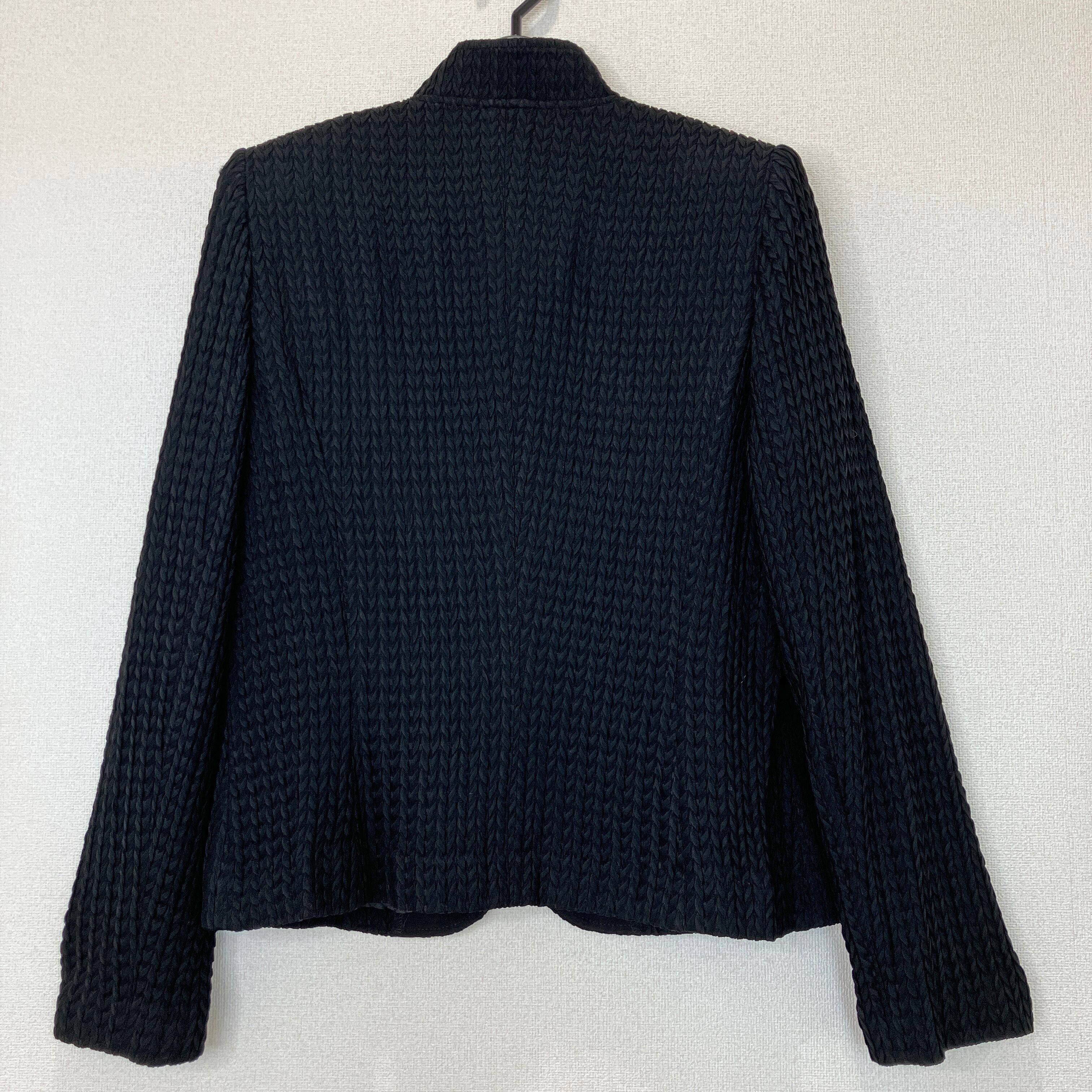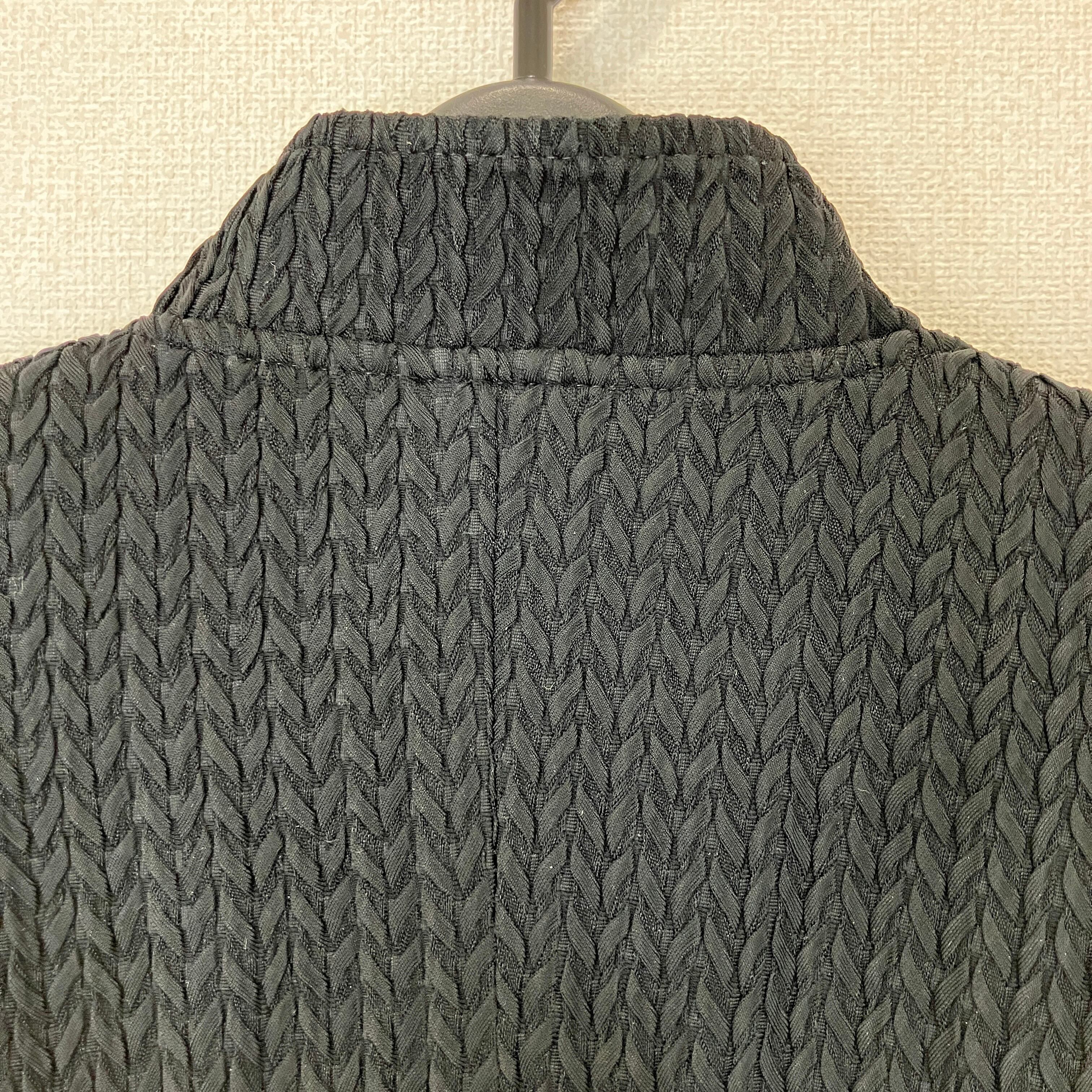 表情豊かな織り柄が目を引く、上品なブラックジャケットです。