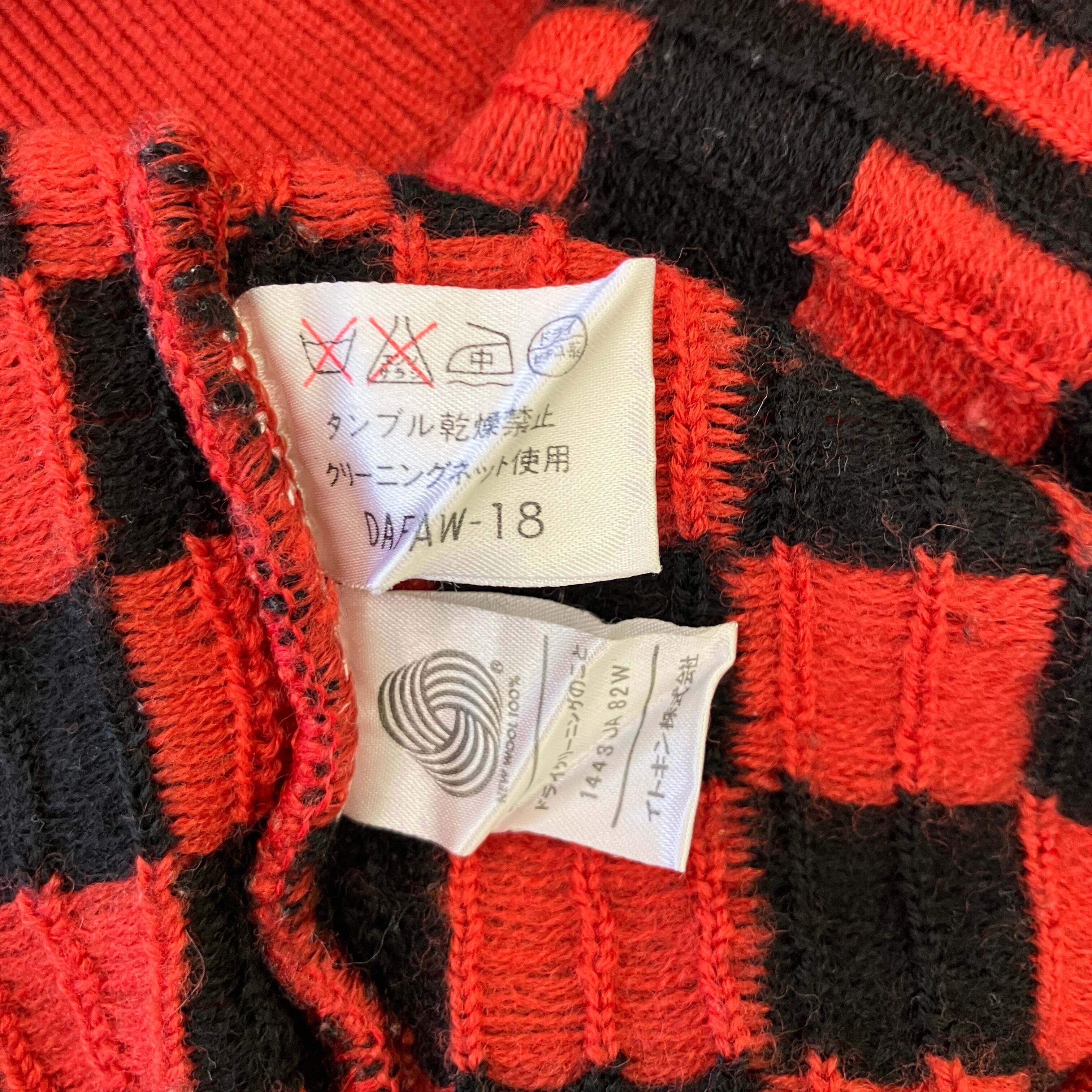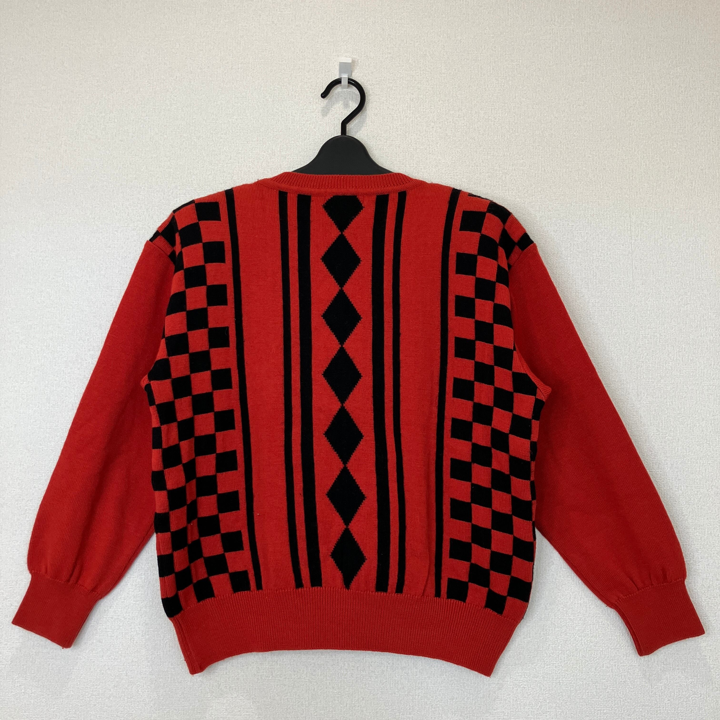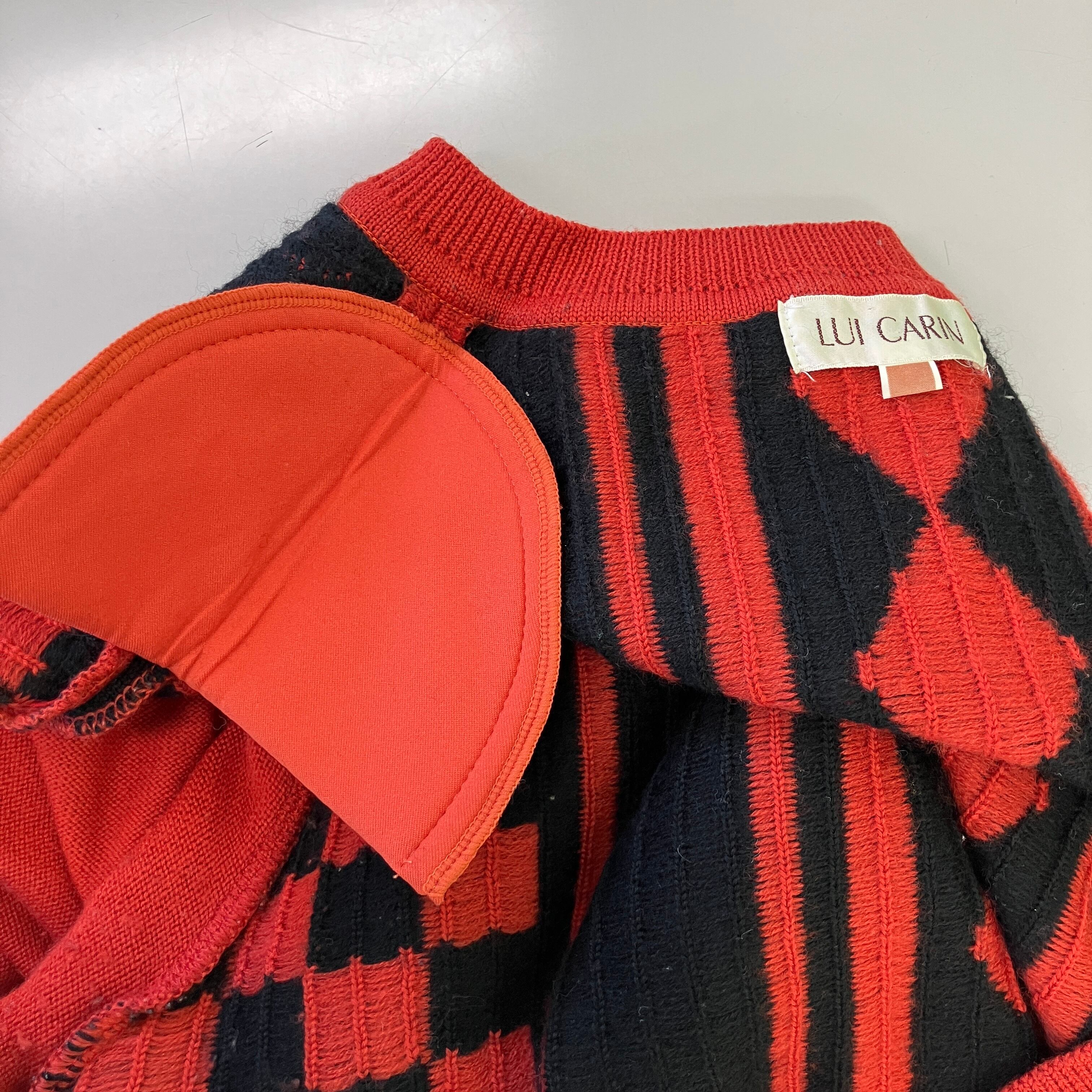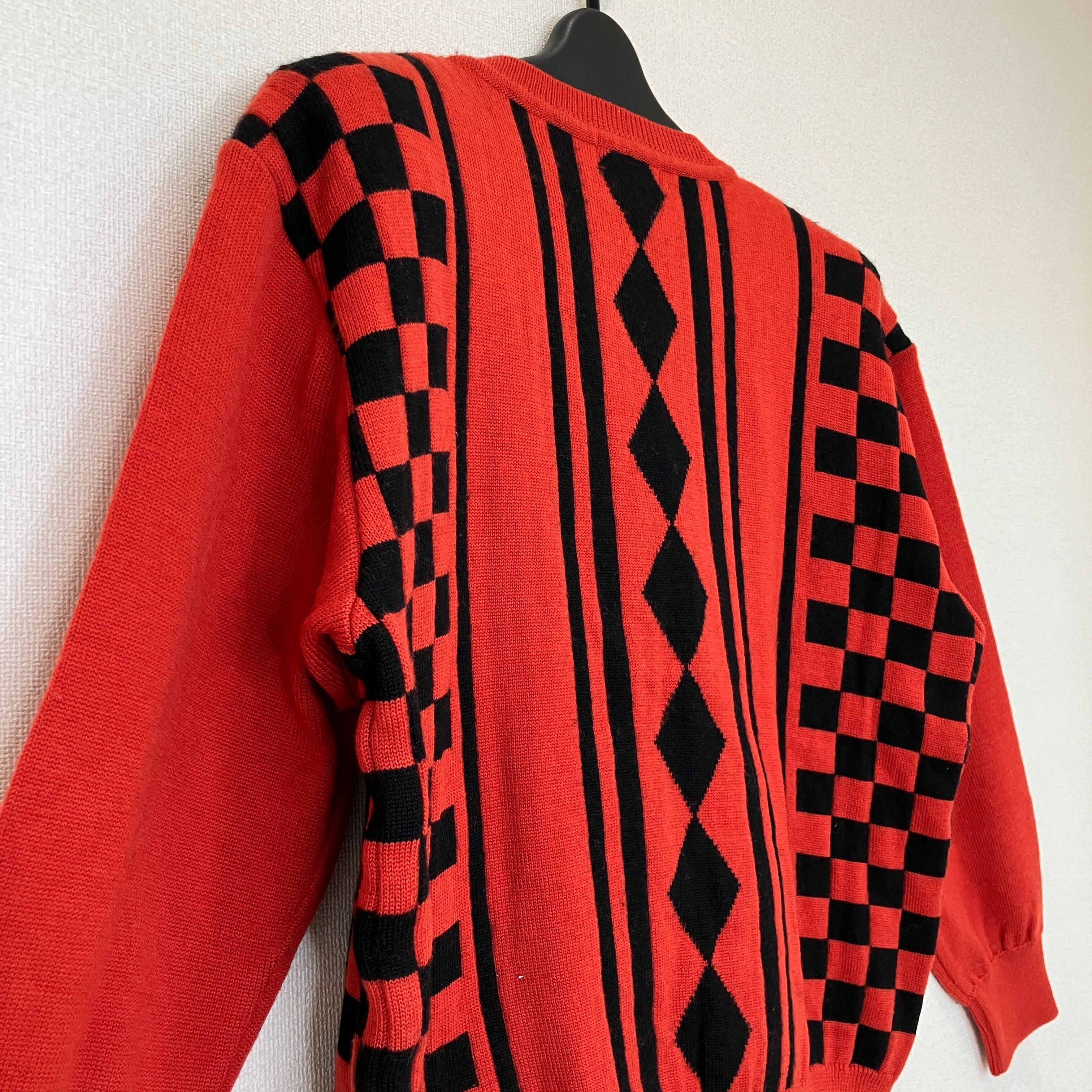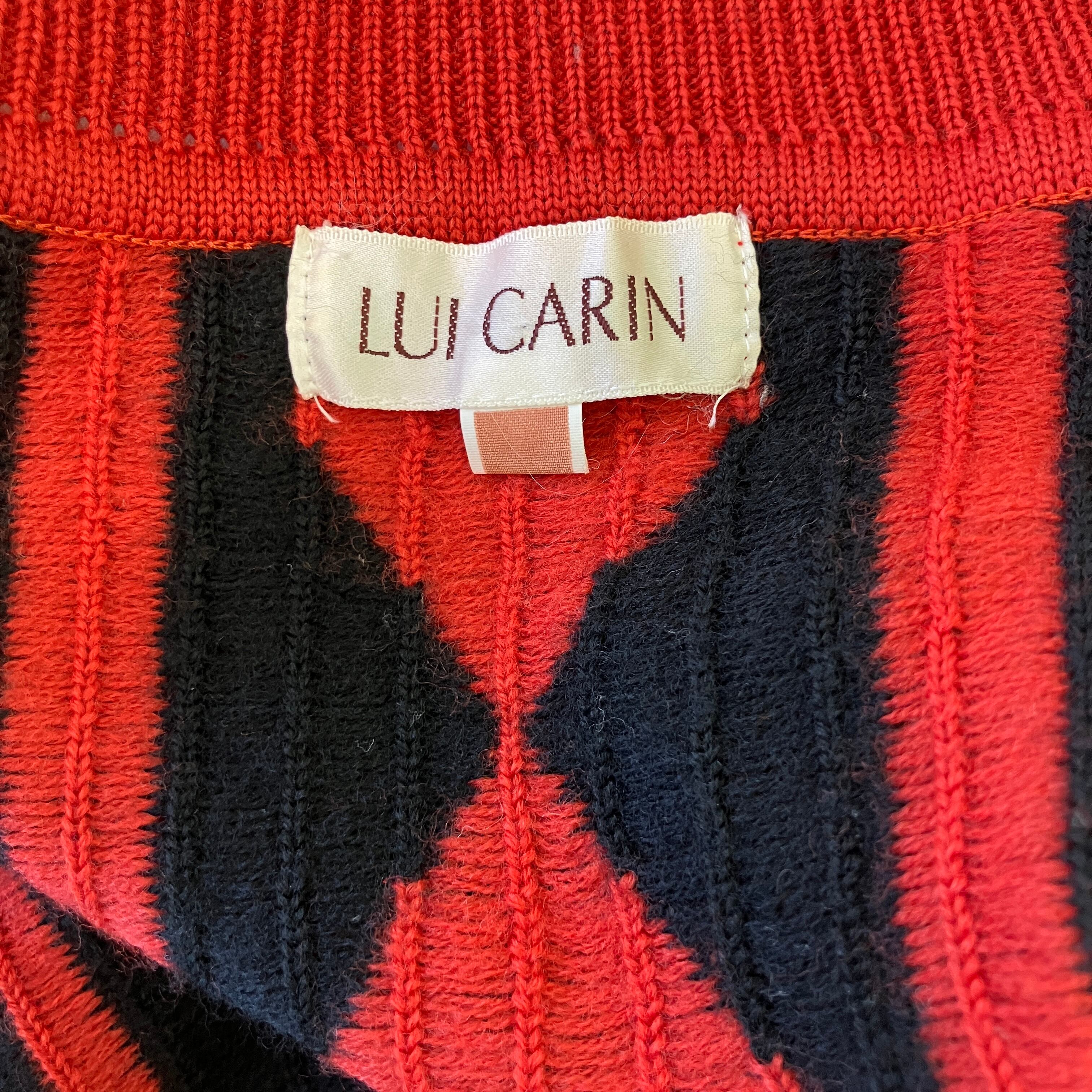 LUI CARIN(ルイ・カラン)幾何学柄ニット セーター ウール100% レッド ブラック レトロ