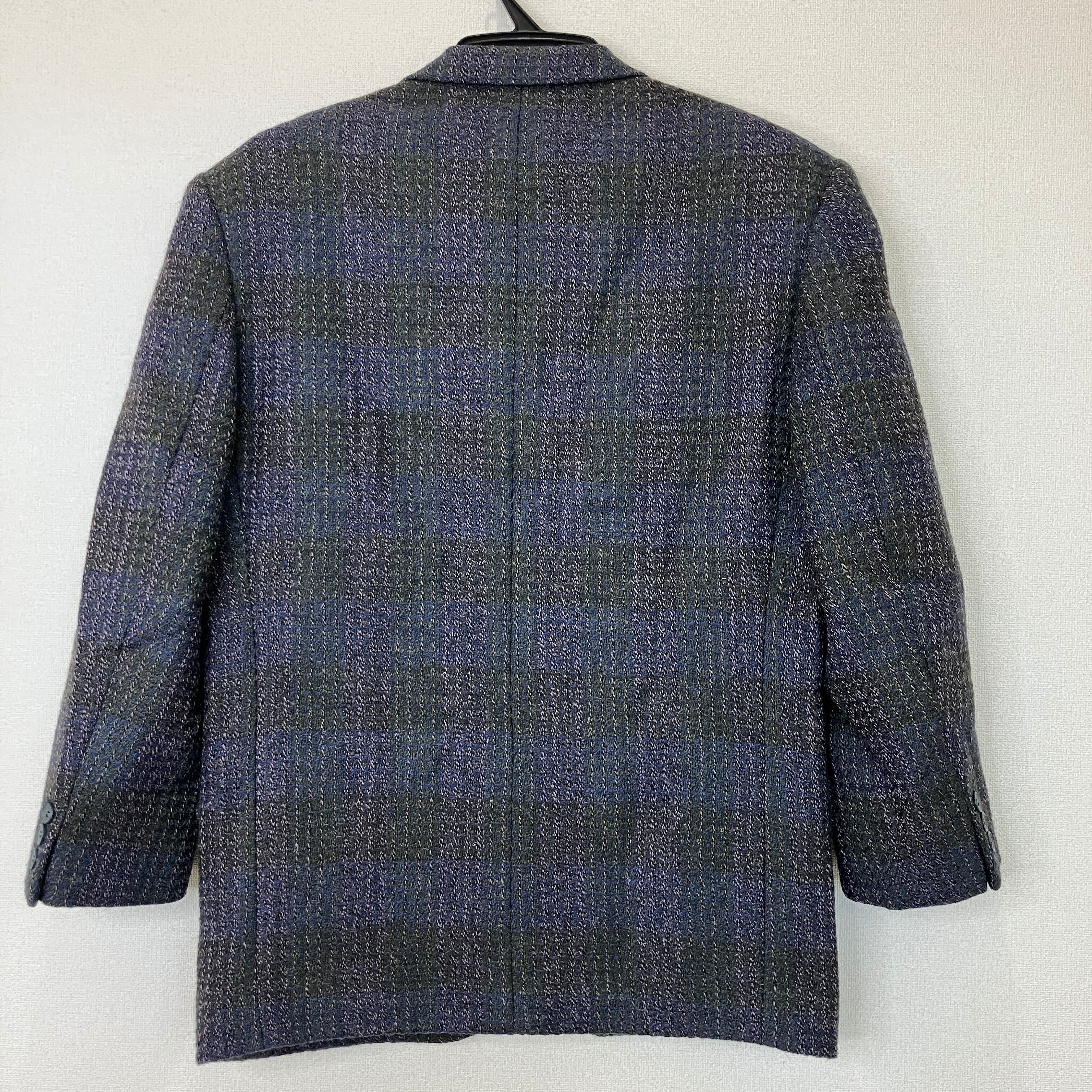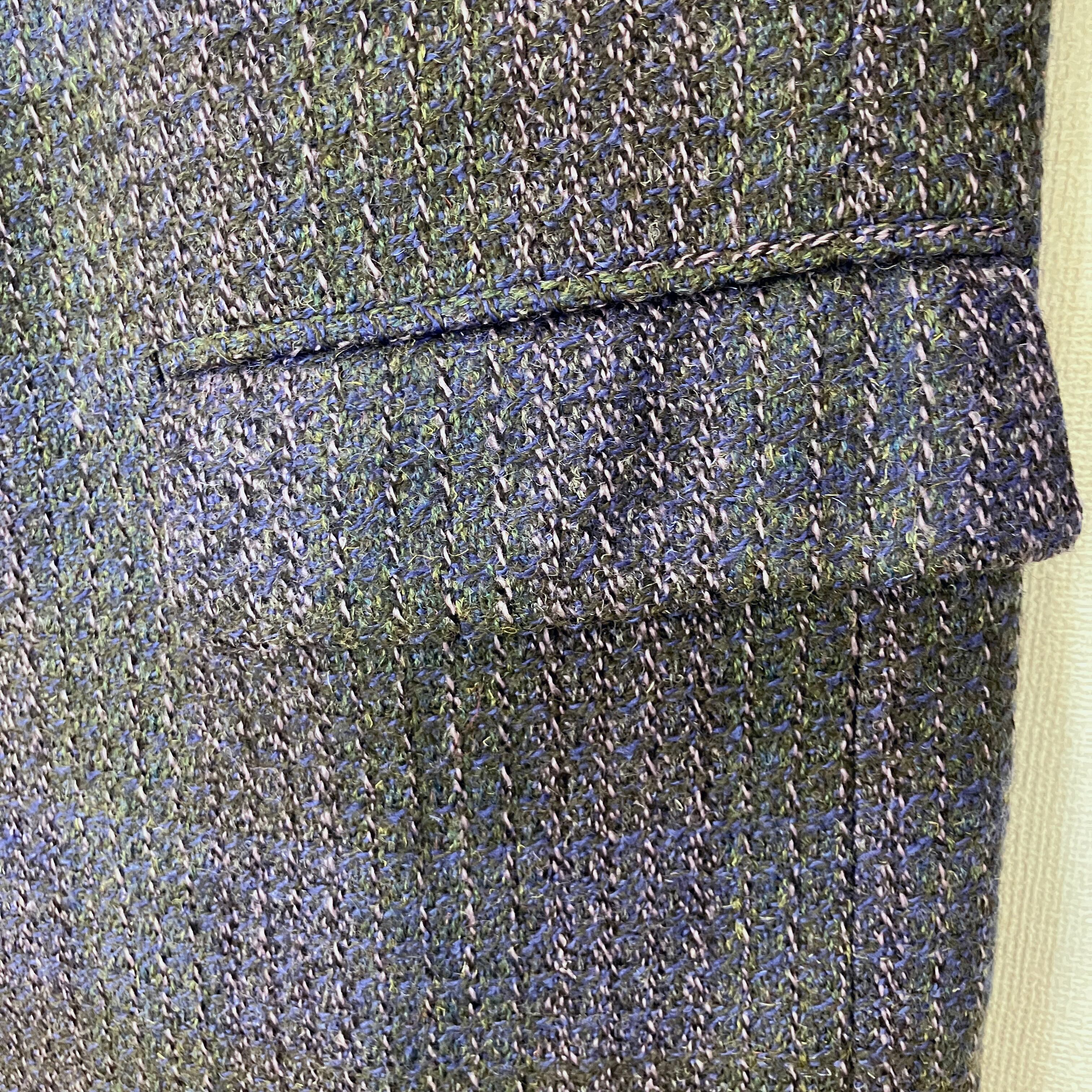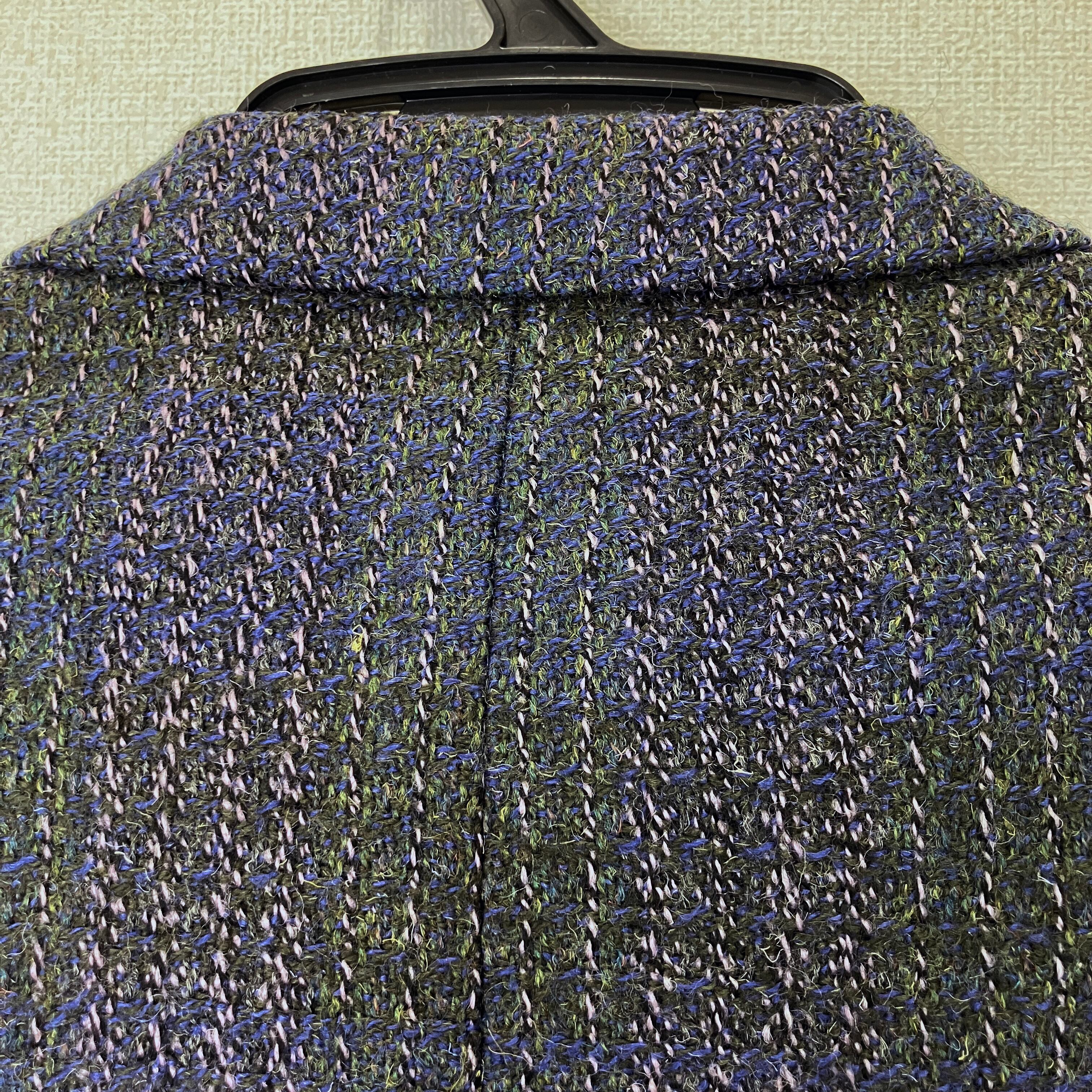落ち着いたパープルやグリーン、ネイビーが混ざり合った奥行きのある配色が特徴的な、CHRISTIAN AUJARD HOMMEのテーラードジャケットです。