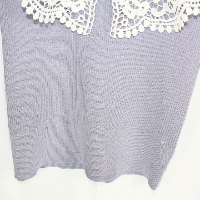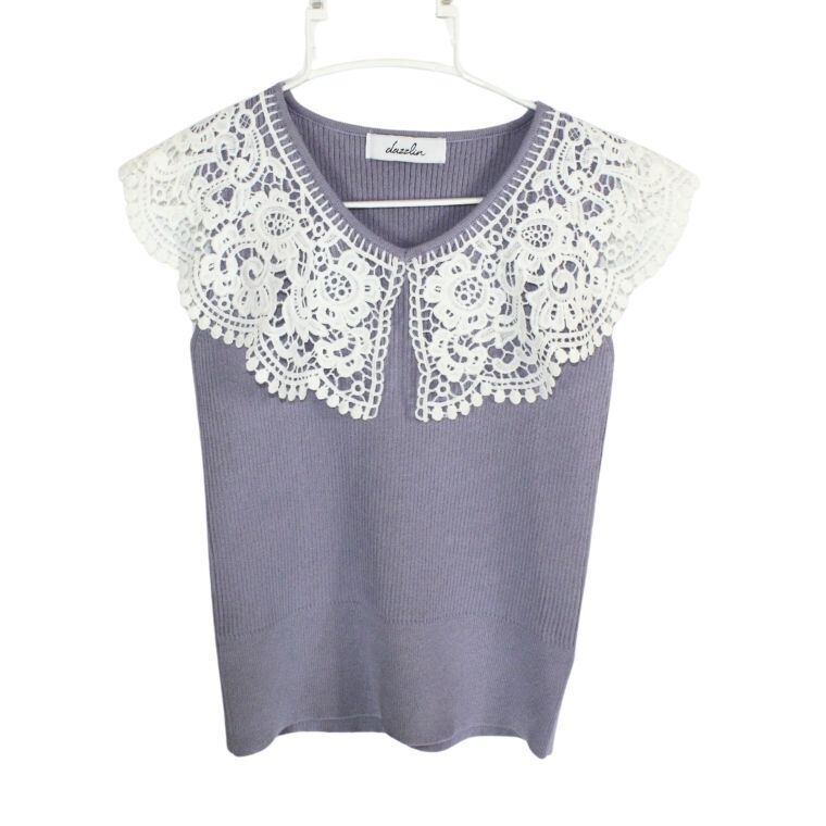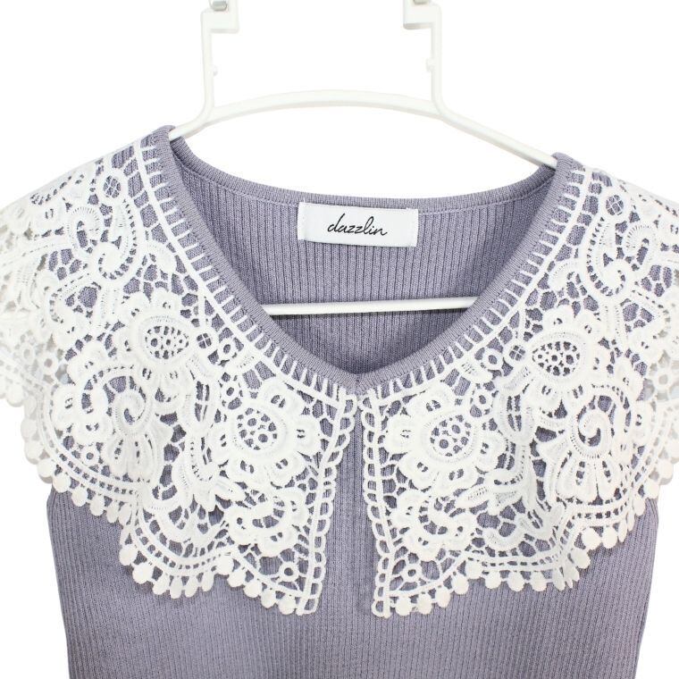 dazzlin(ダズリン)レース襟 ニットトップス 半袖 グレー