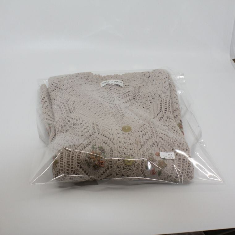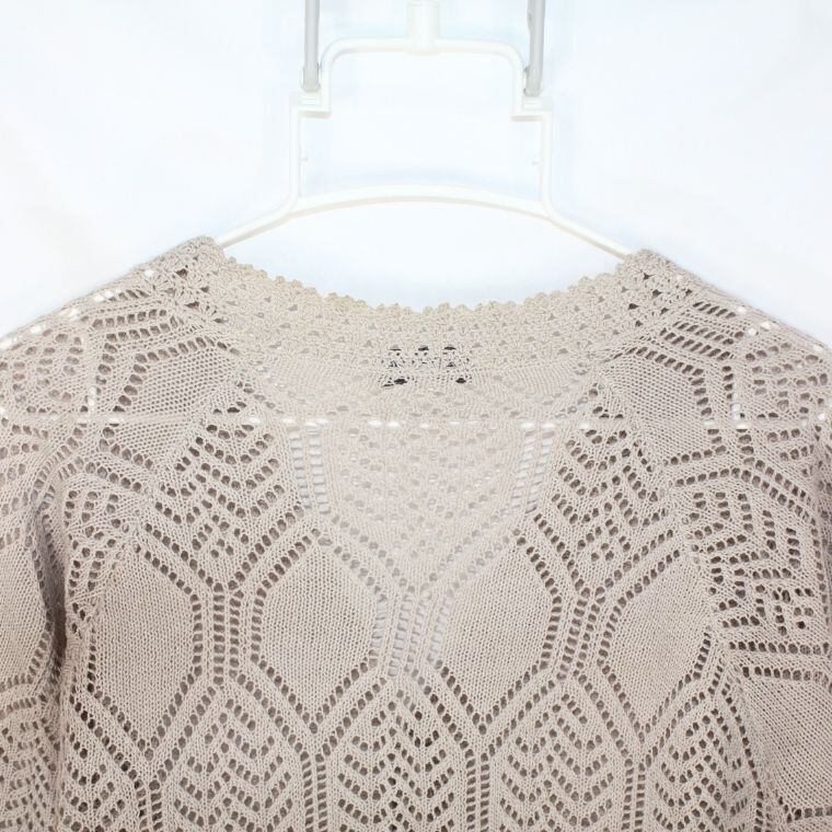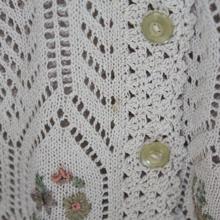 透かし編み カーディガン 花柄刺繍 ベージュ M