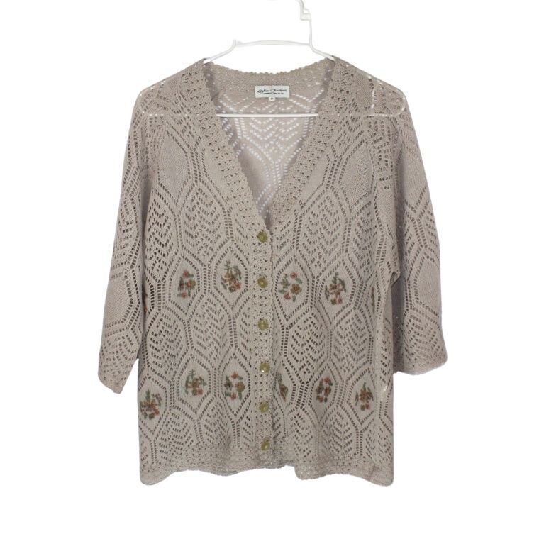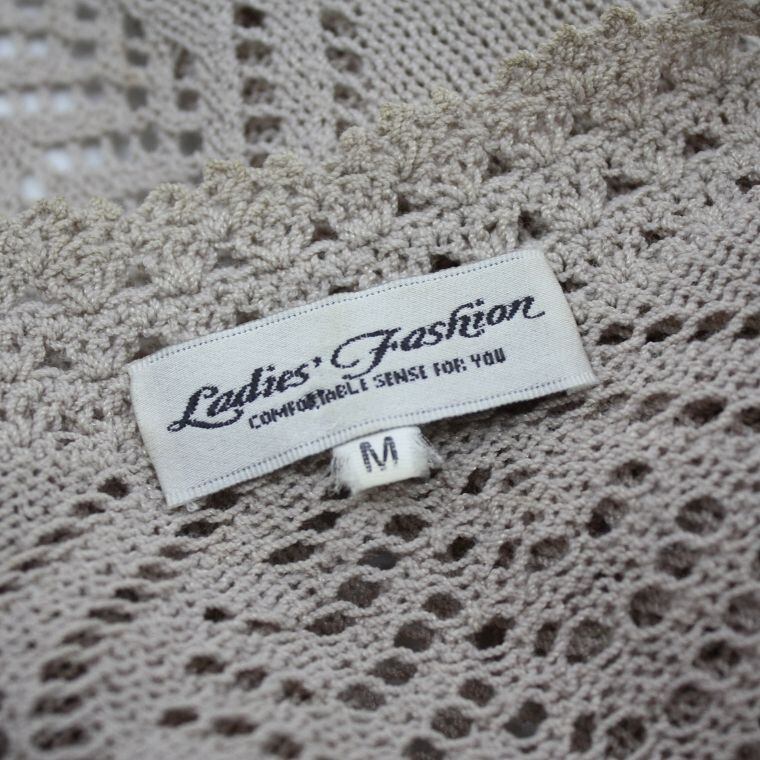 Ladies Fashion 透かし編み カーディガン 花柄 刺繍 ベージュ M レディース