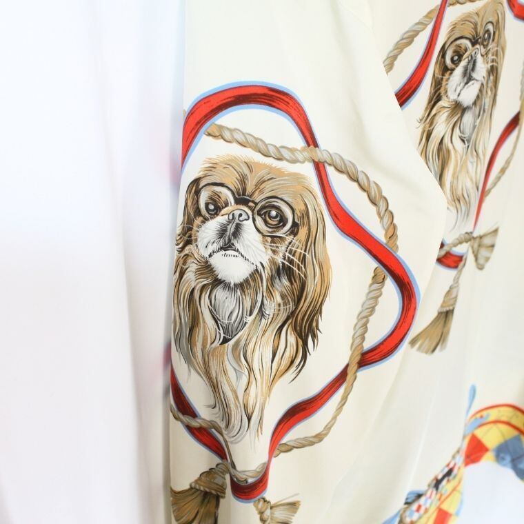 犬モチーフとカラフルなデザインが特徴的な一着。