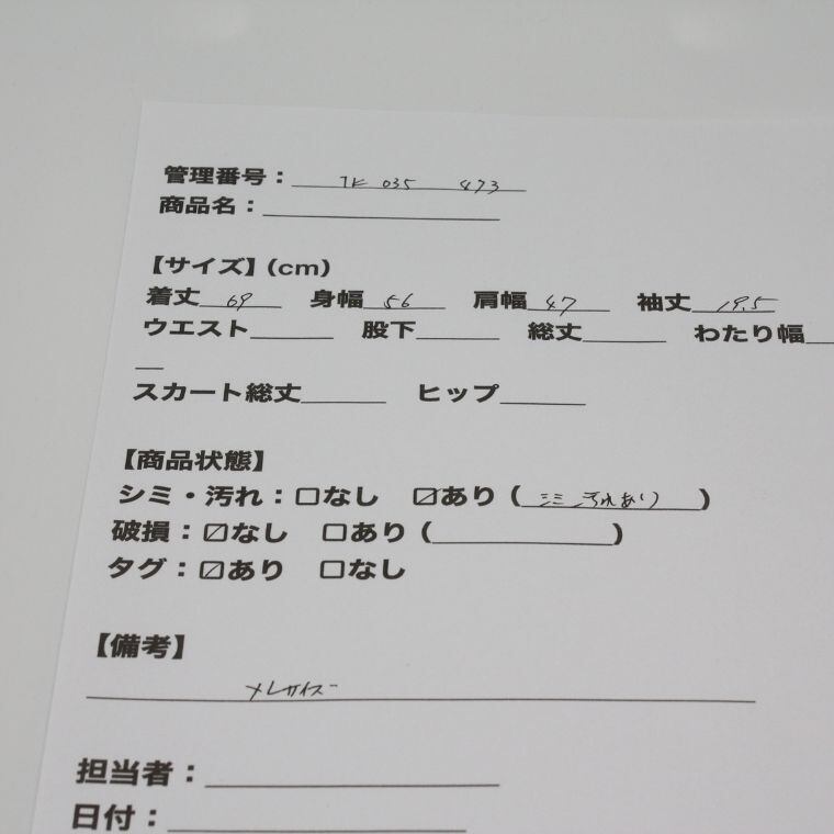 管理番号:TK-035473 #てまいらずアパレル商品一覧