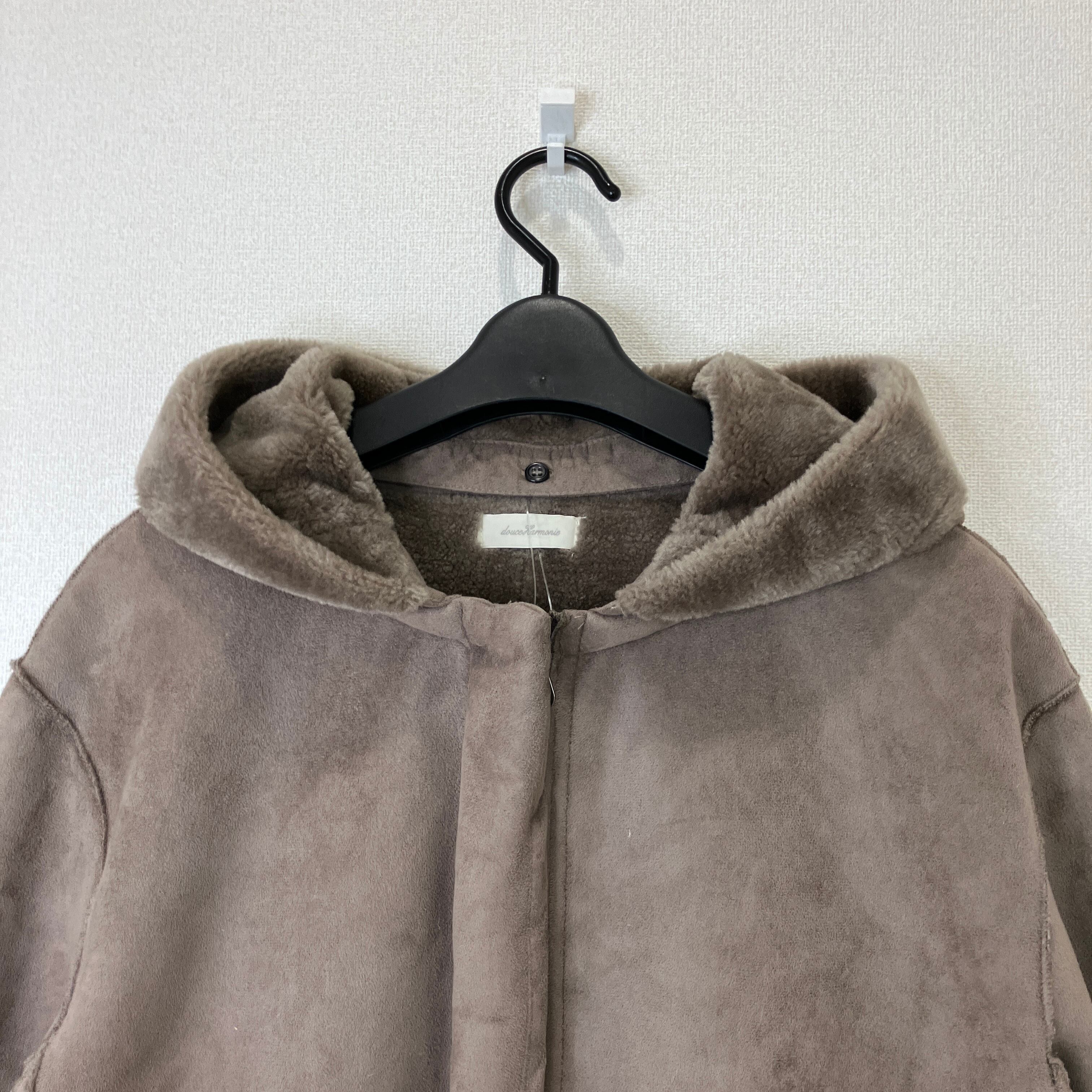 douce Harmonie(ドゥスハルモニ)フェイクムートン フーデッドコート ブラウン サイズ02