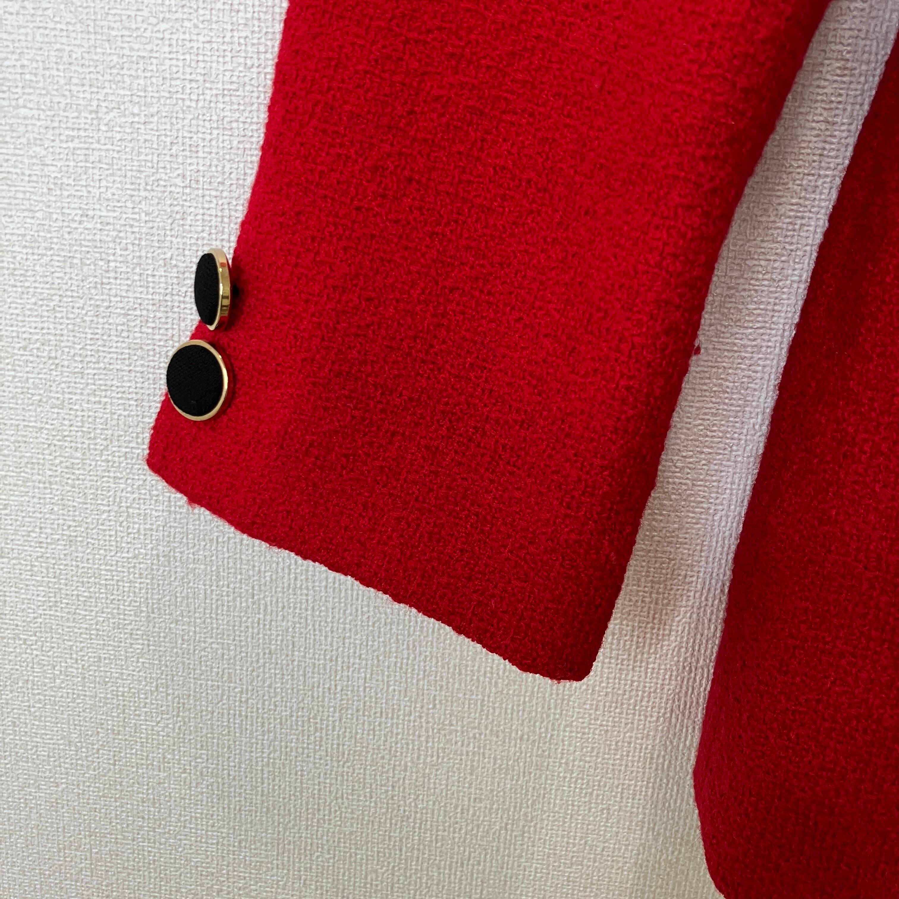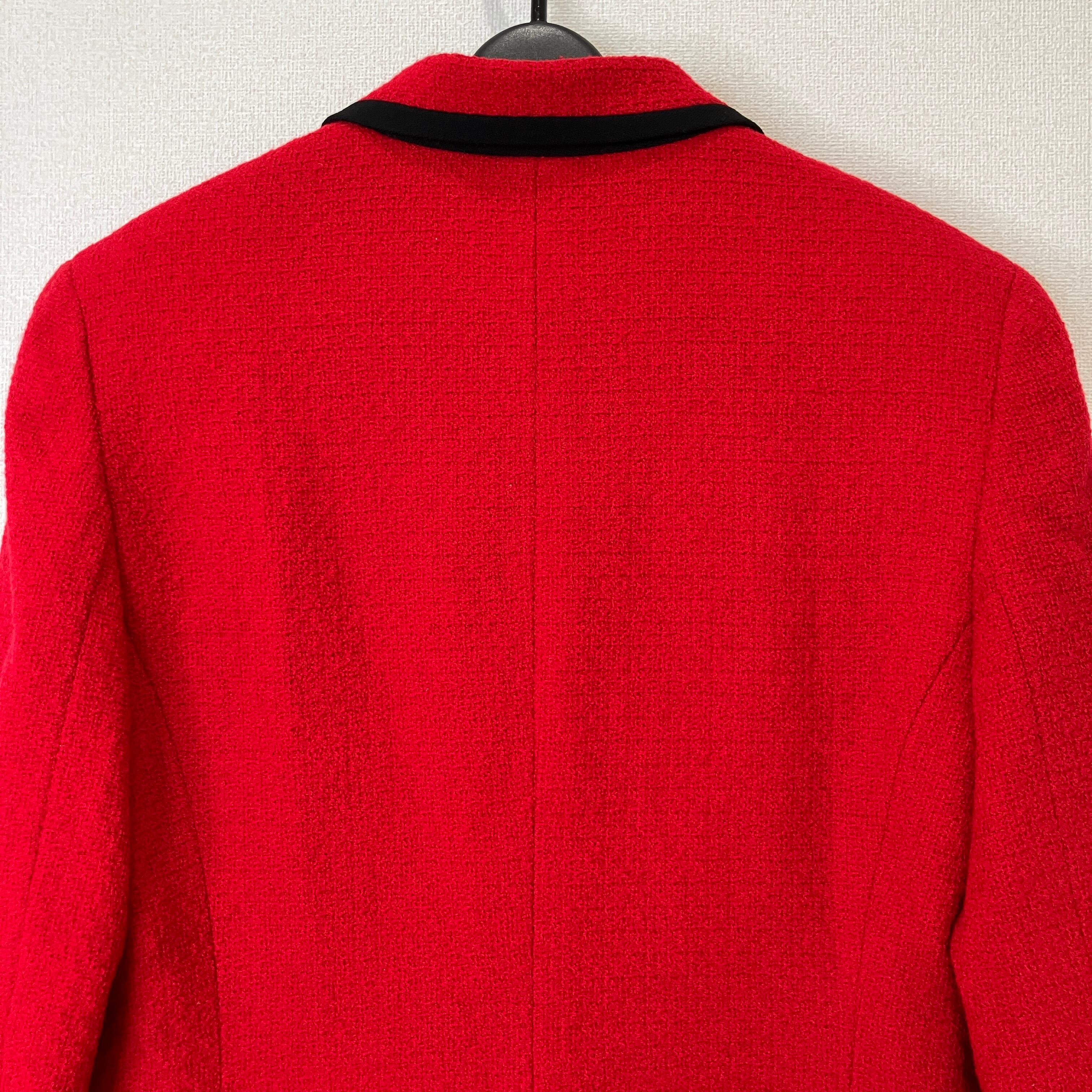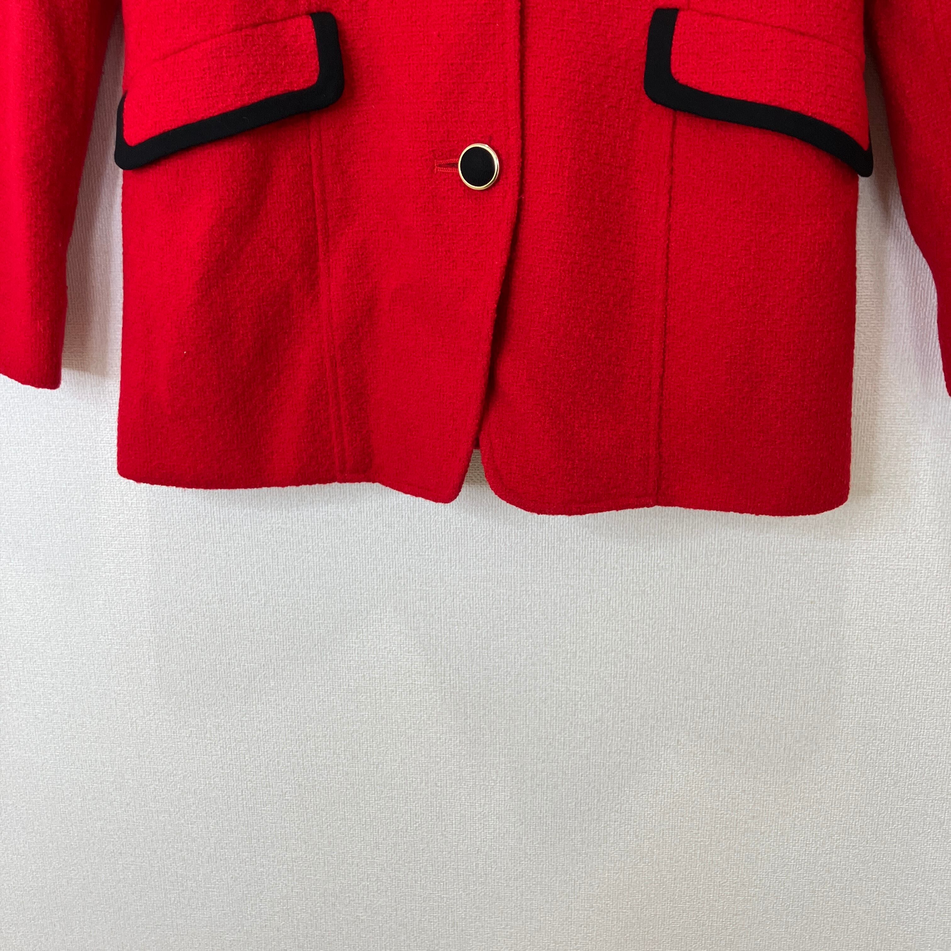 KORET コレット ウール混 テーラードジャケット レッド ブラックパイピング 金ボタン