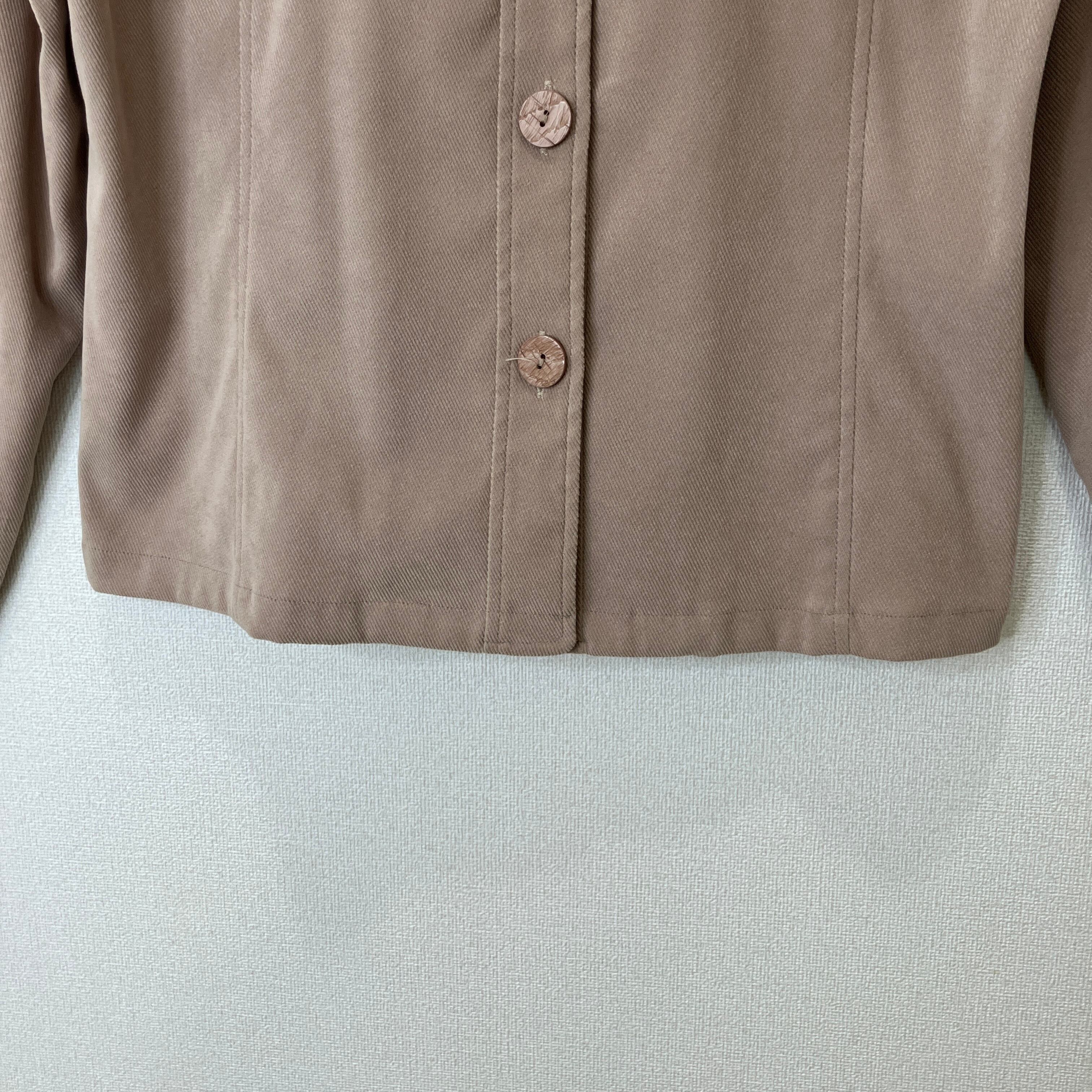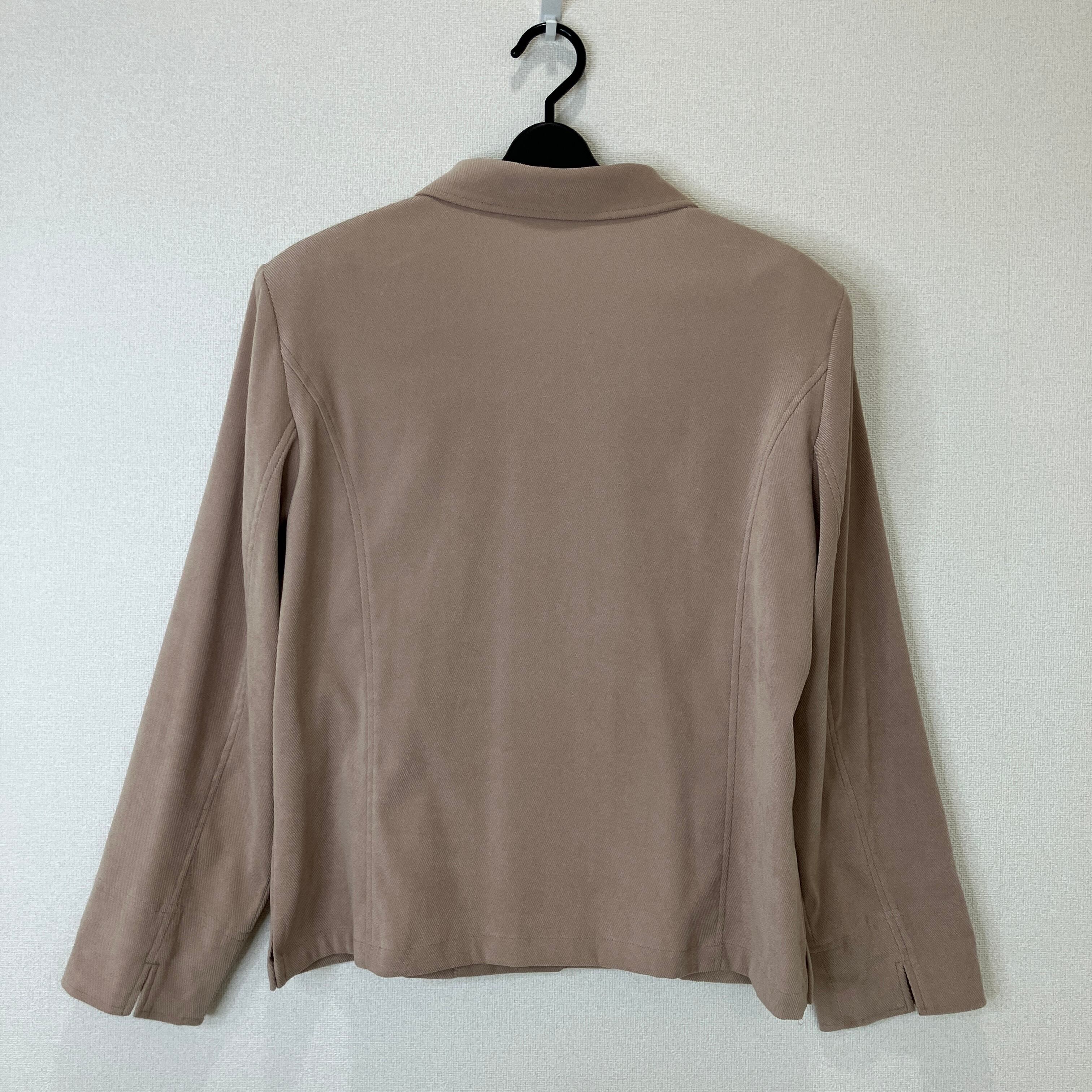 落ち着いたベージュで使いやすいシャツジャケット。