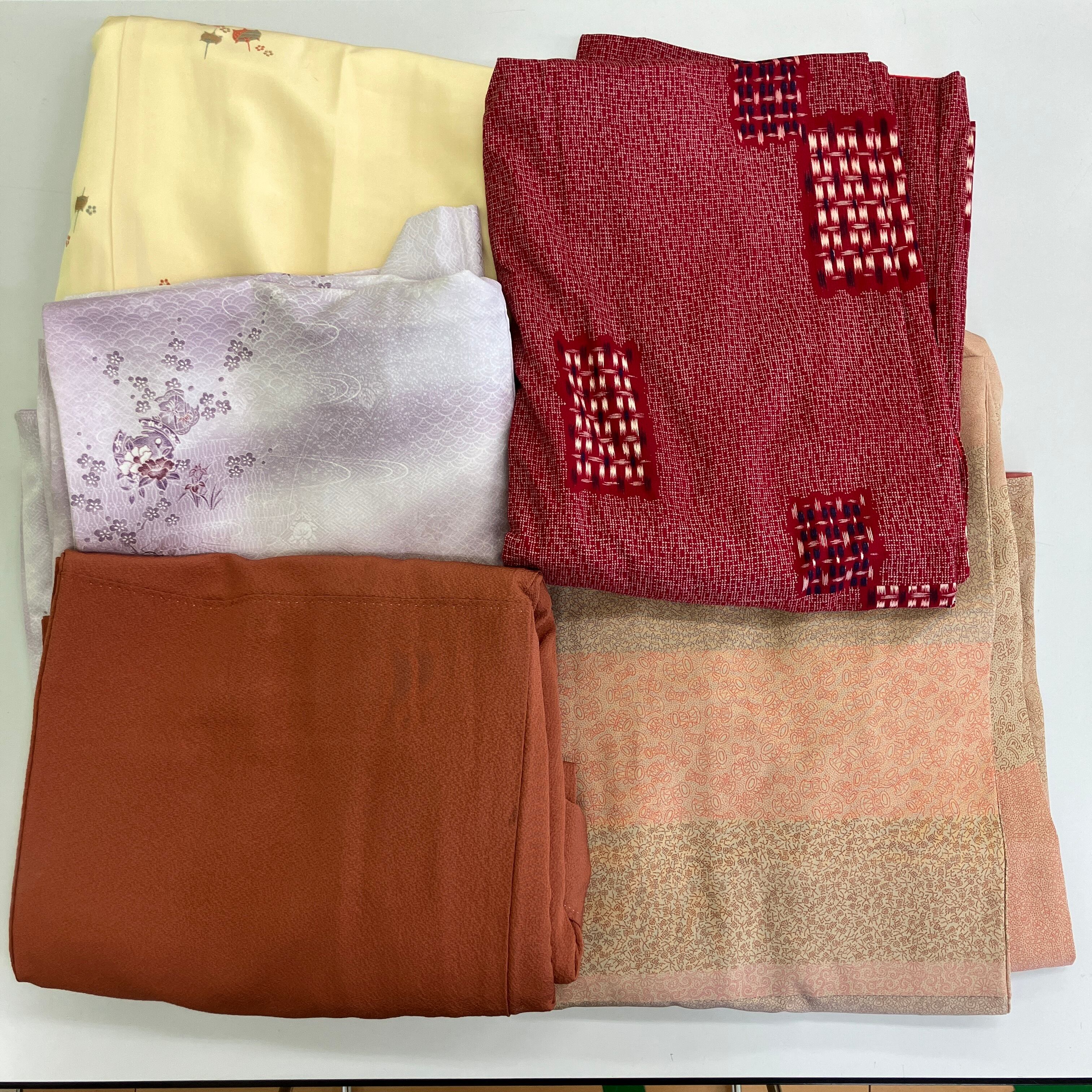 古着 着物 5点セット まとめ売り 和柄 小紋 絣 リメイク素材 ハンドメイド用