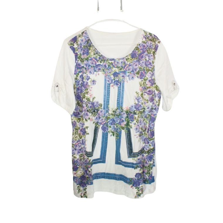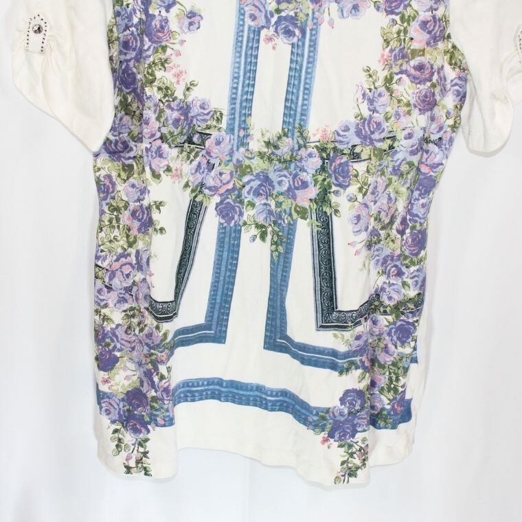 花柄 半袖カットソー M〜L レディース フラワー 総柄 綿100 夏トップス